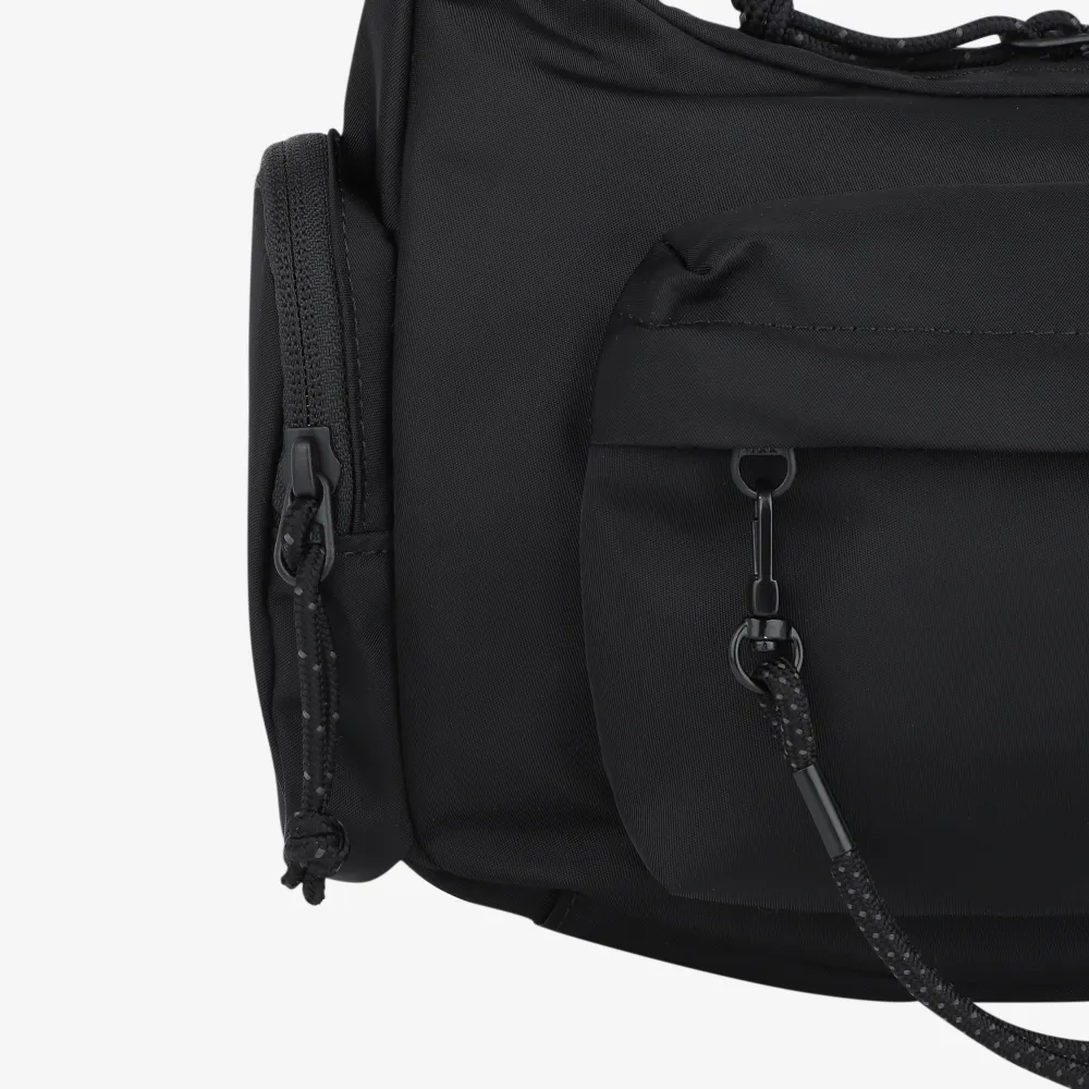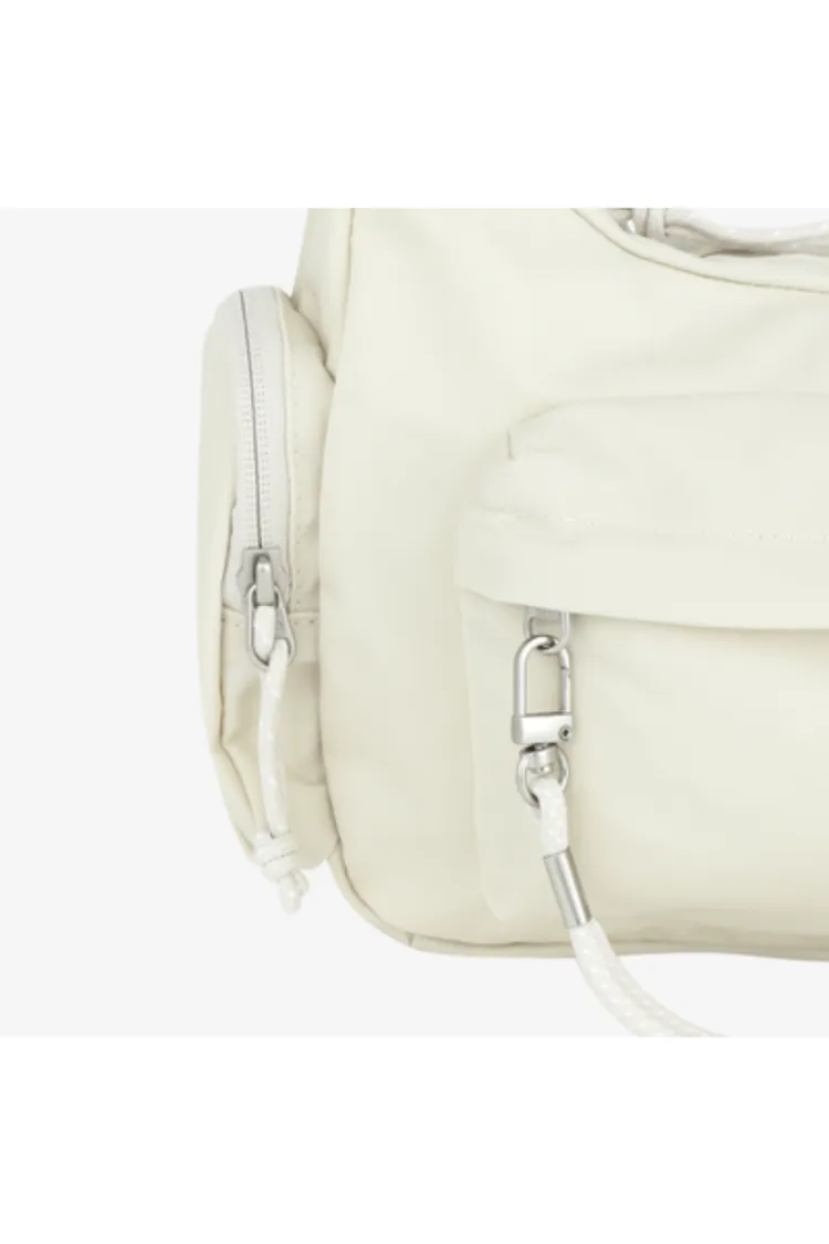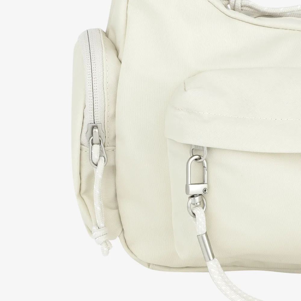 尼龍斜紋布製成,觸感柔軟,前口袋的金屬繩裝飾拉鍊頭更時尚。