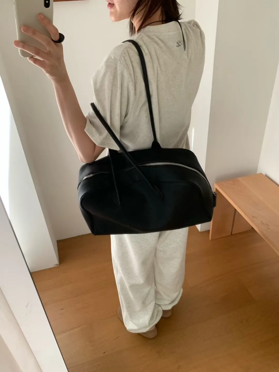羊皮100% 觸感非常好 細緻荔枝紋理 拉鍊閉合 空間大 防刮痕 可單肩背
