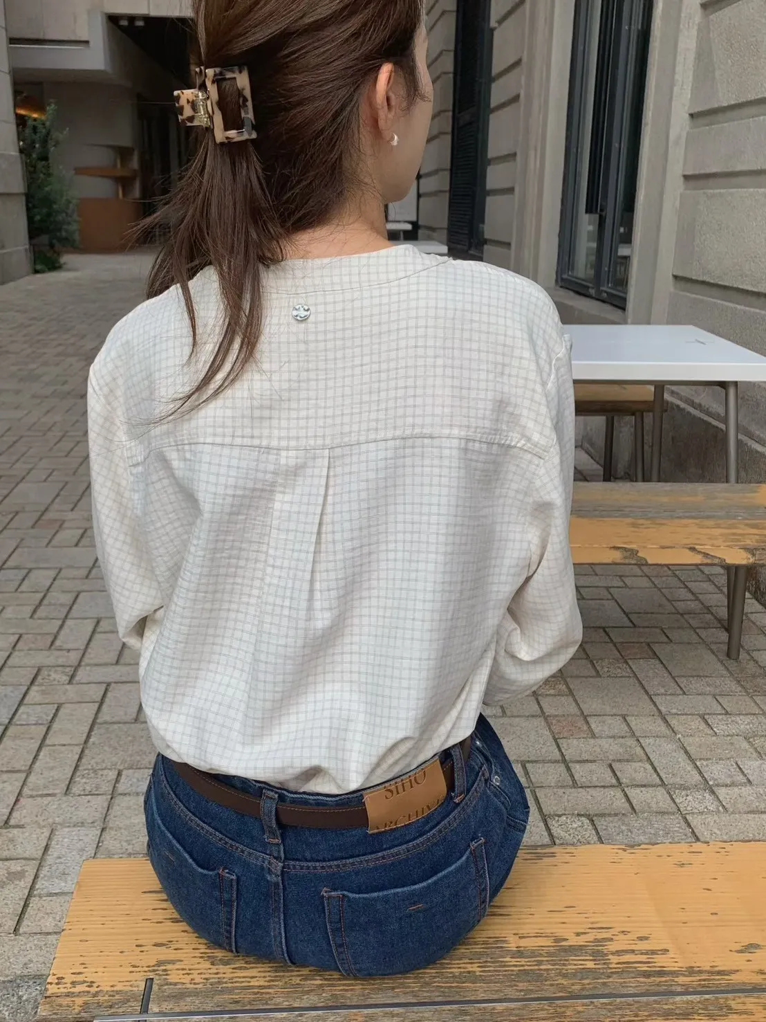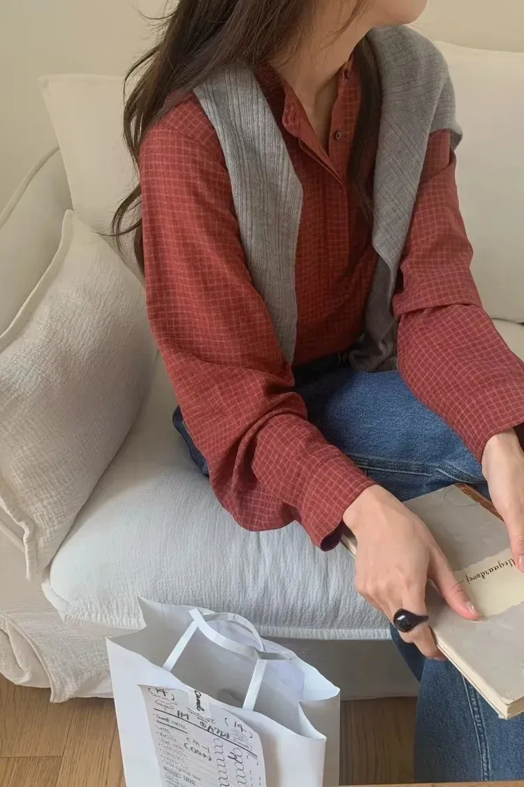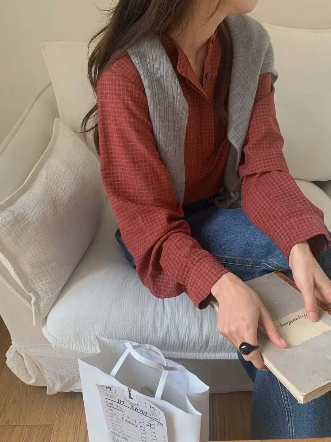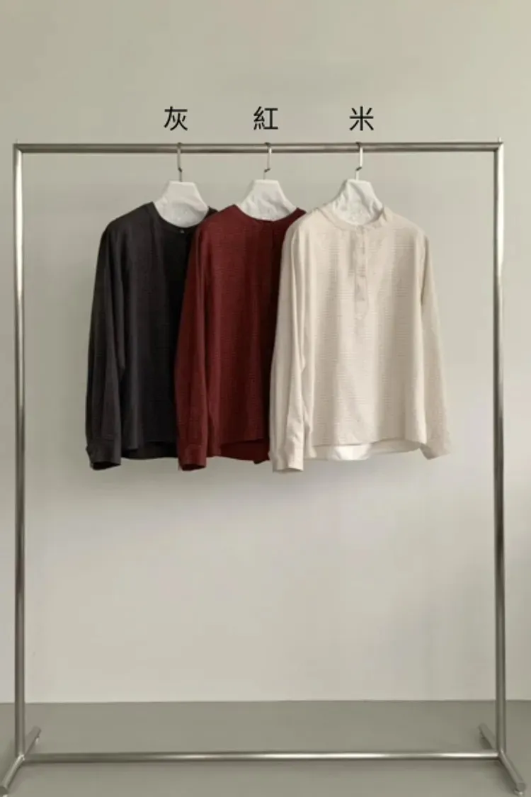 TR054回購款氣質細格開襟長袖上衣(原MK394) 米 紅 灰 官網價$1220 線上價$1190