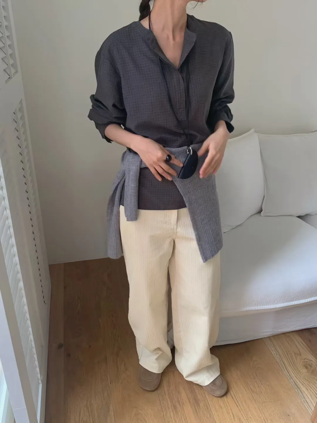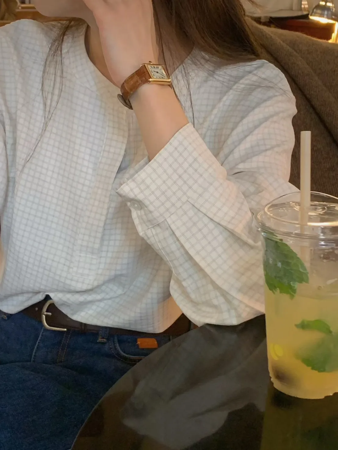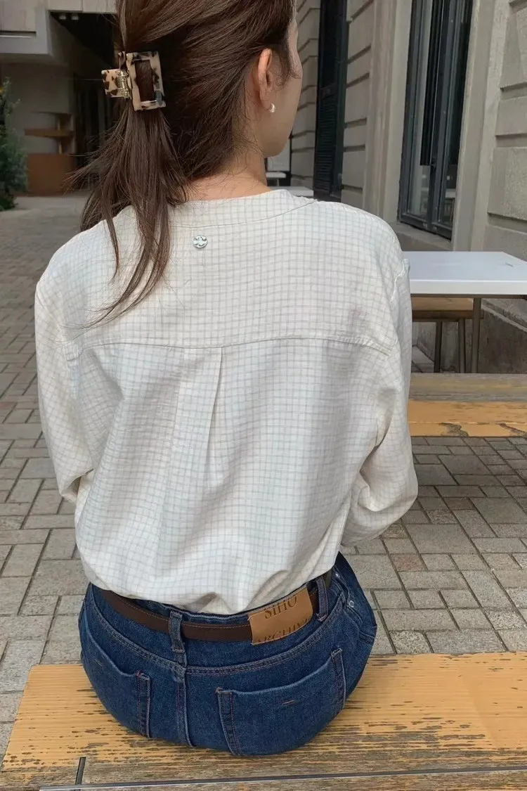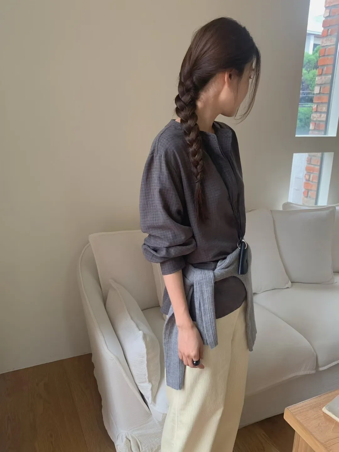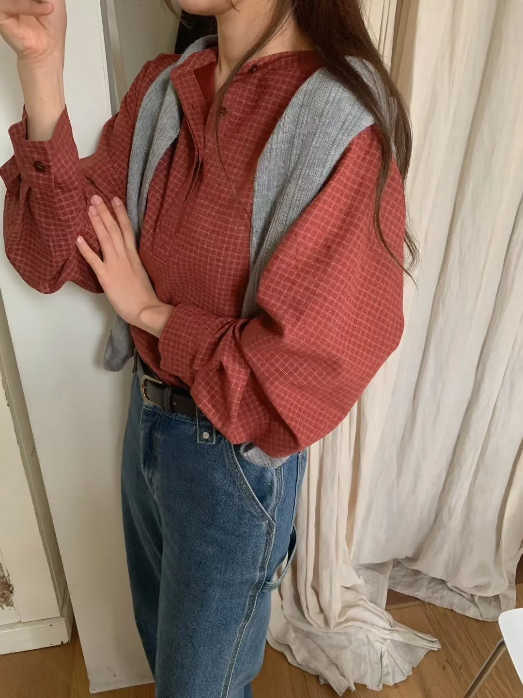 TR054回購款氣質細格開襟長袖上衣(原MK394) 米 紅 灰 官網價$1220 線上價$1190