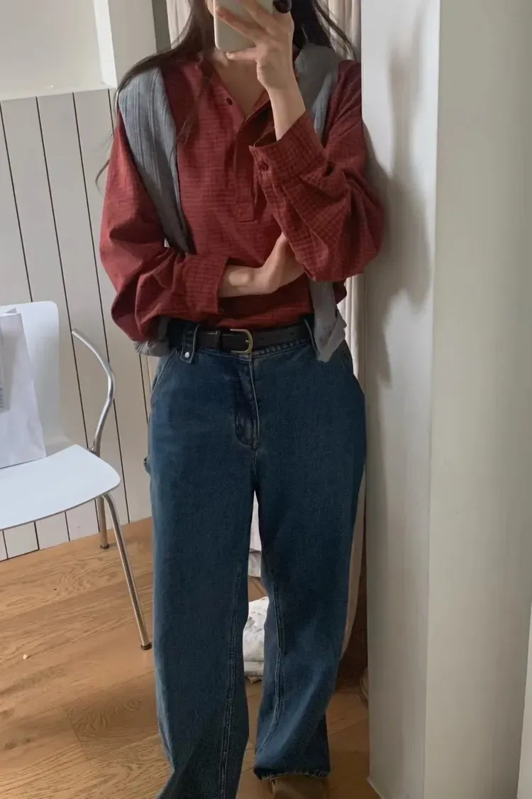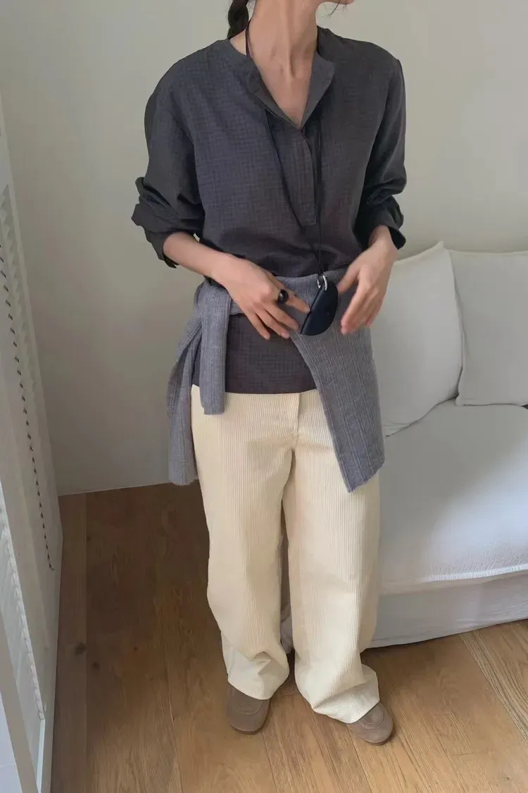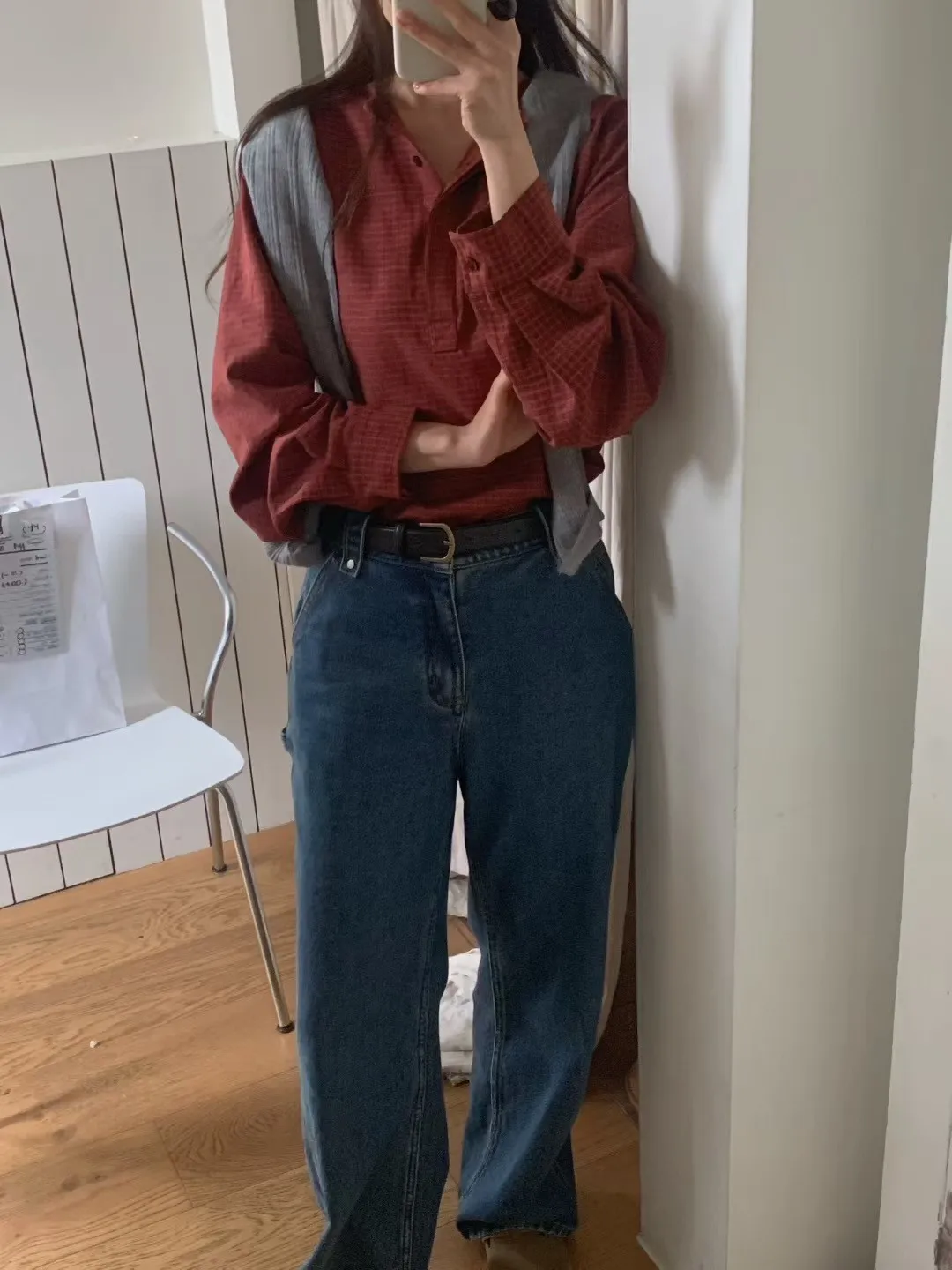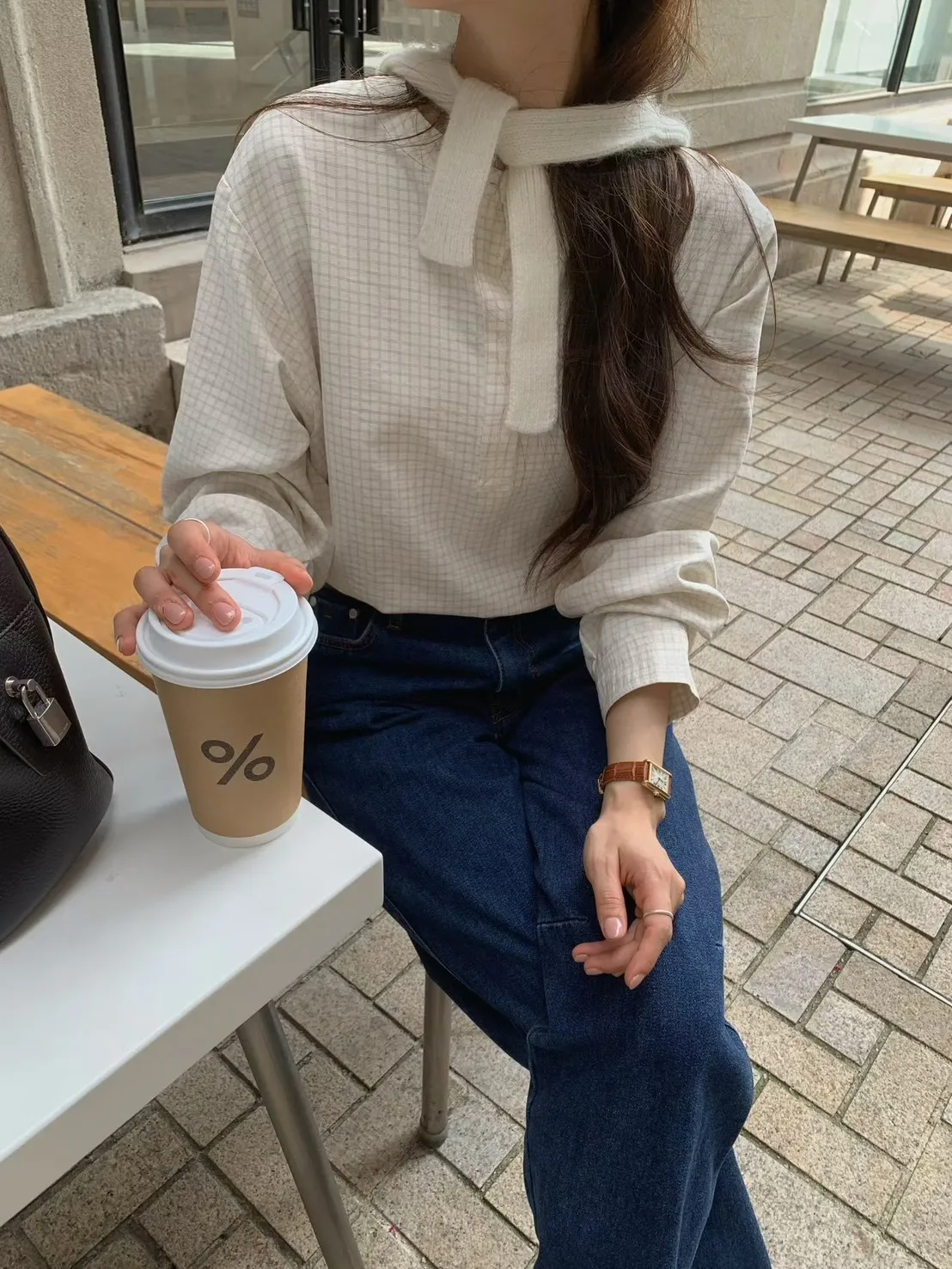 TR054回購款氣質細格開襟長袖上衣(原MK394) 米 紅 灰 官網價$1220 線上價$1190