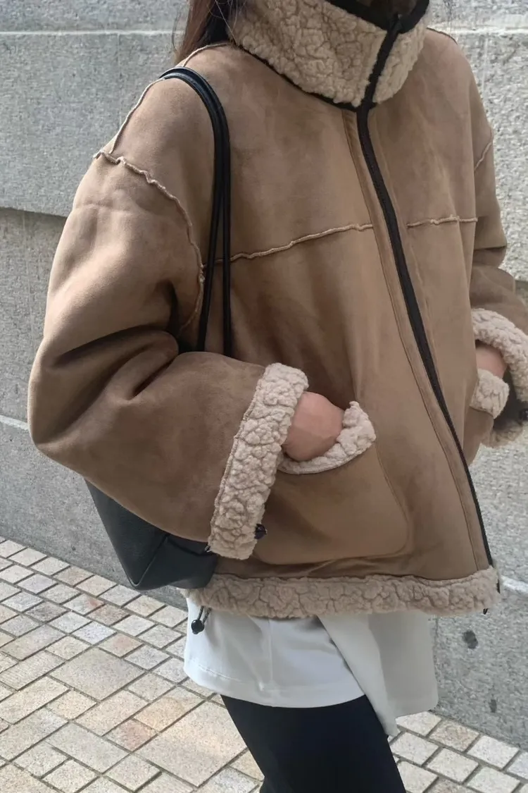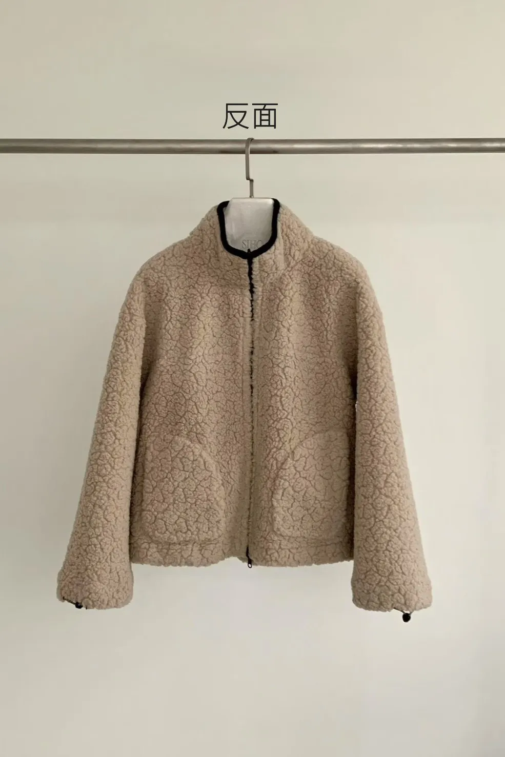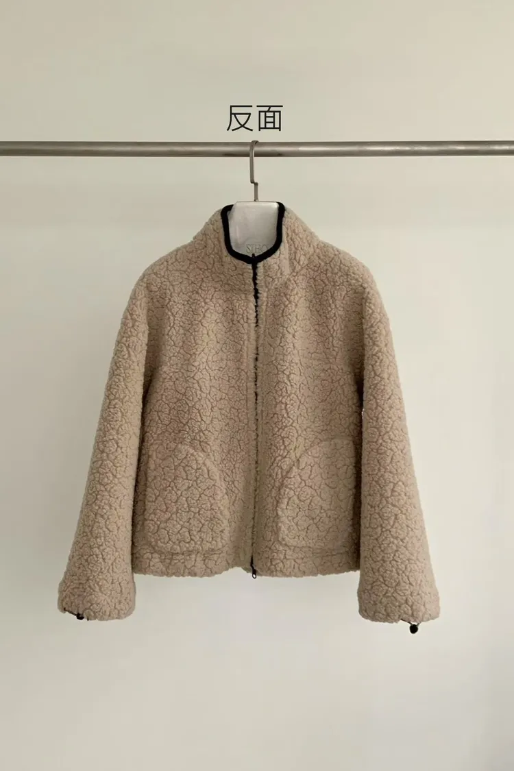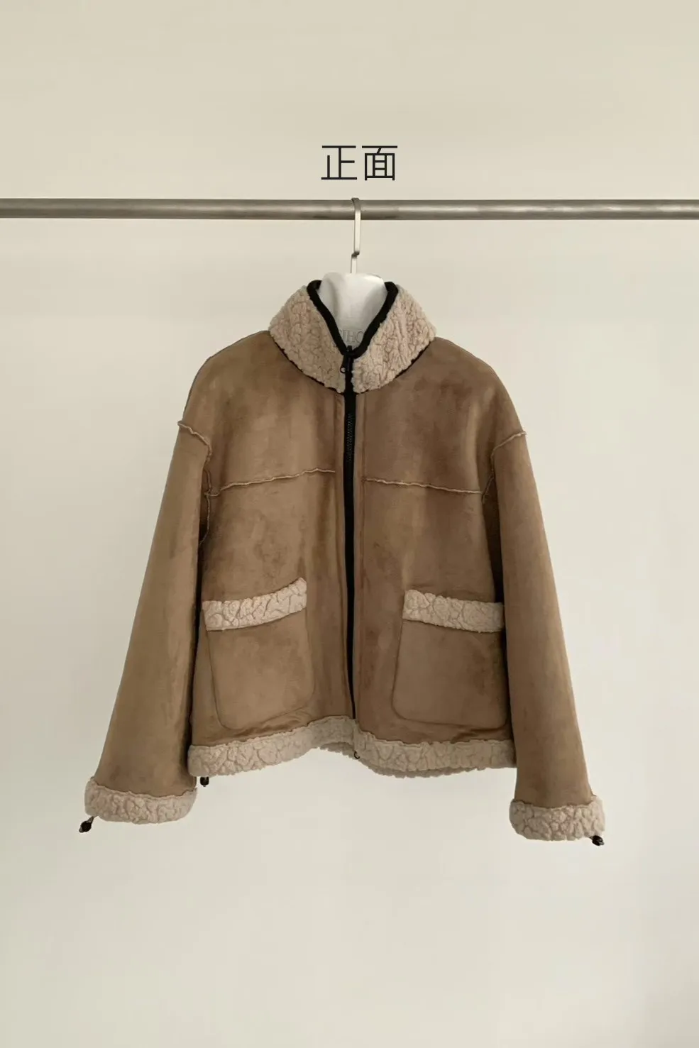 聚酯 細緻麂皮仿羊毛 輕盈不重 拉鍊穿脫 有口袋