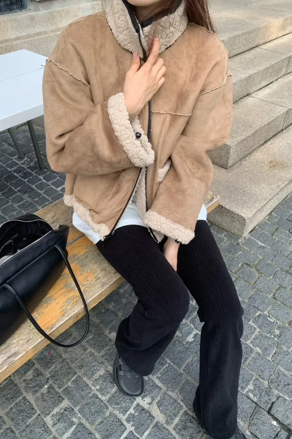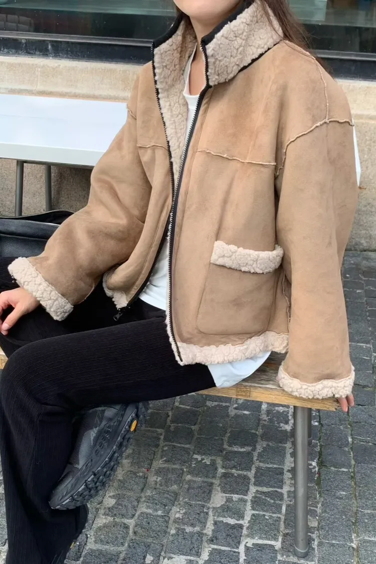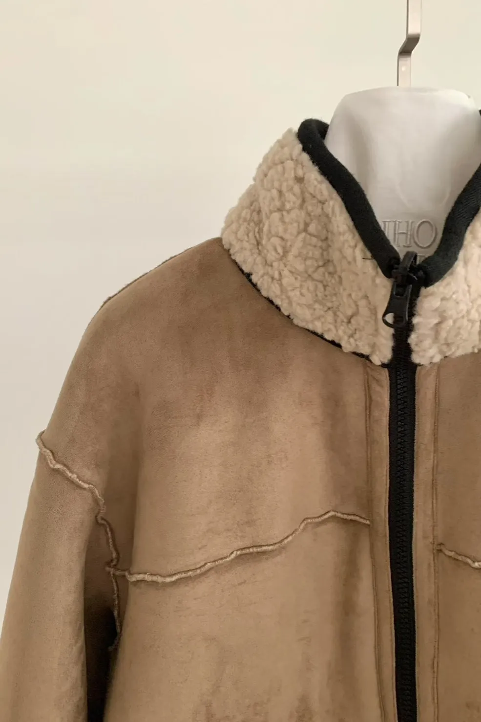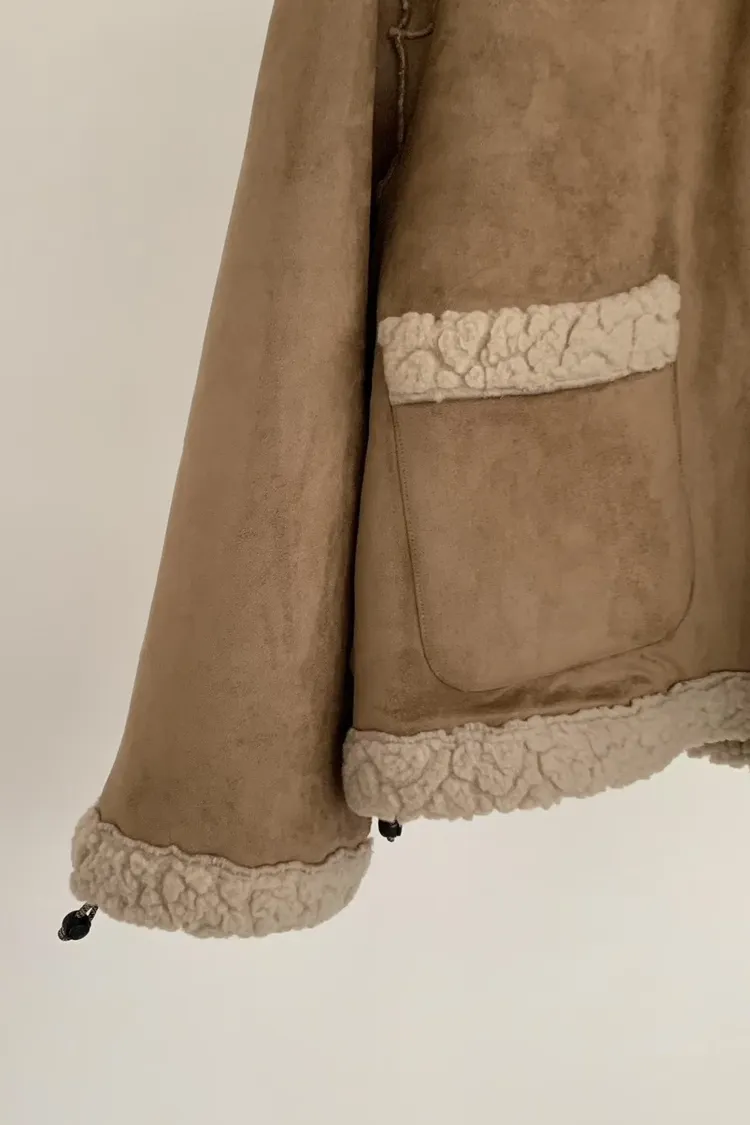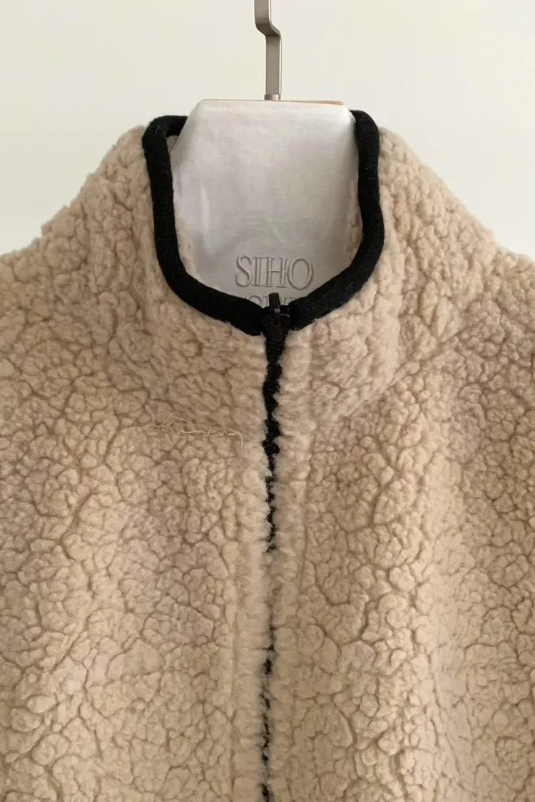 聚酯 細緻麂皮仿羊毛 輕盈不重 拉鍊穿脫 有口袋