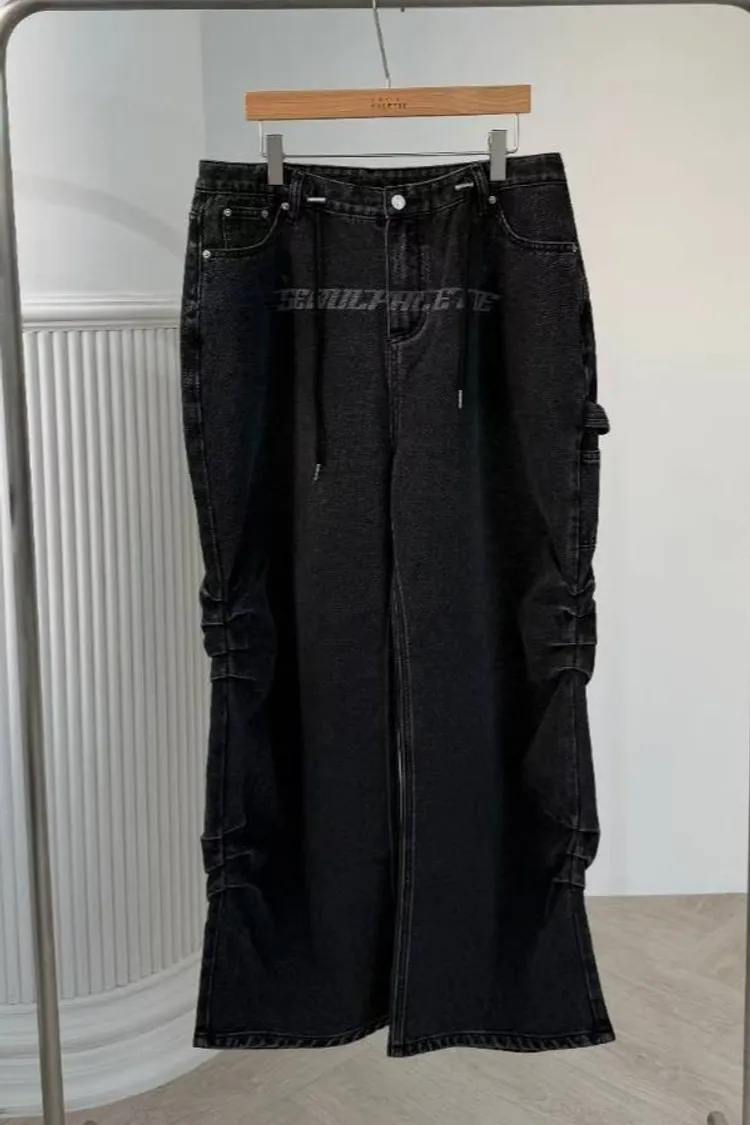 棉 腰抽繩調節 有口袋 釦鍊穿脫 雷射英文字母 側抓皺車線