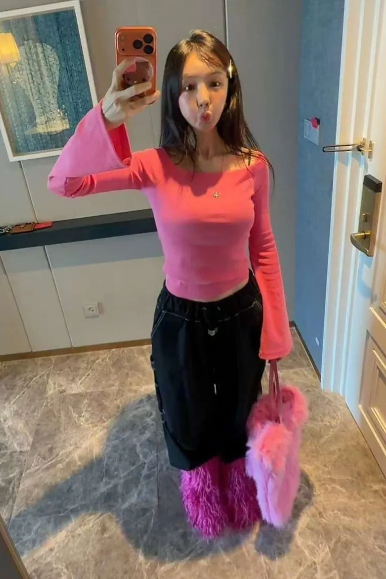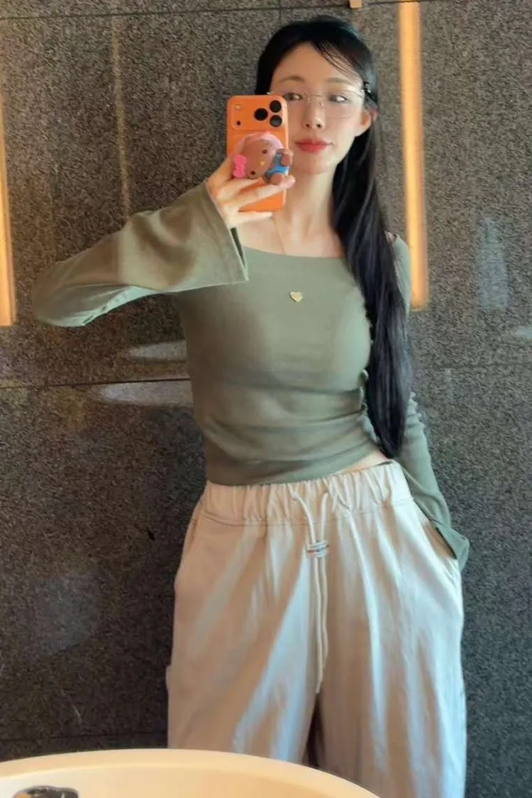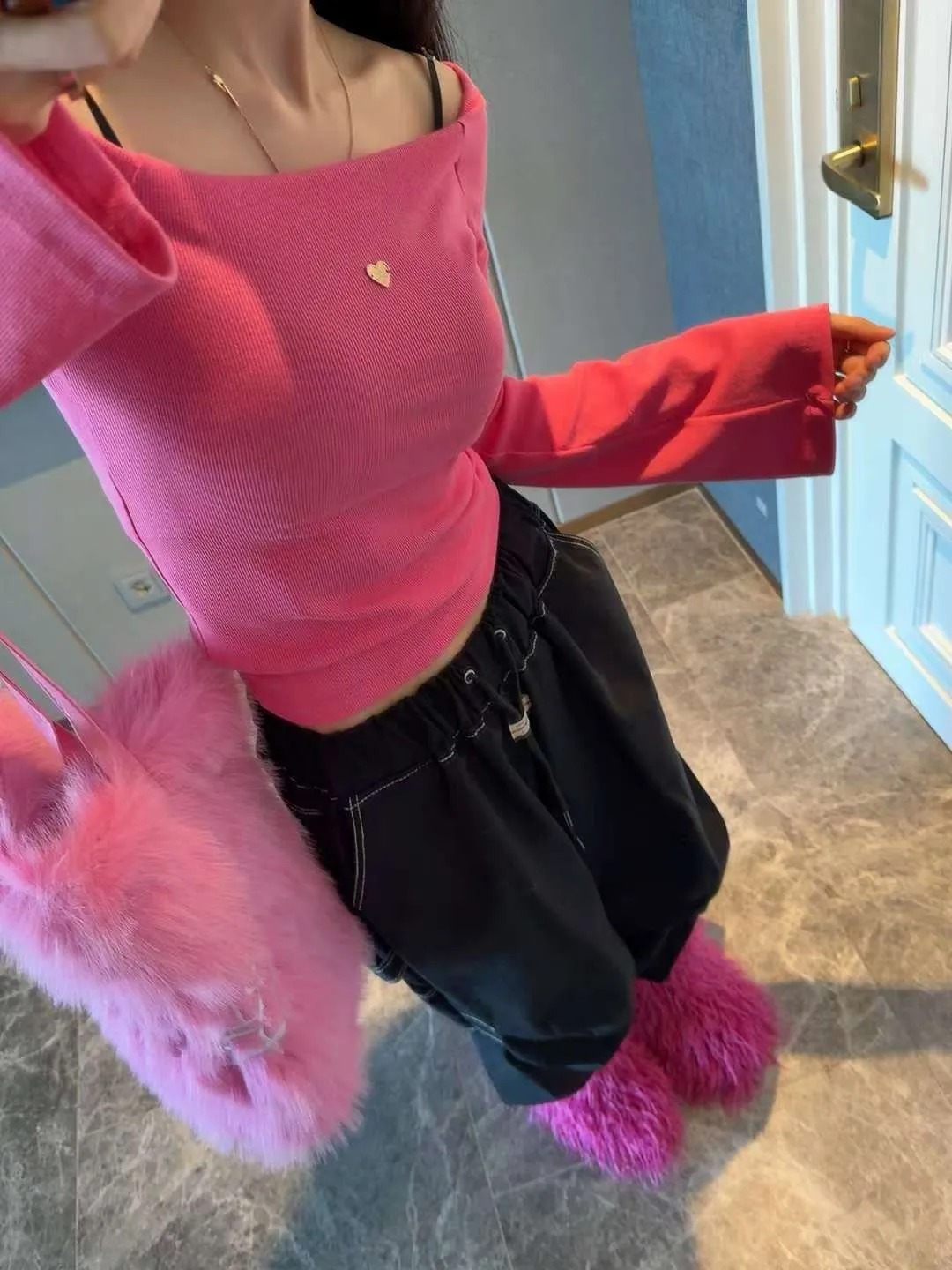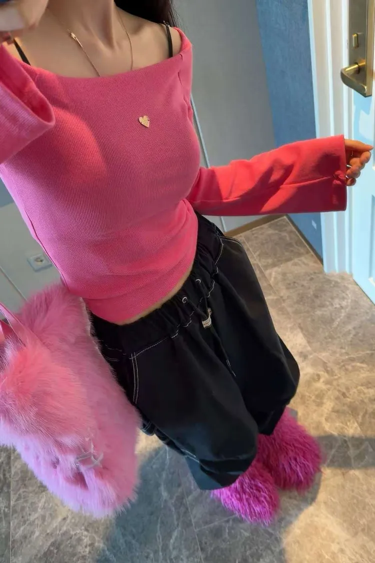 棉+彈力 喇叭袖顯瘦 胸前小愛心 可一字領