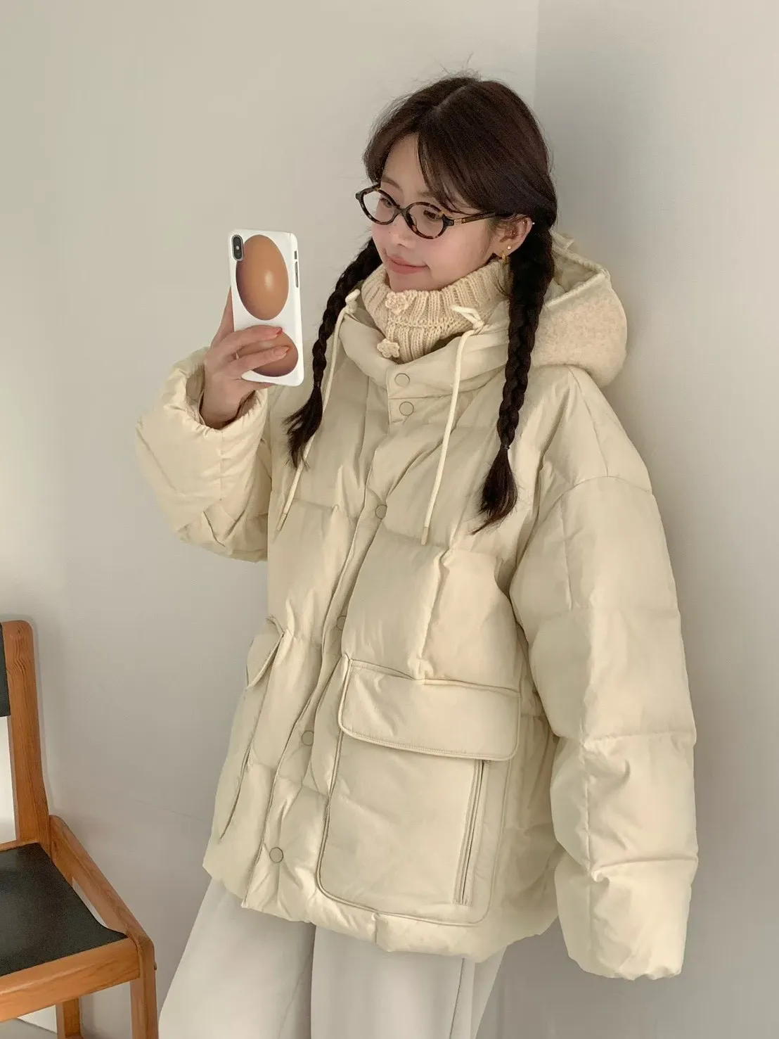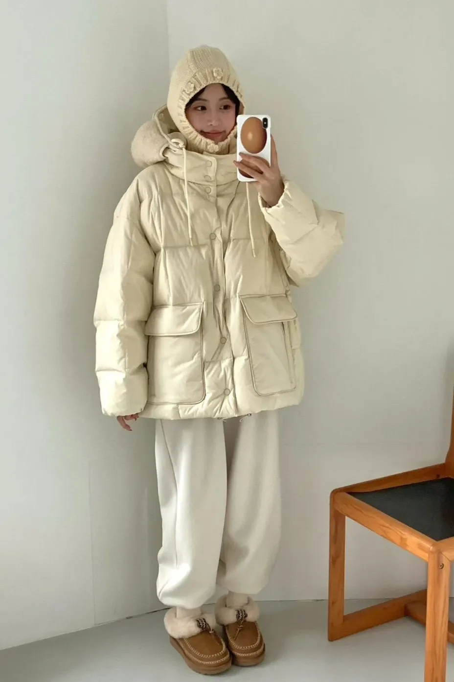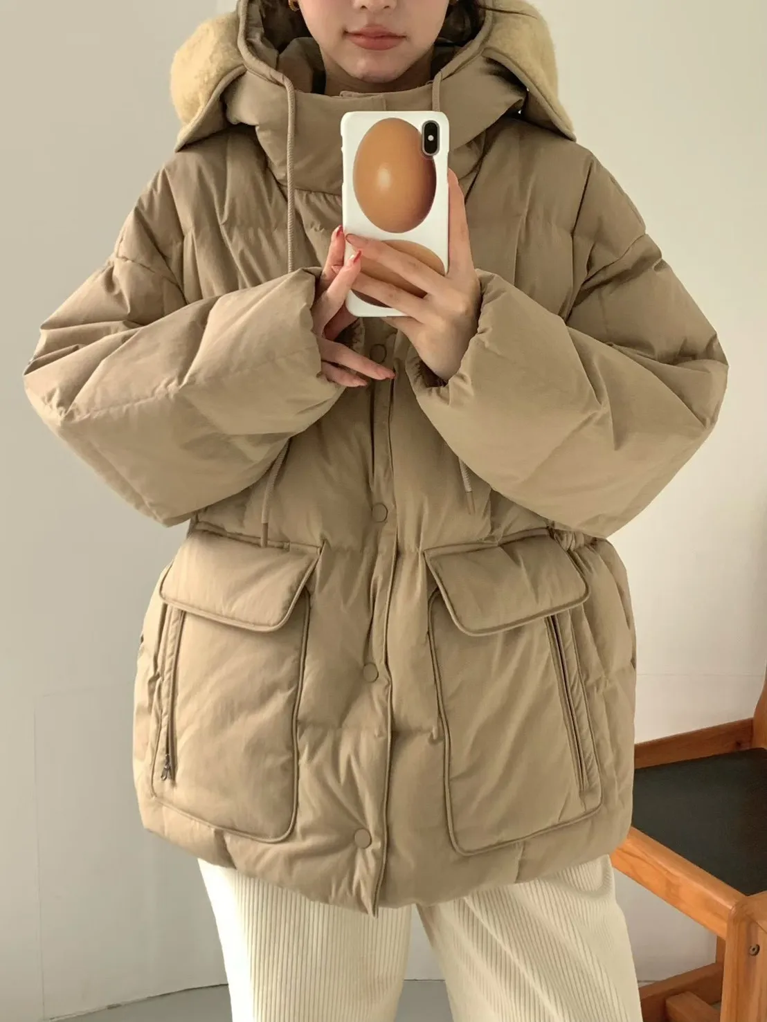 鵝絨100% 暖度極高 有口袋 空間寬鬆 飛行帽設計 下擺有抽繩