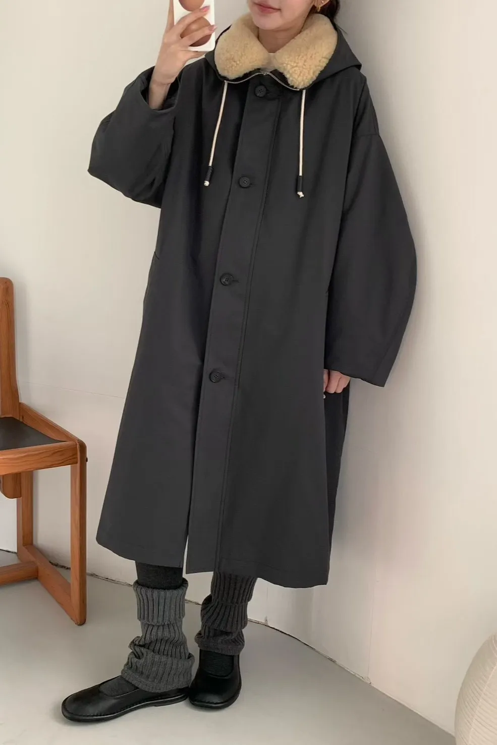 歐洲羊毛+尼龍 鵝絨 內襯可拆 拉鍊扣子穿脫 有口袋