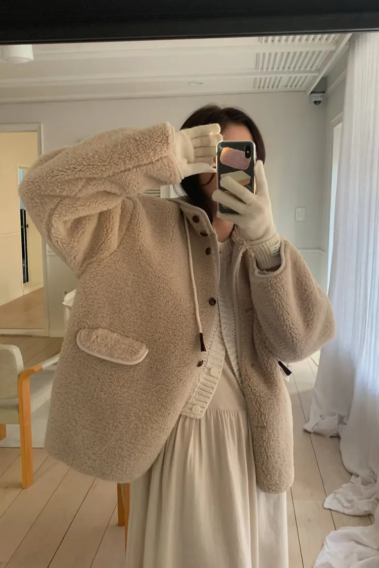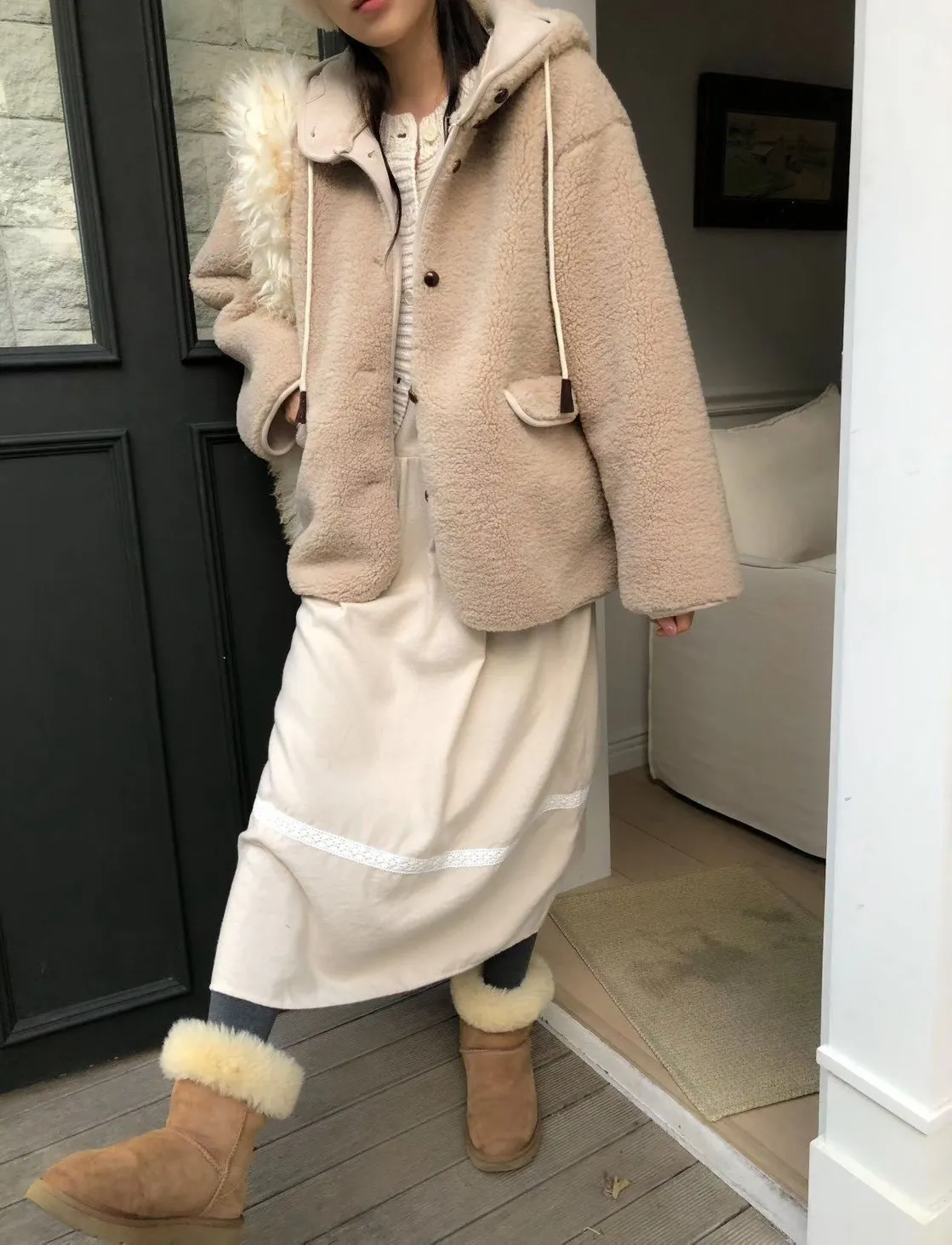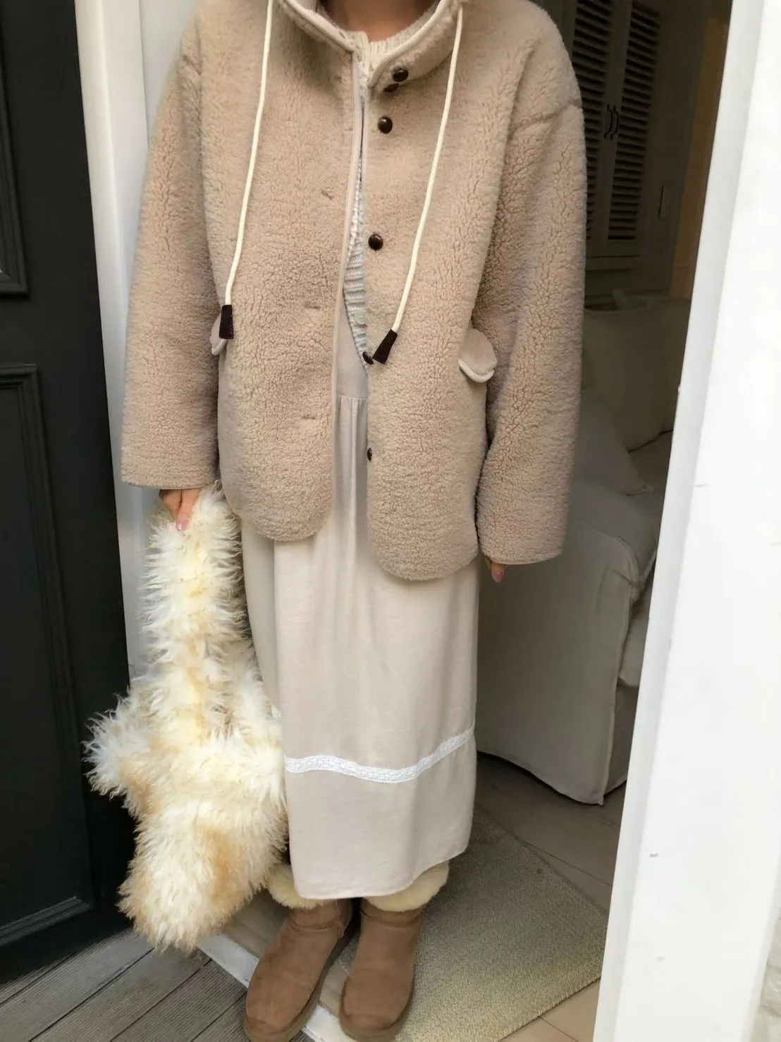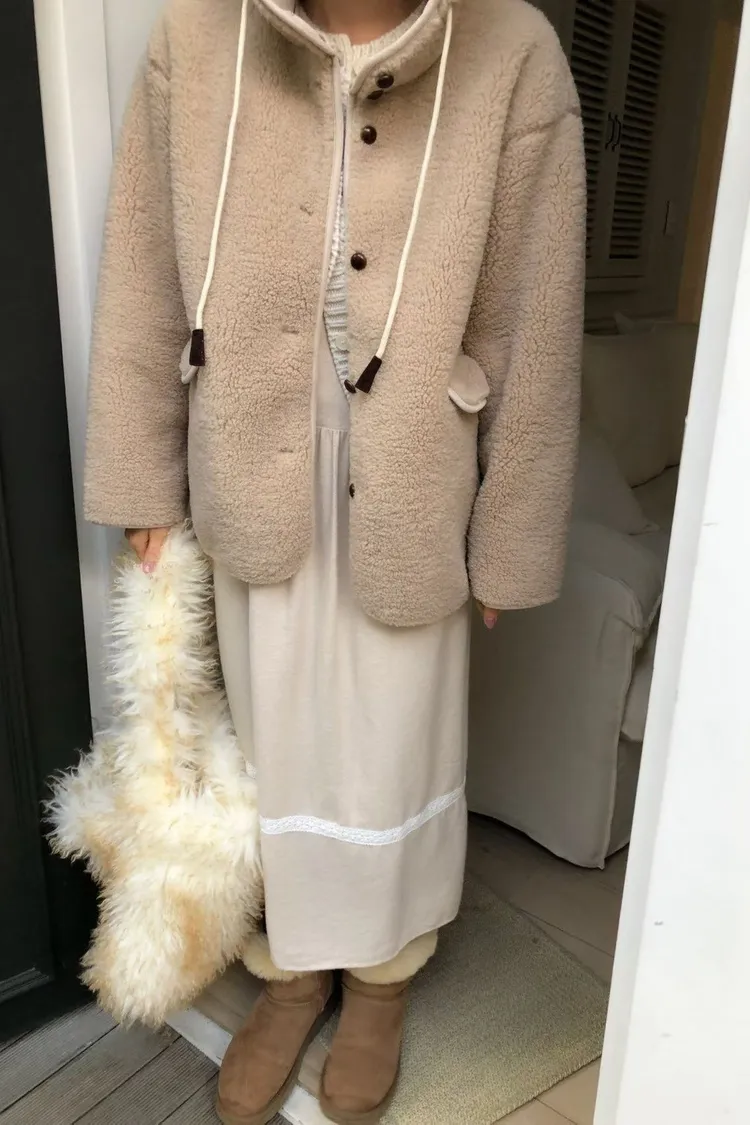 棉+聚酯 脖子防風雙釦 麂皮拼接抽繩 排釦穿脫 有口袋 約1.2公斤