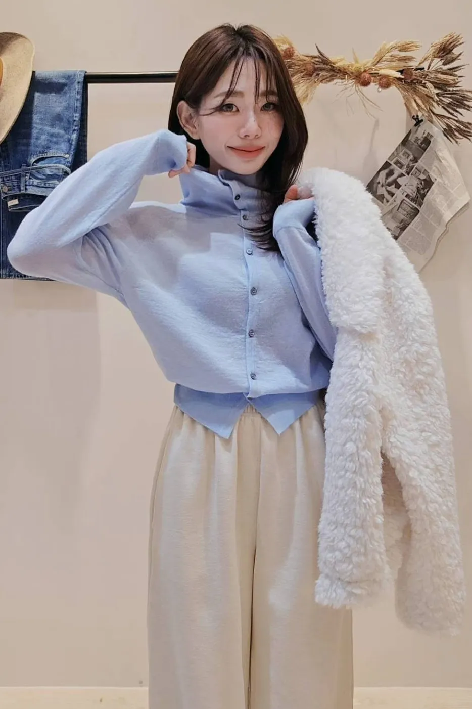 寶寶羊駝16%+羊毛38%+尼龍 親膚柔軟不刺癢 紗線紋理 珍珠母貝釦