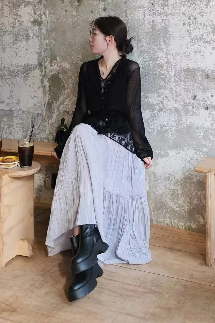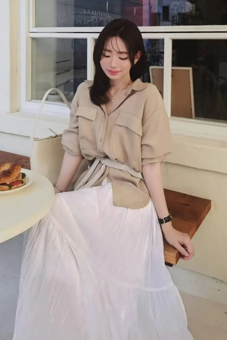TR209回購款推薦款皺皺仙女飄逸美裙(原MK514) 米 灰 黑 官網價$1450 線上價$1420