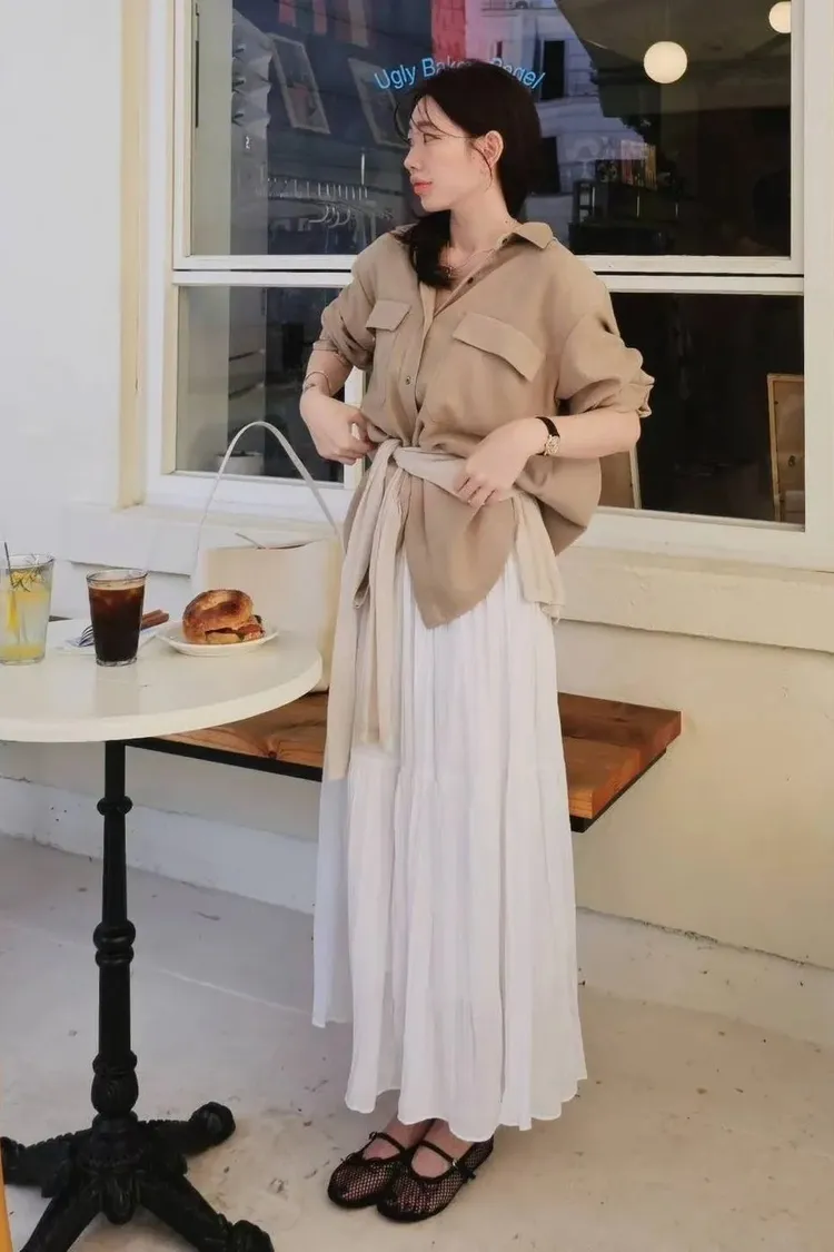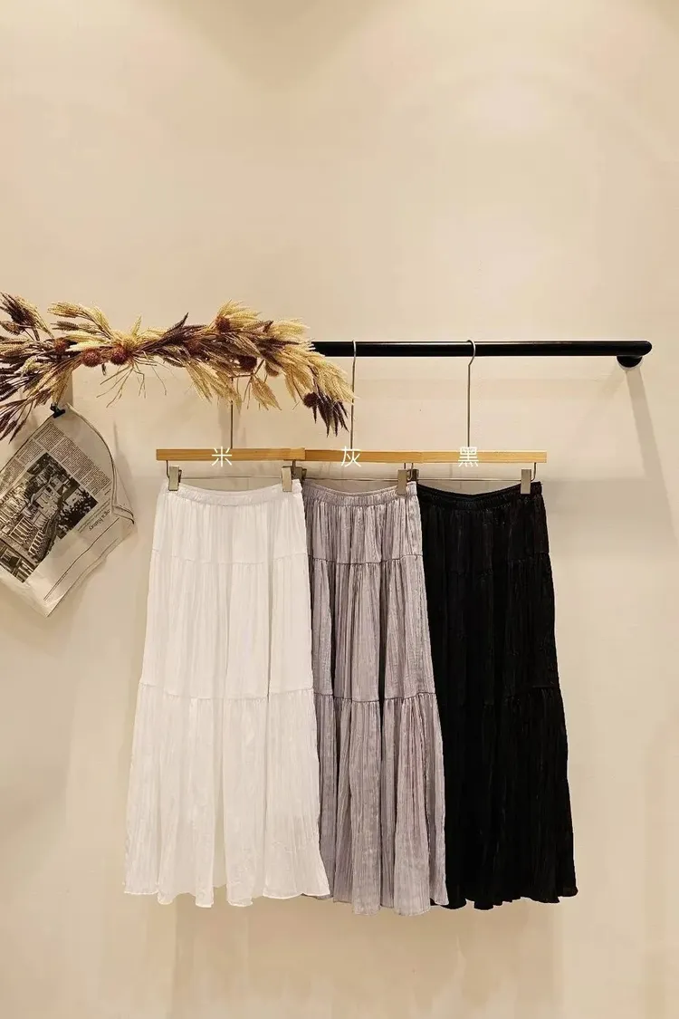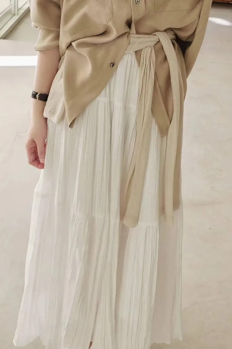 聚酯 微微珠光感 三層蛋糕 輕盈飄逸 有內裡無口袋 腰鬆緊