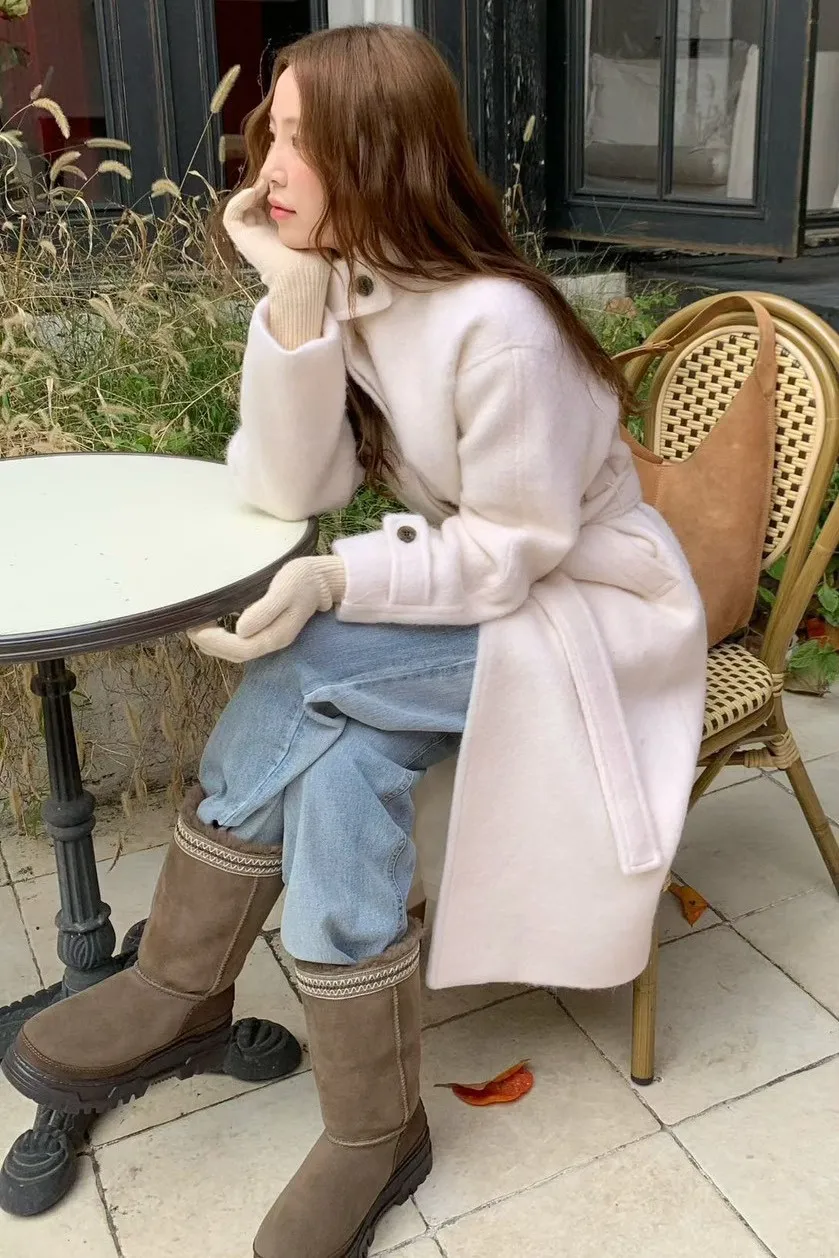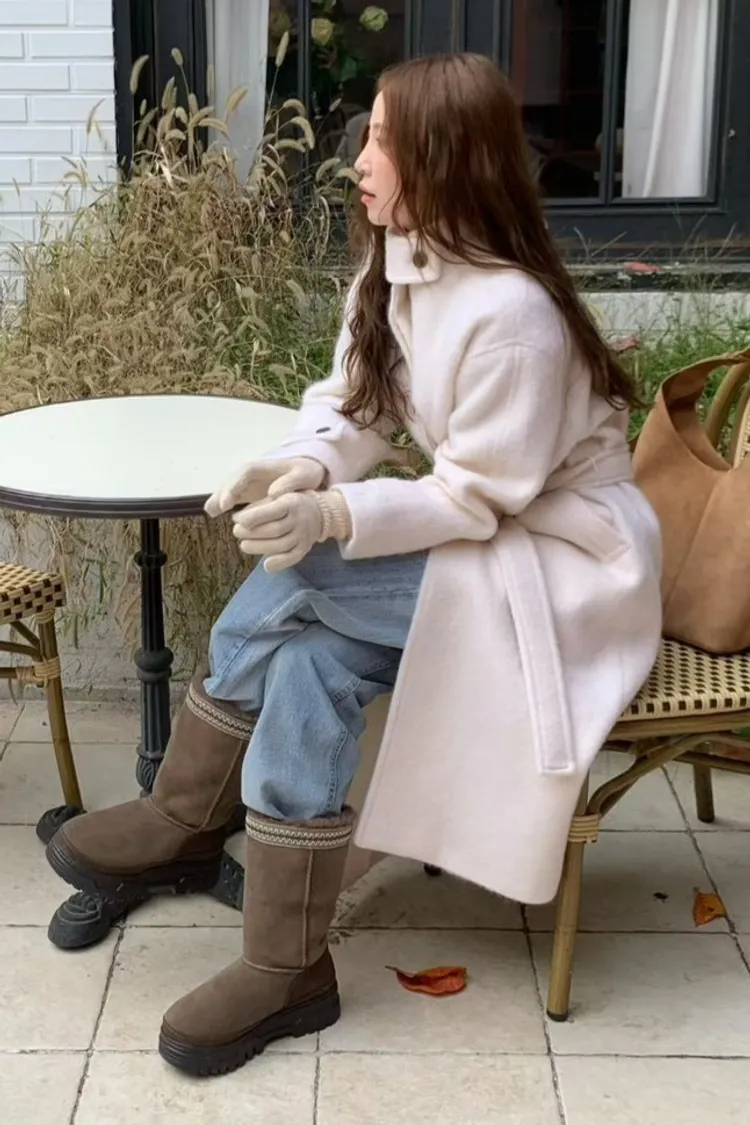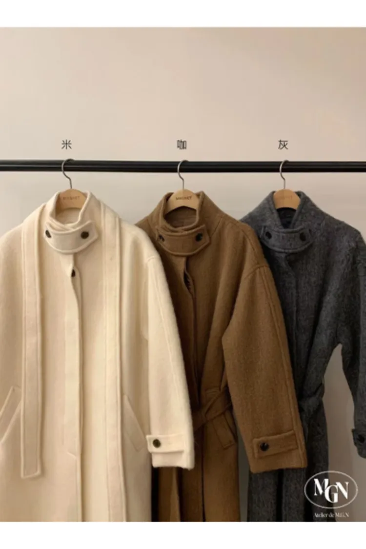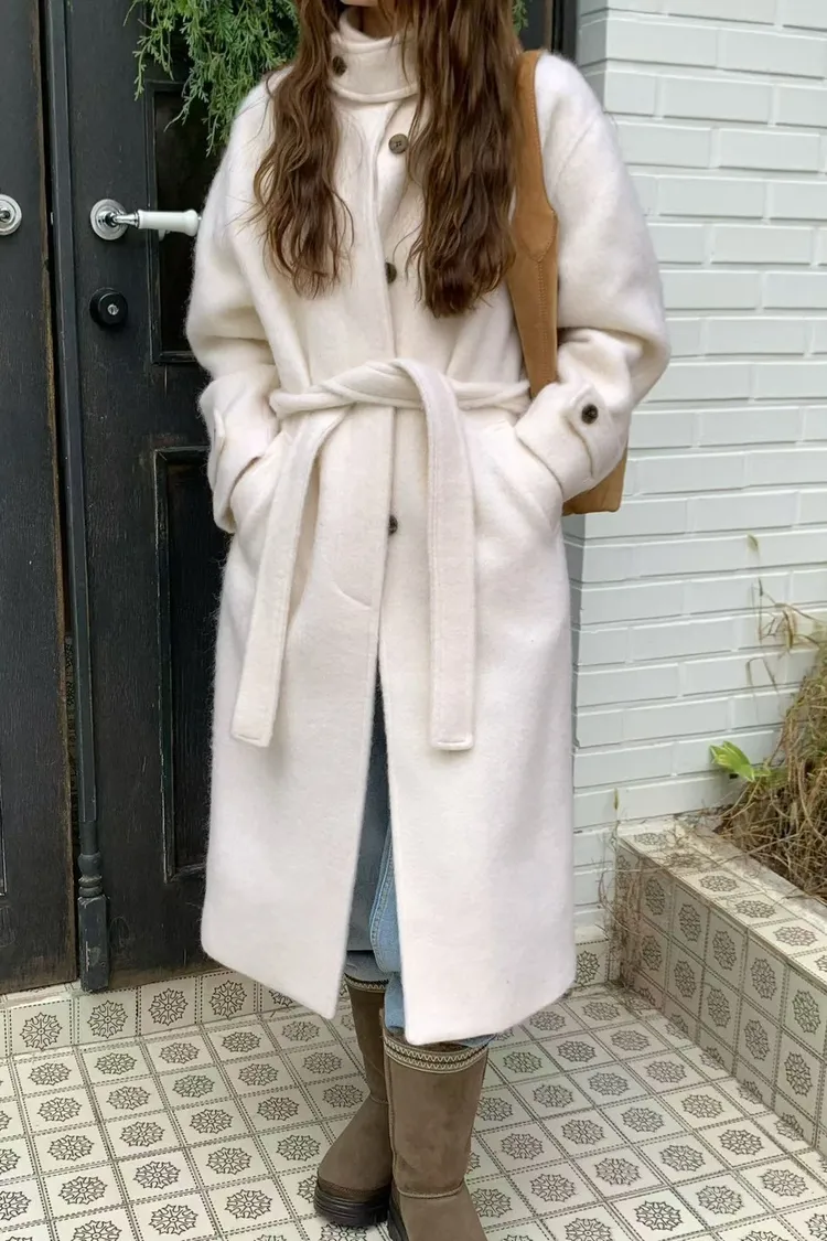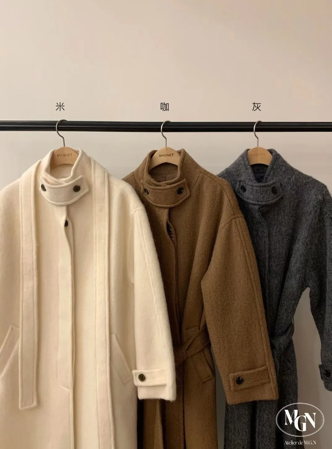 羊毛100%,防風領釦 有腰帶 有口袋 時髦穿搭 有內裡