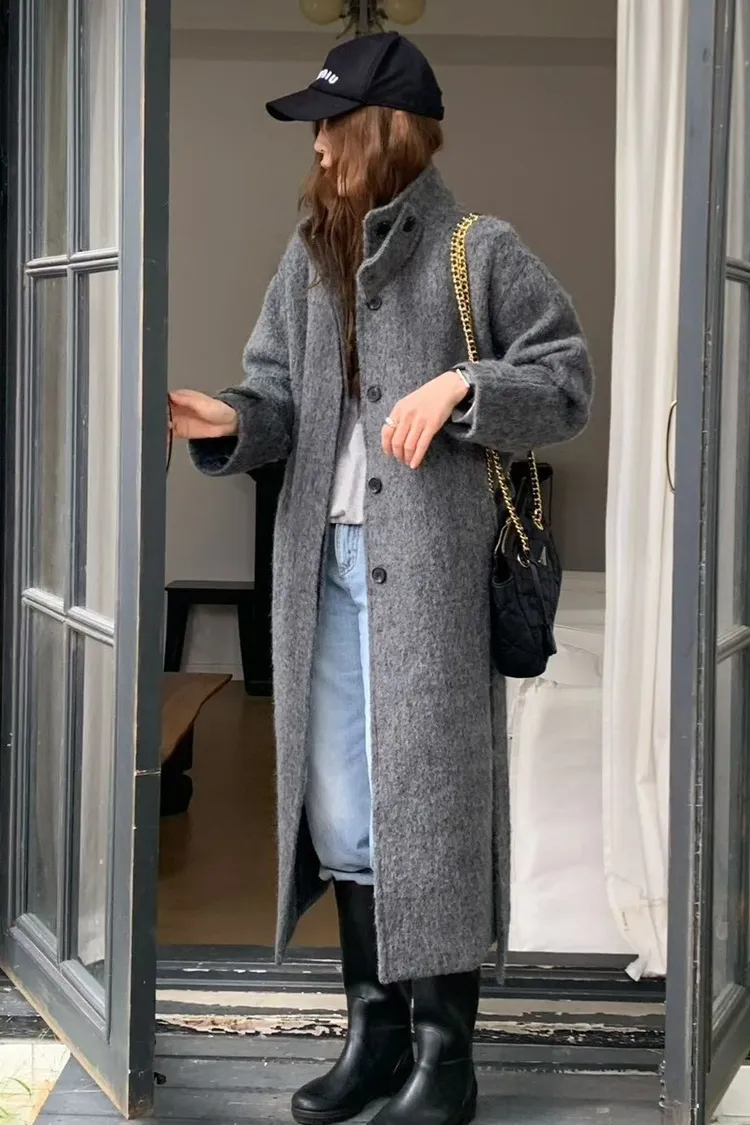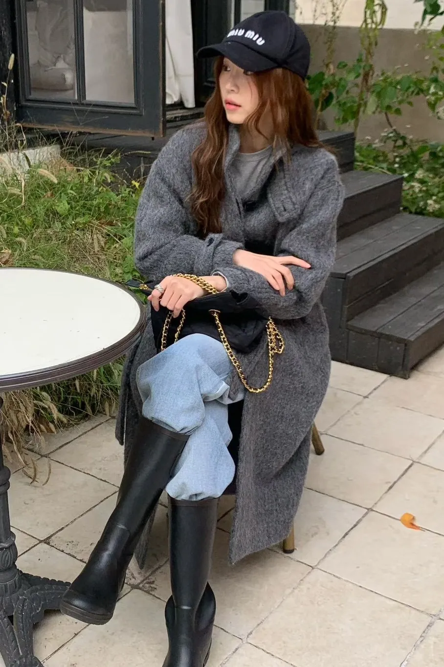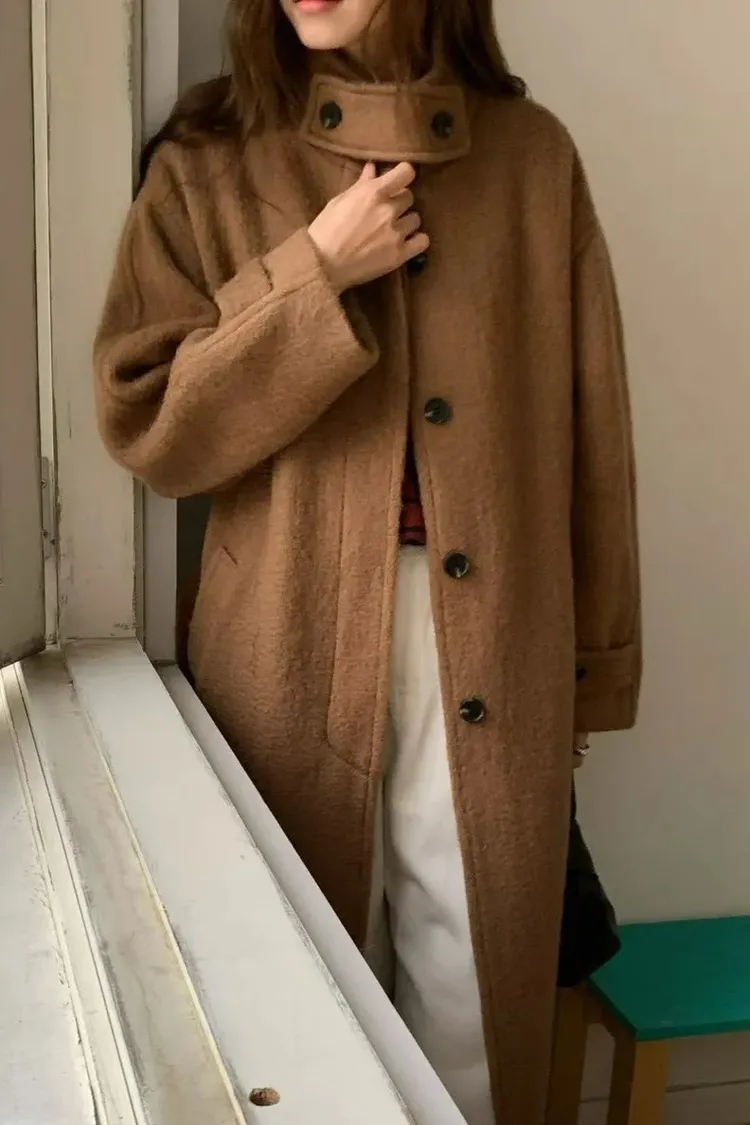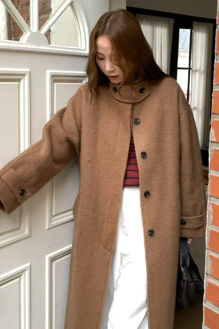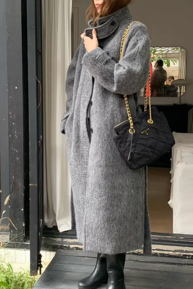 羊毛100%,防風領釦 有腰帶 有口袋 時髦穿搭 有內裡