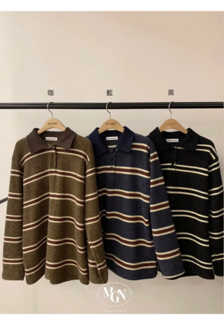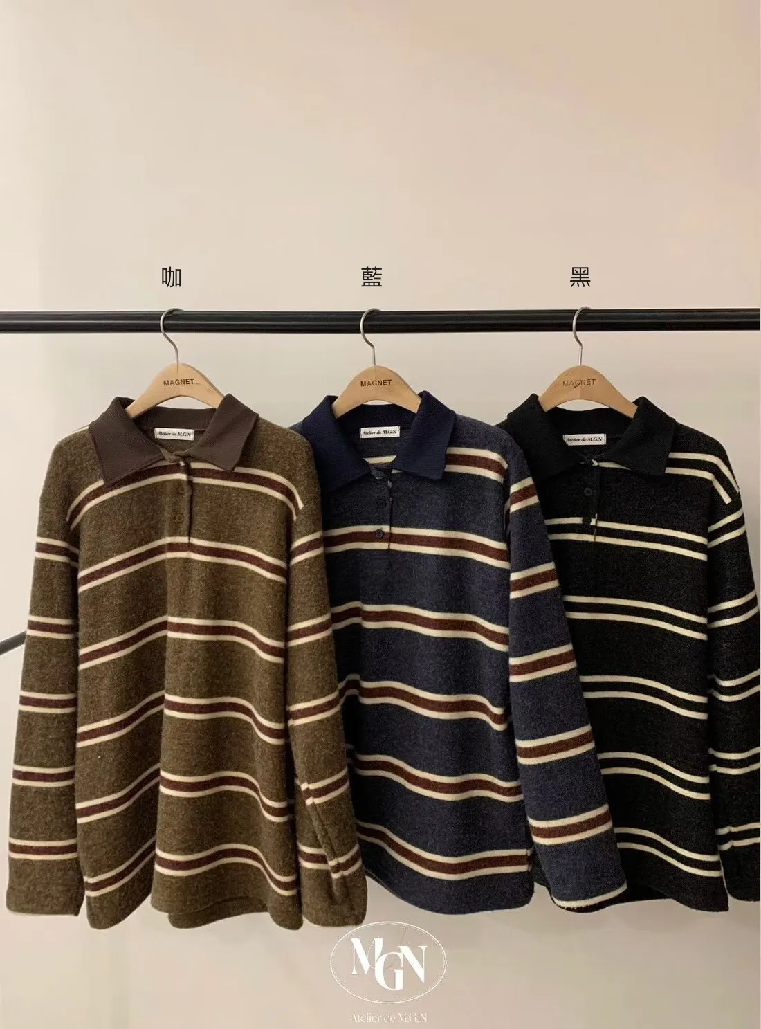 TR241條紋polo上衣 咖 藍 黑 官網價$1190 線上價$1160