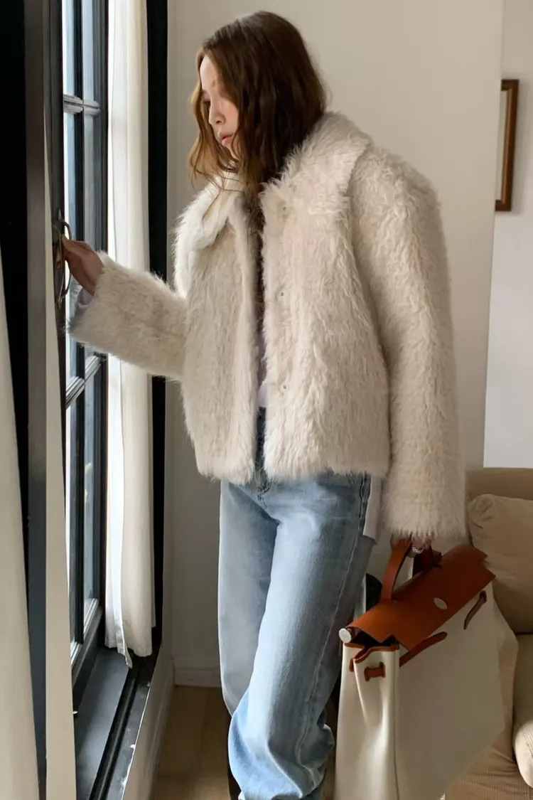 羊毛50%+人造絲 不掉毛 壓釦穿脫