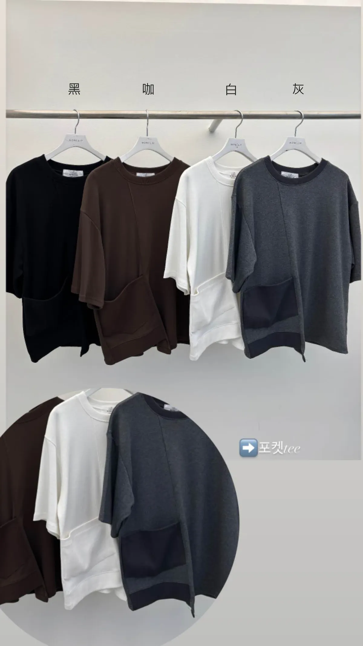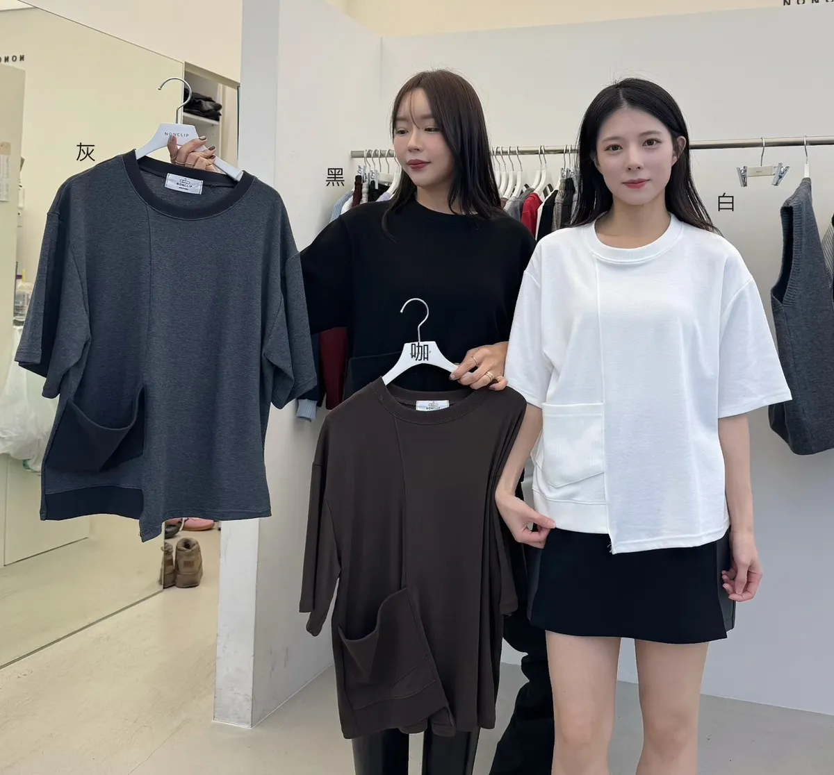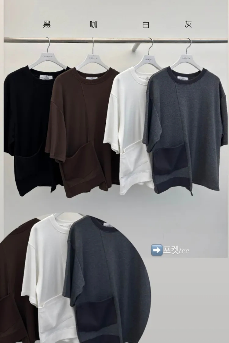 棉+萊卡+彈力 滑順觸感 異材質拼接口袋 不規則下擺剪裁 領口舒適度高