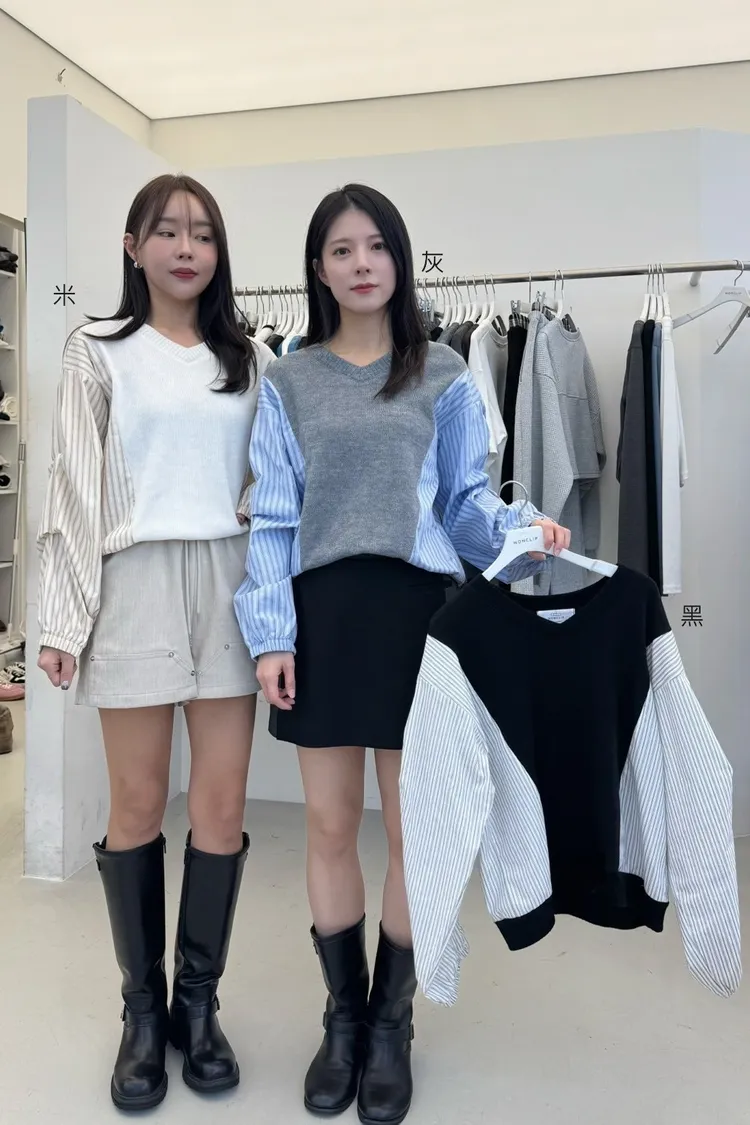 針織棉+襯衫棉 異材質拼接 寬鬆舒適 鬆弛休閒 不撞款