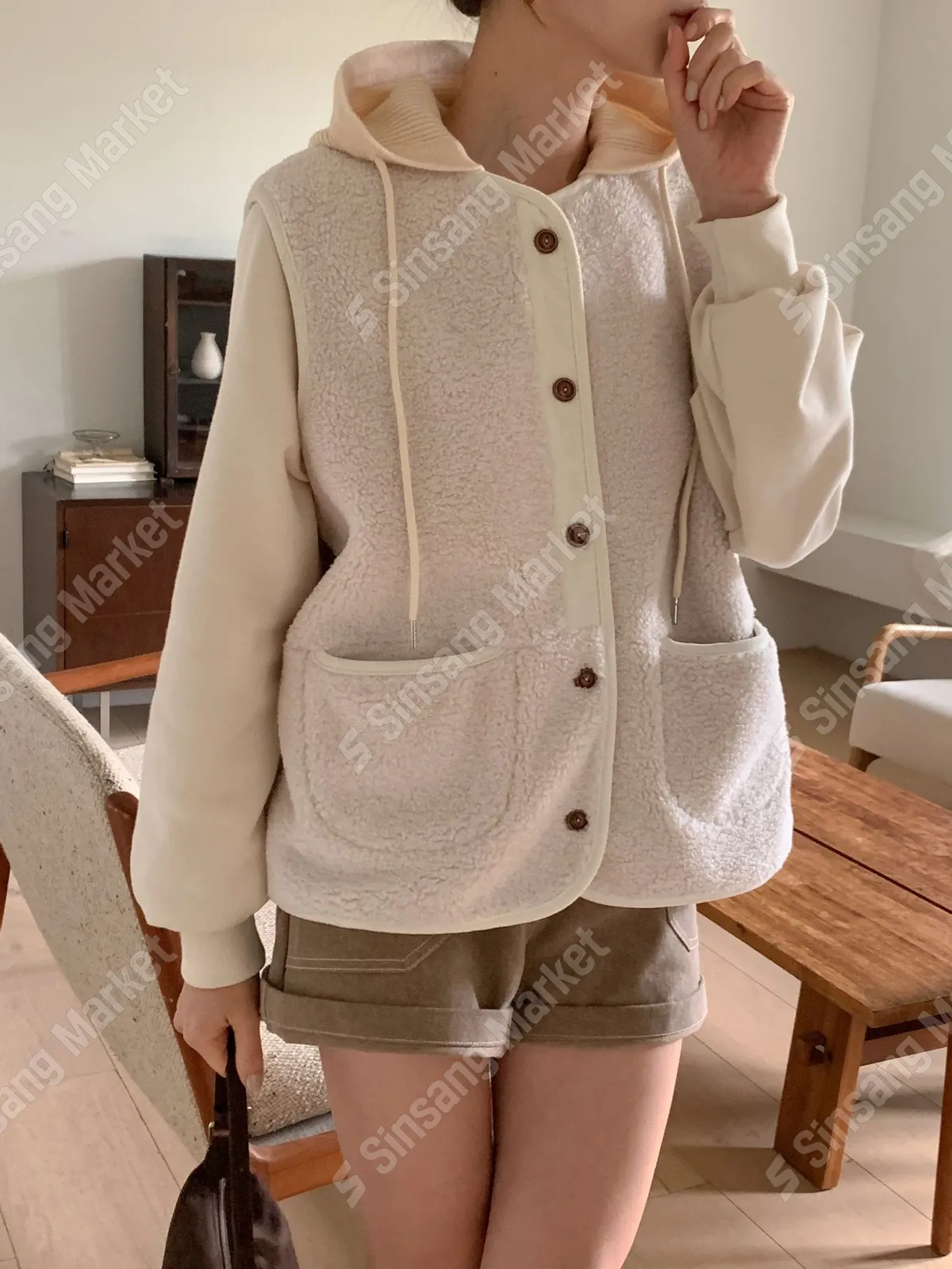 棉70+聚酯30% 連帽可拆設計 壓釦穿脫 有口袋 拼接材質 臂寬很大