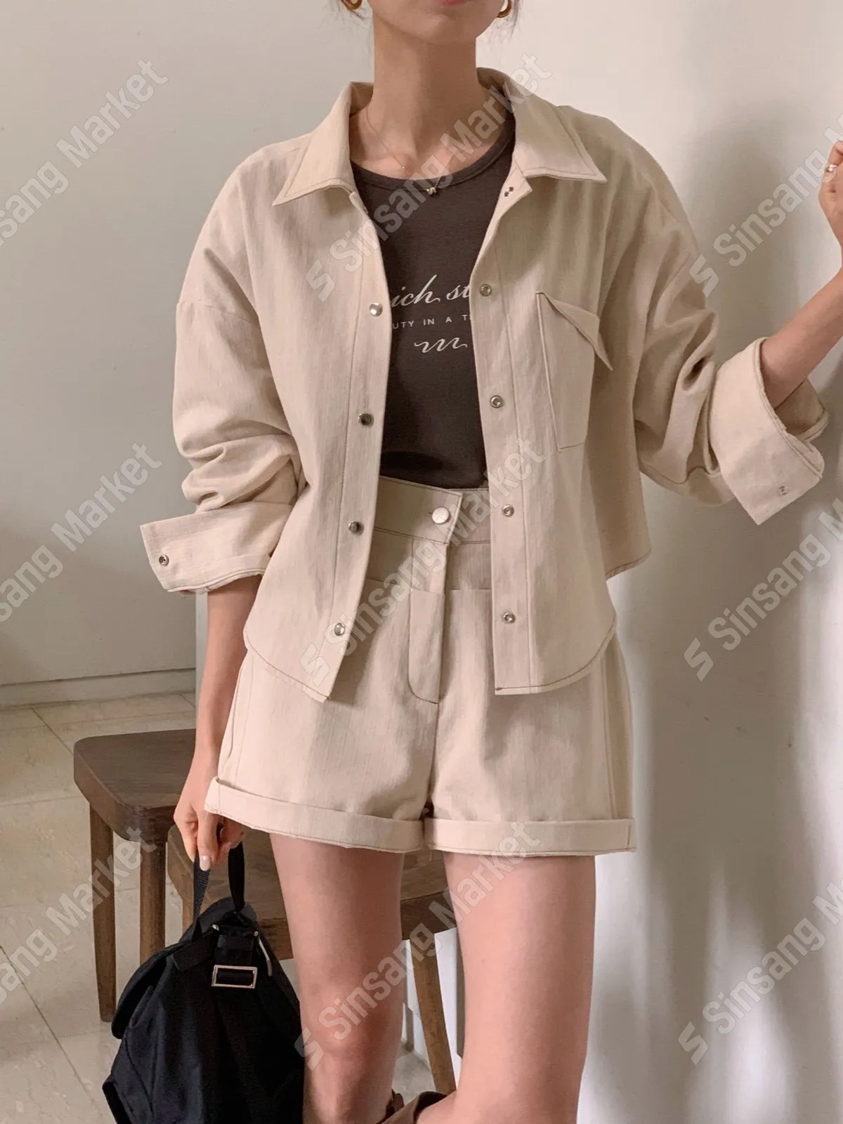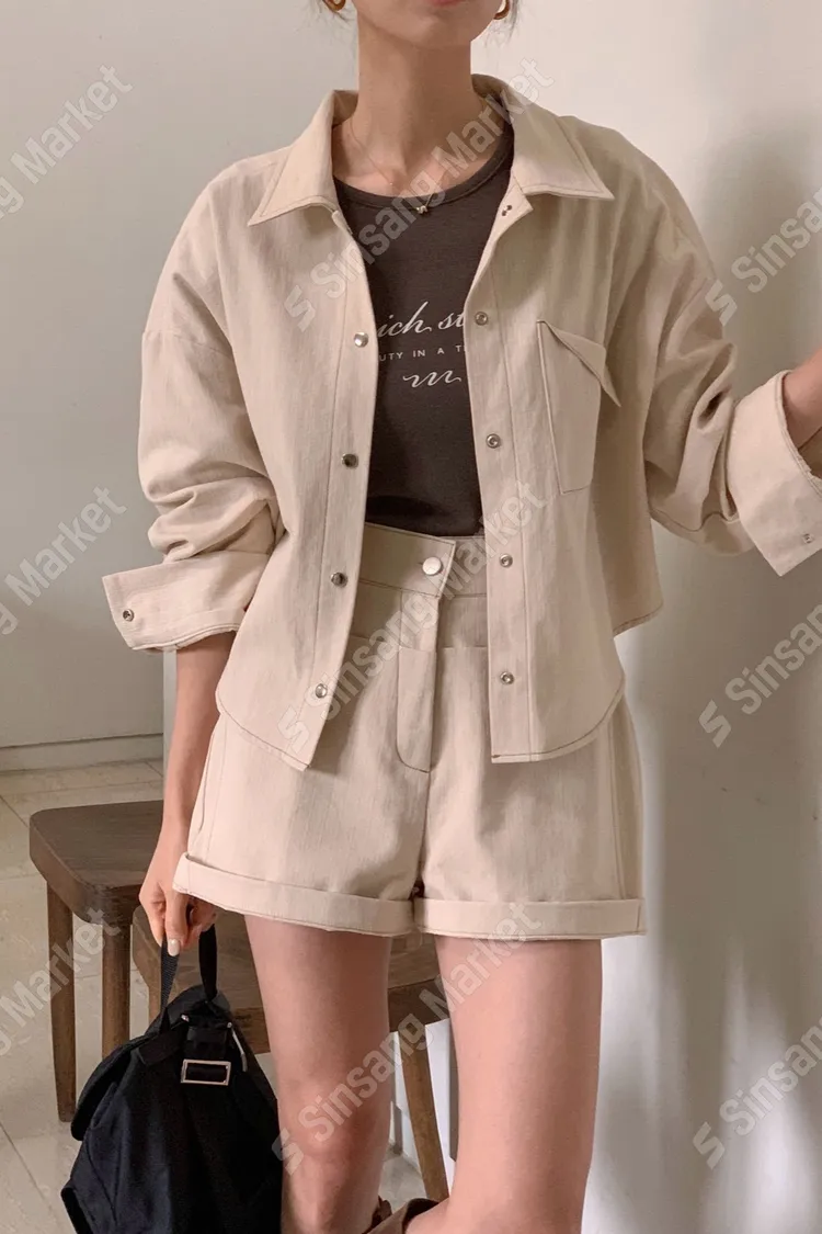 棉 薄款有挺度 不厚不重 反摺口袋設計