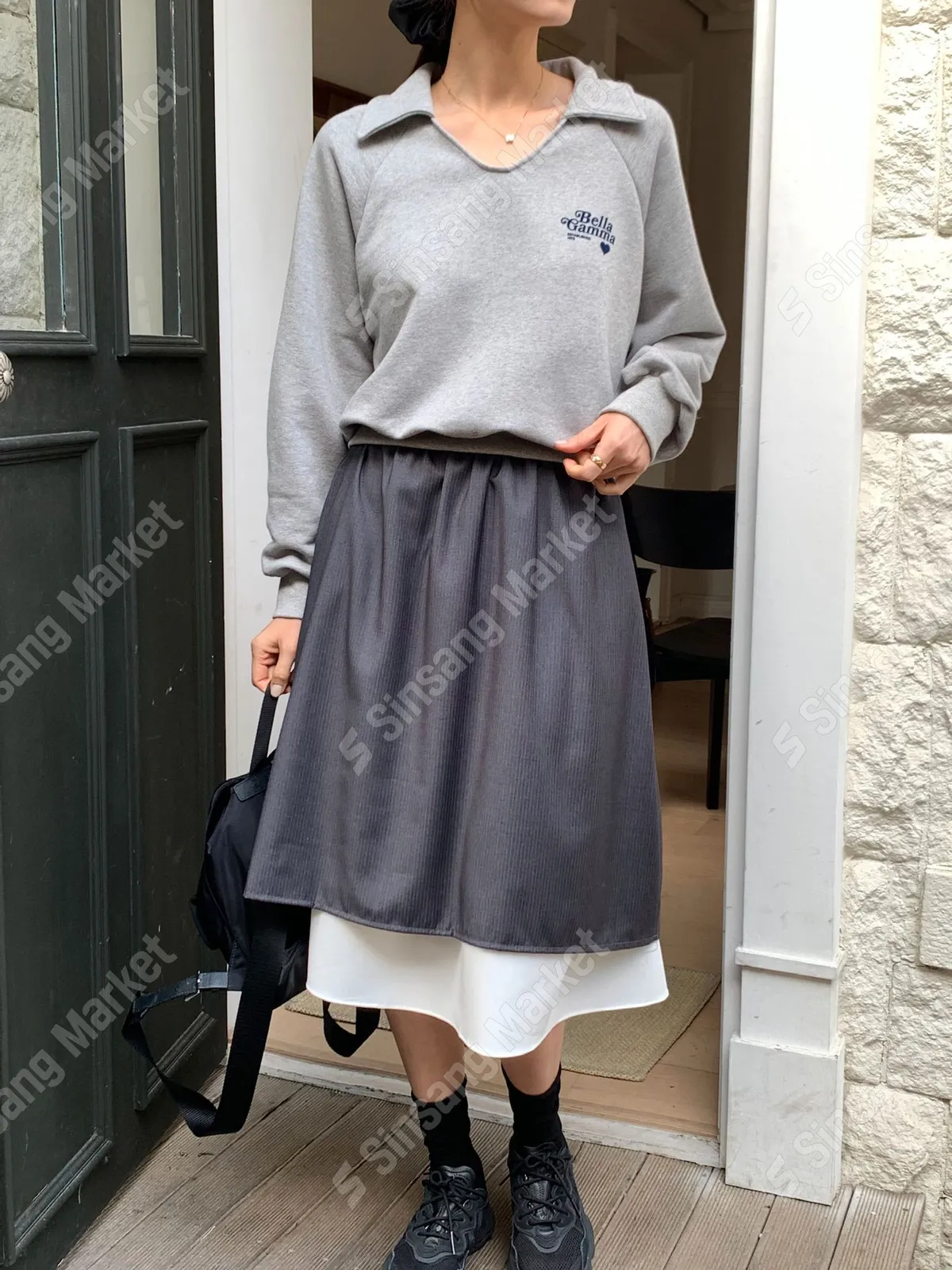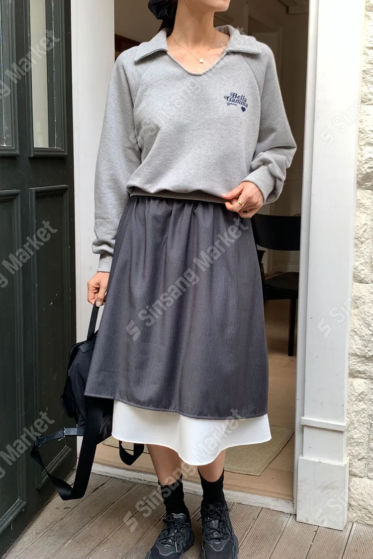 西裝面料 雙層下擺 細線直條紋 薄款滑面料 有內裡