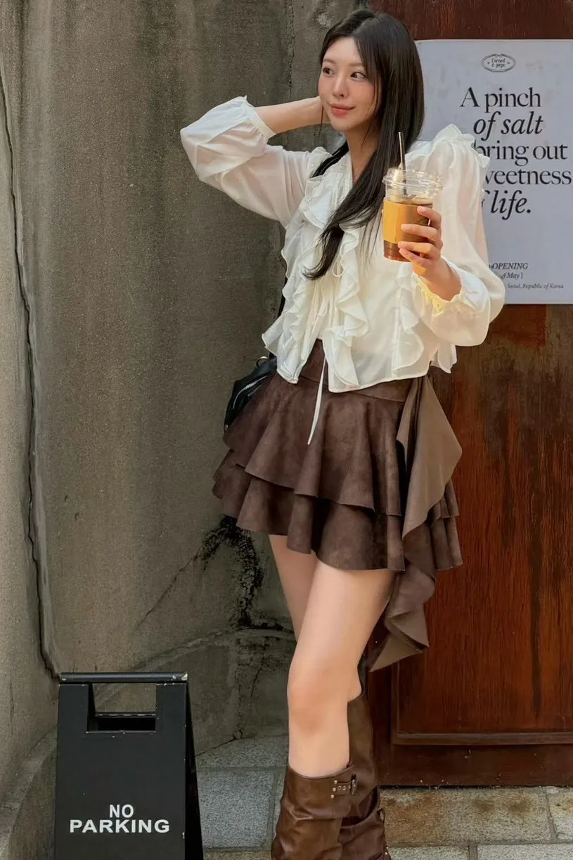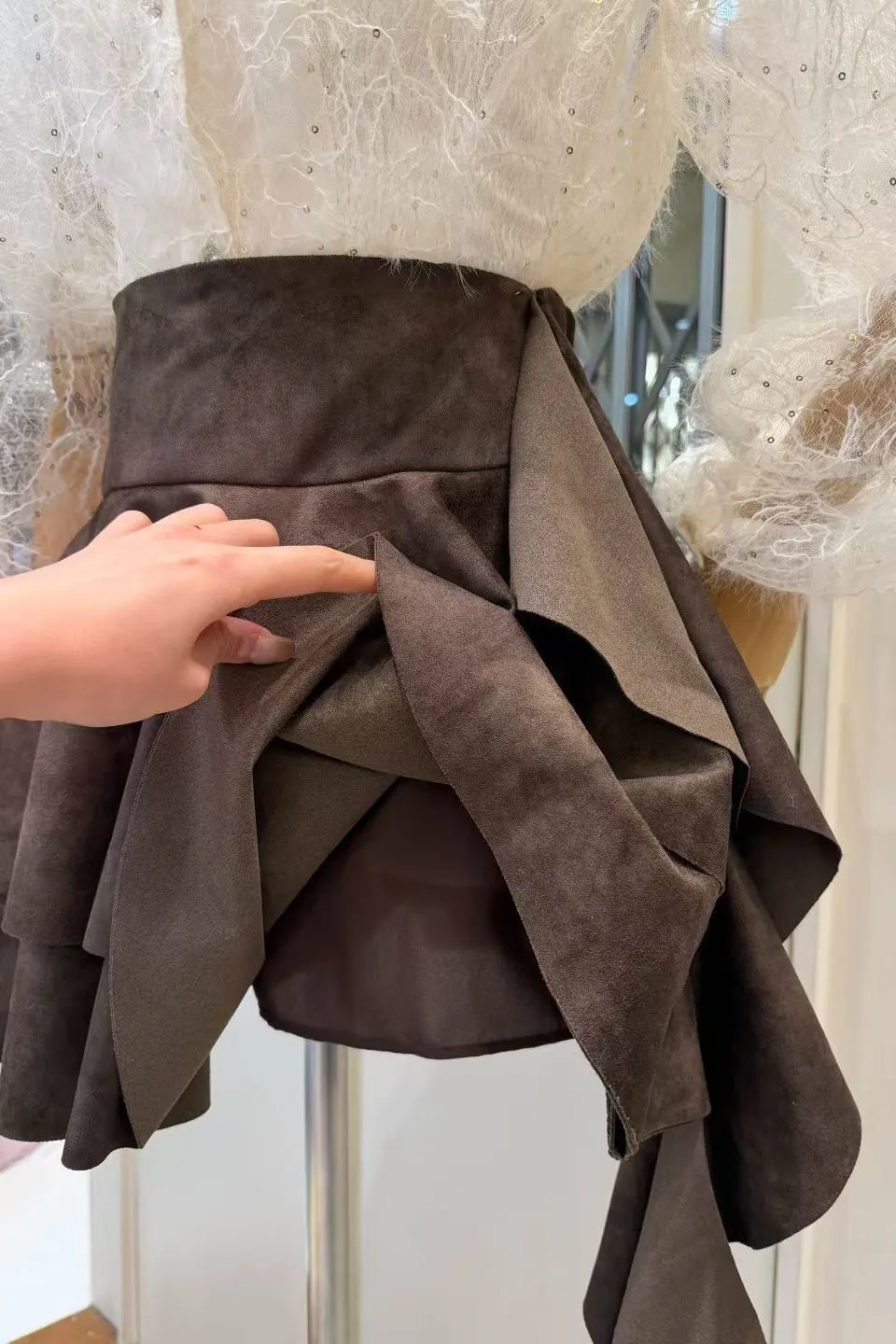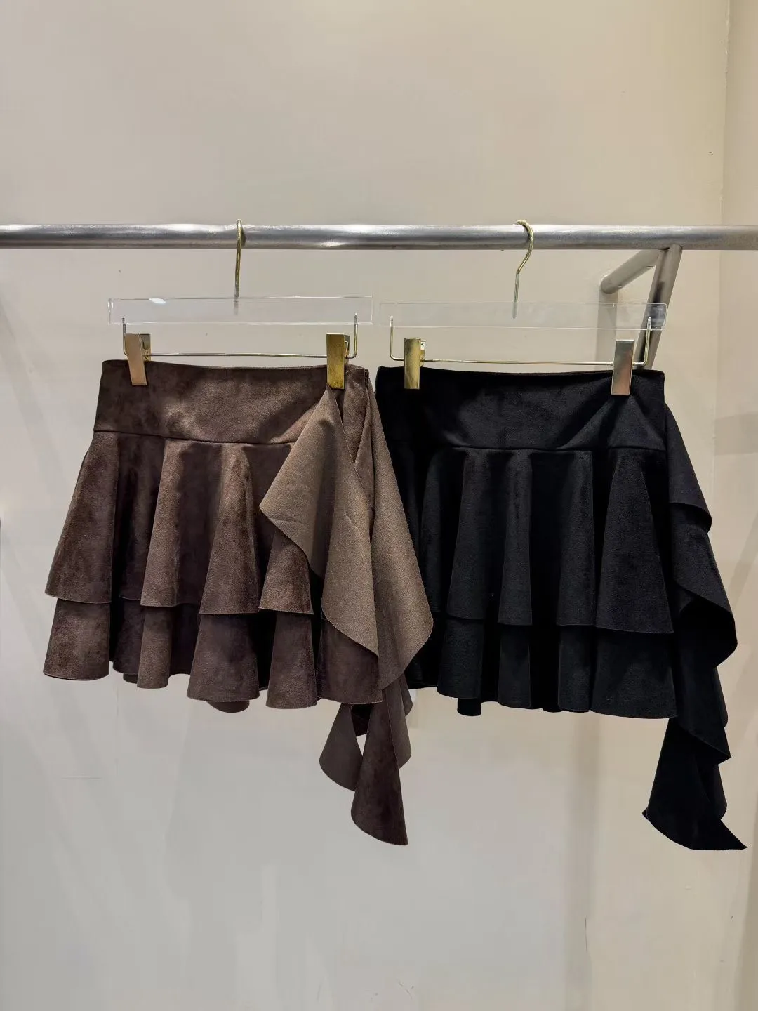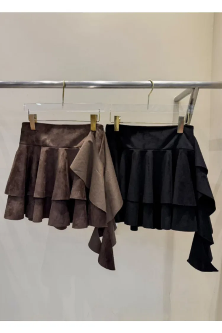 麂皮 推薦款 側拉鍊 單側垂墜設計 彈性舒適內裡 是褲裙
