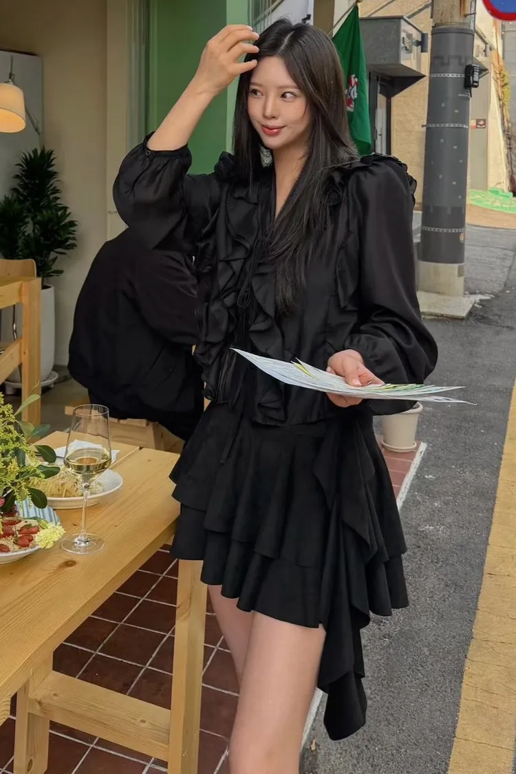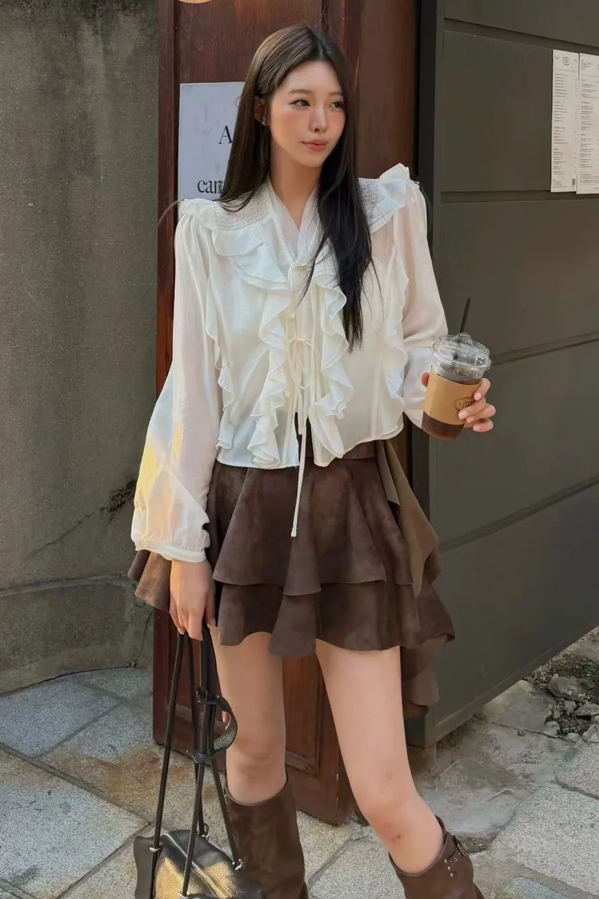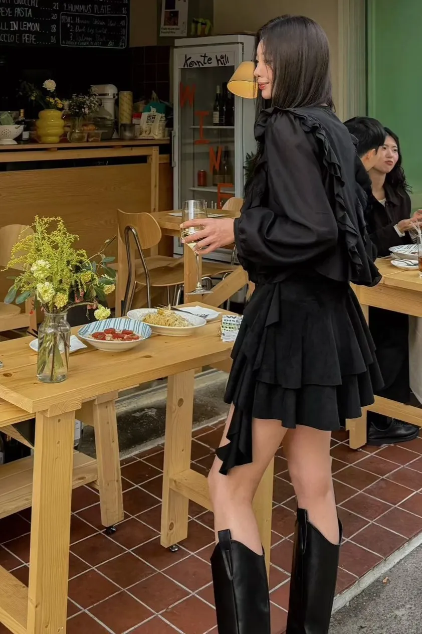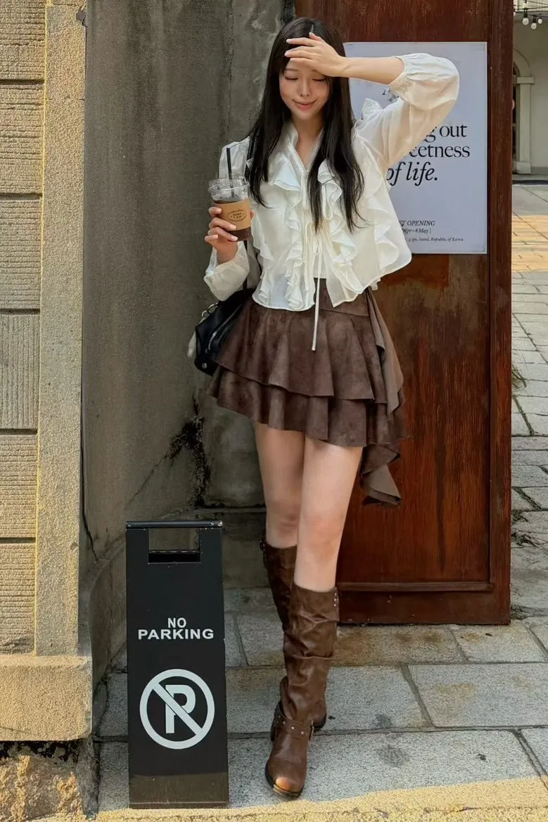 麂皮 推薦款 側拉鍊 單側垂墜設計 彈性舒適內裡 是褲裙