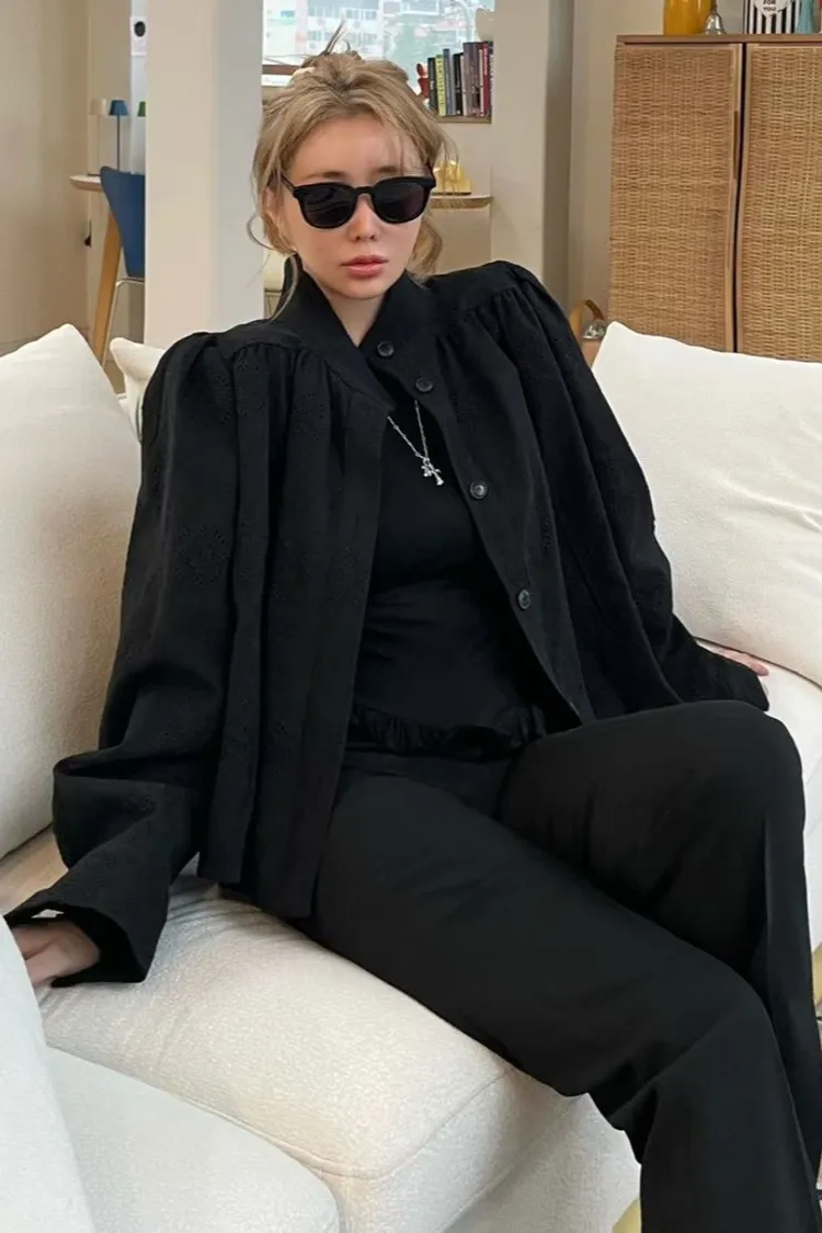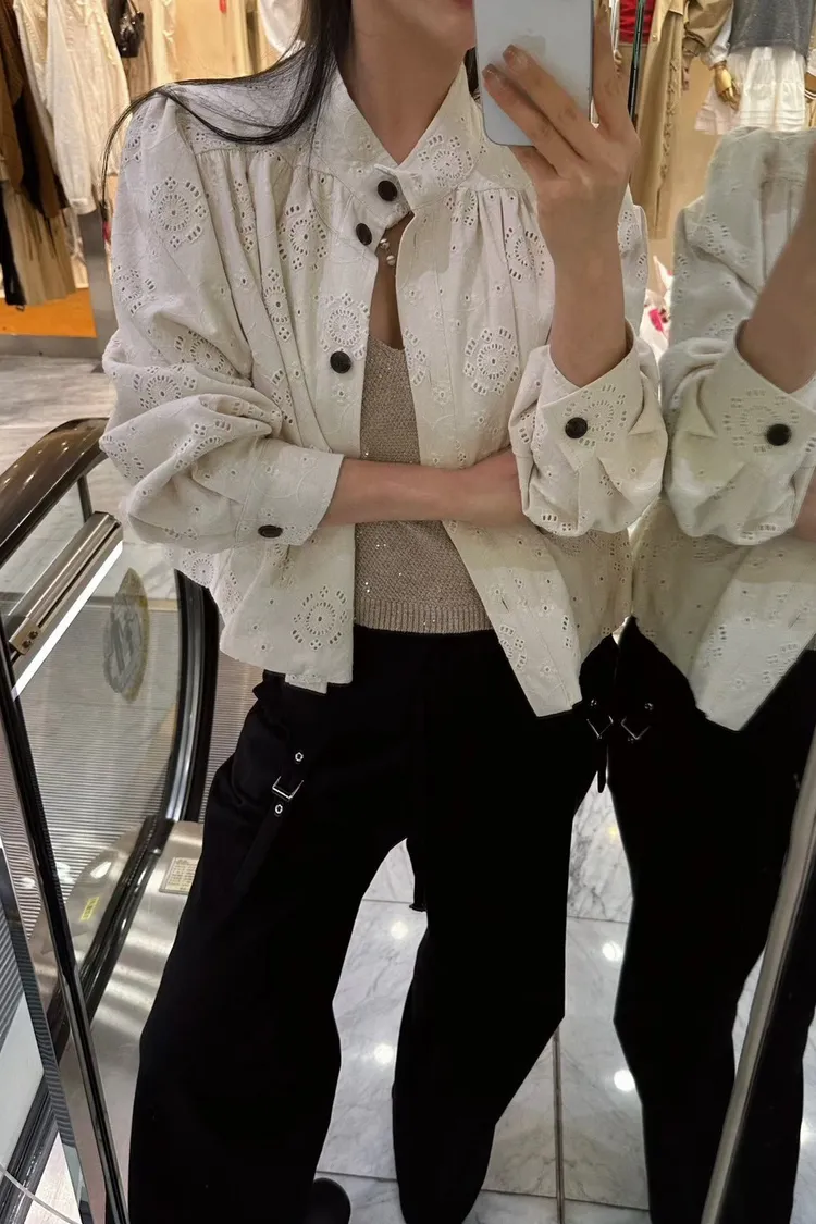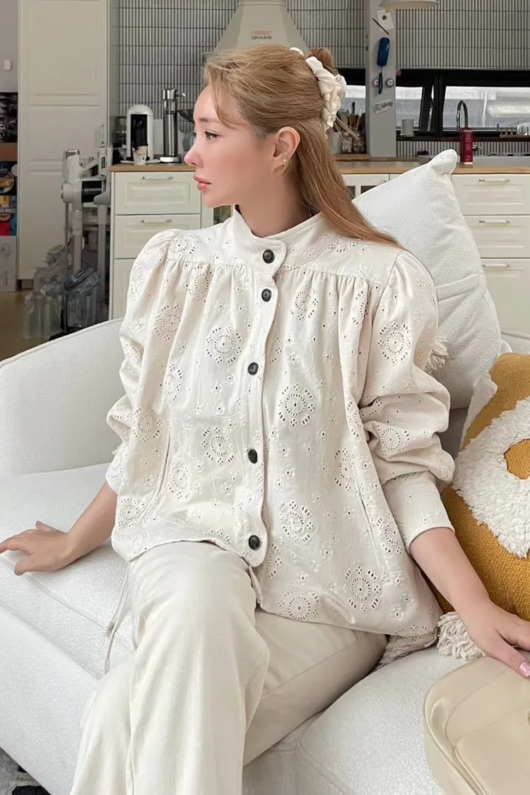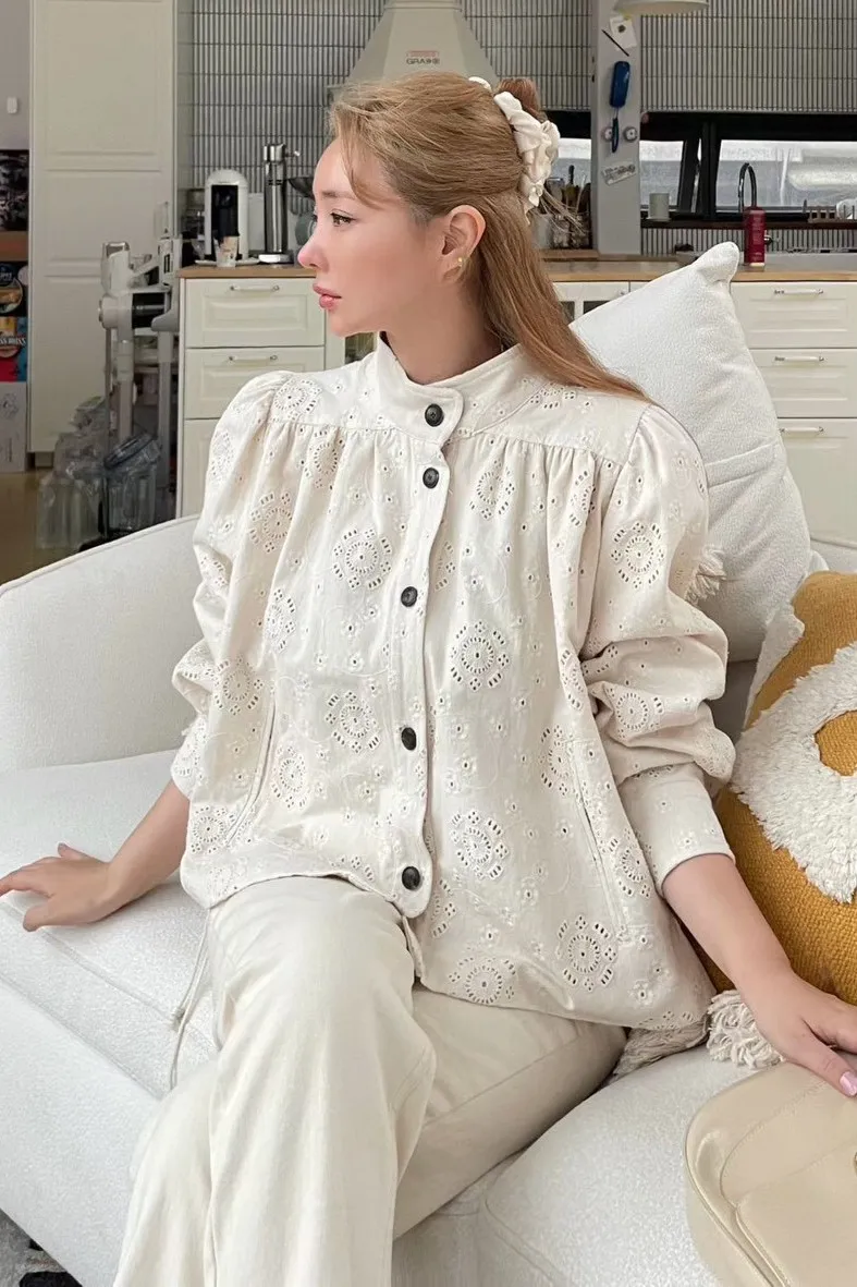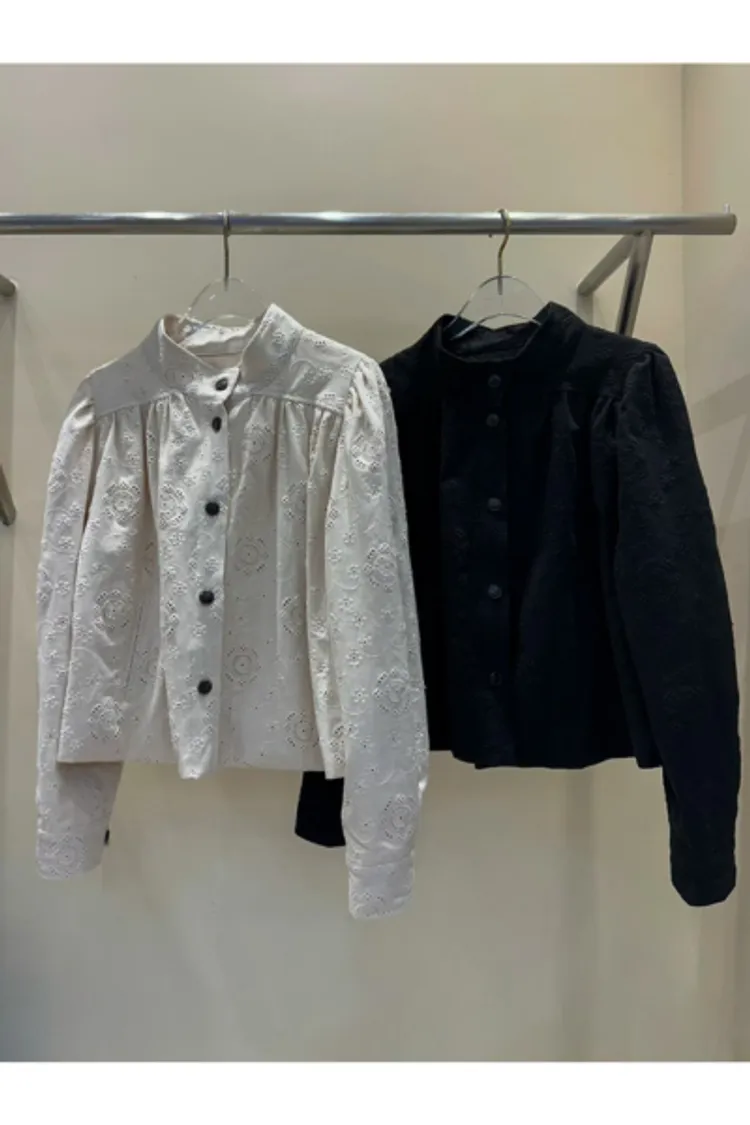 棉+聚酯 質感面料 精緻燒花 氣質抓皺車線 排釦穿脫 有內裡