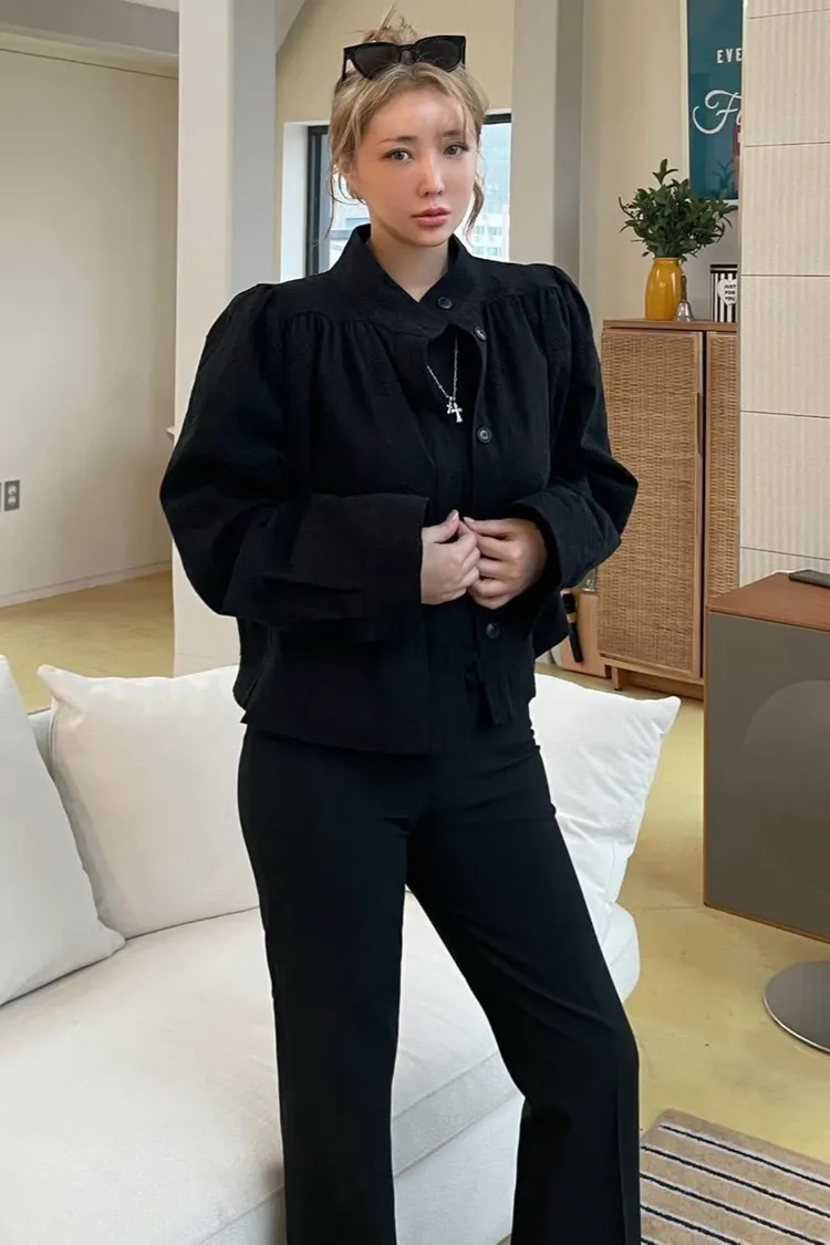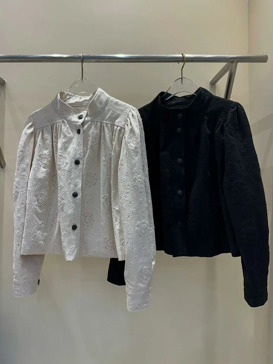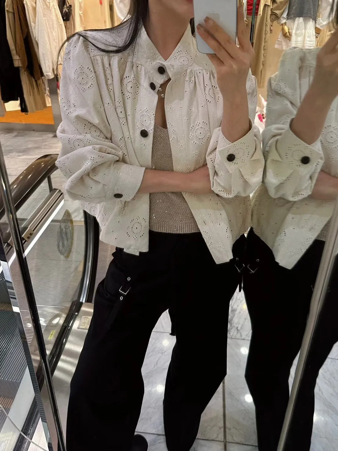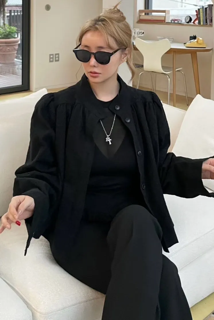 棉+聚酯 質感面料 精緻燒花 氣質抓皺車線 排釦穿脫 有內裡