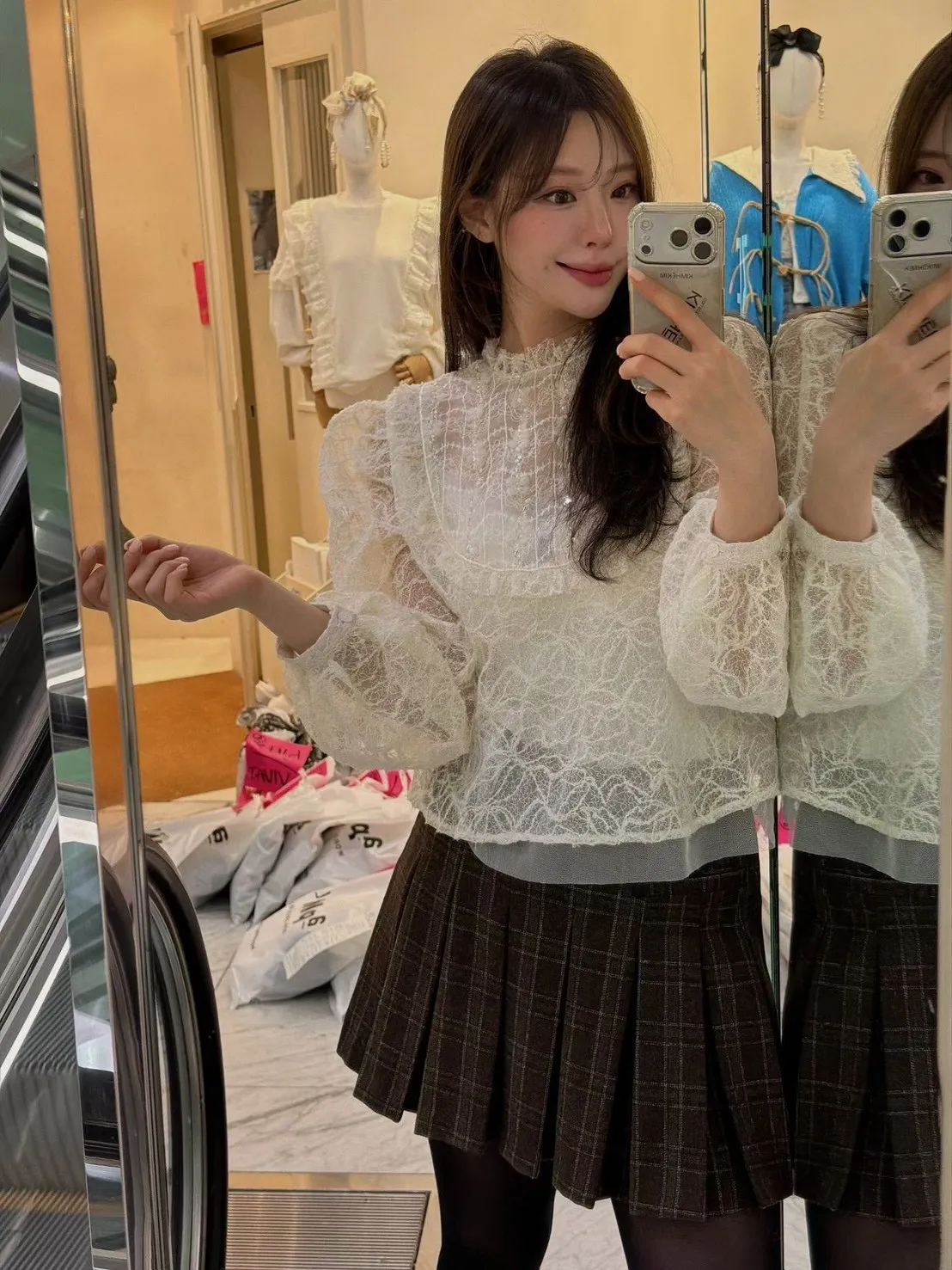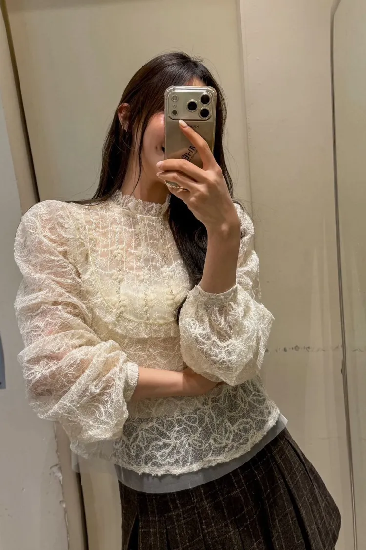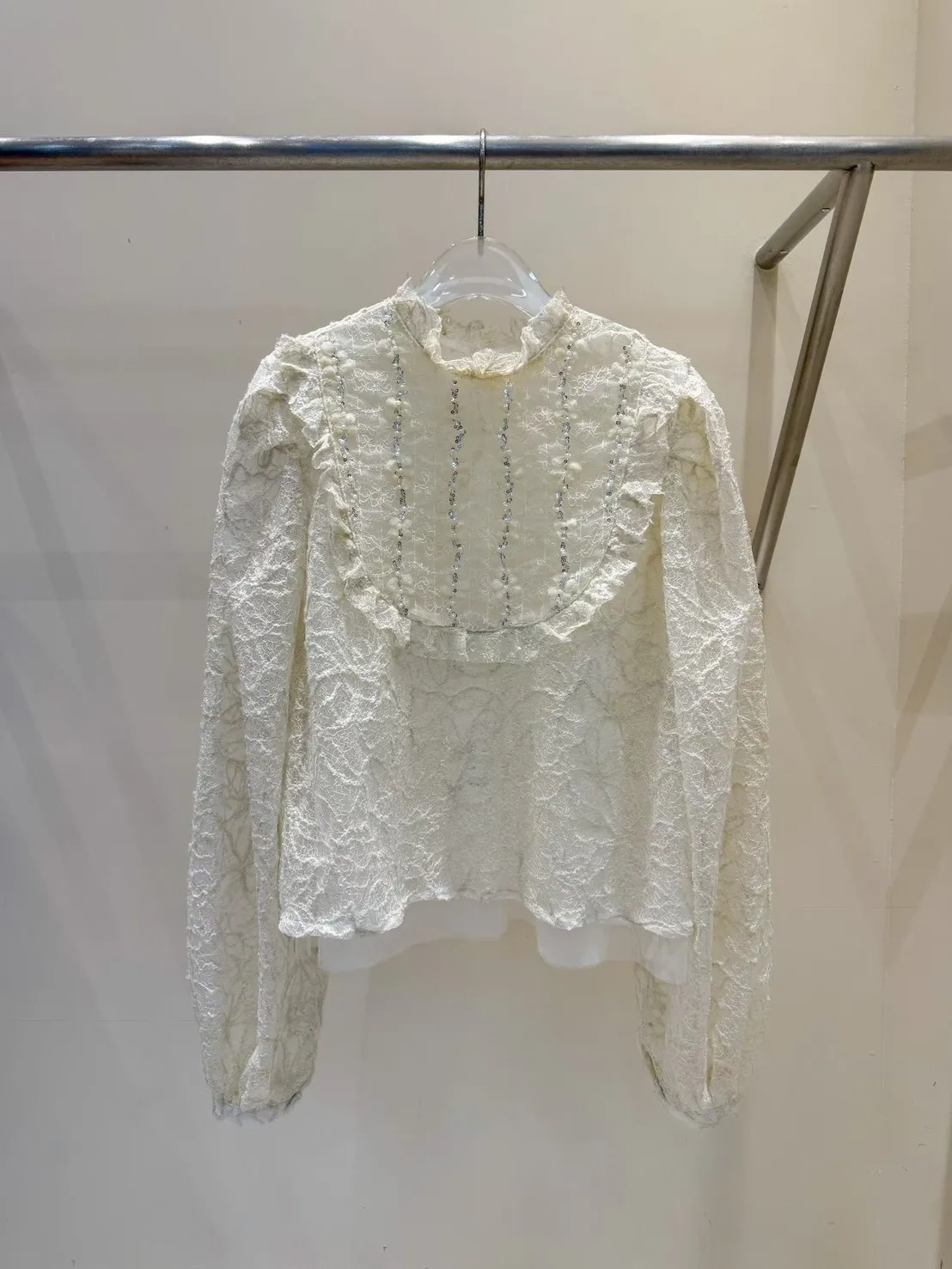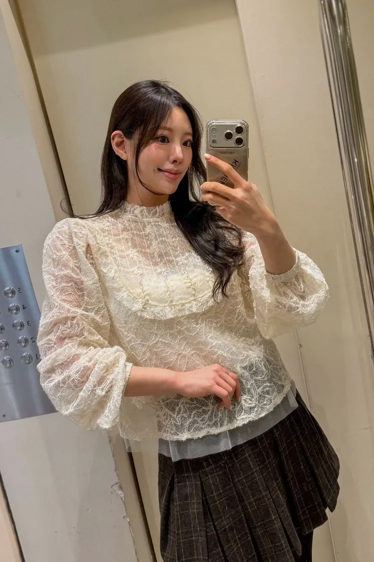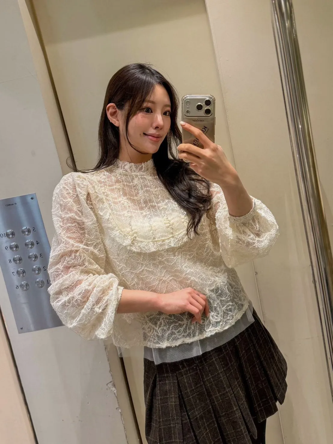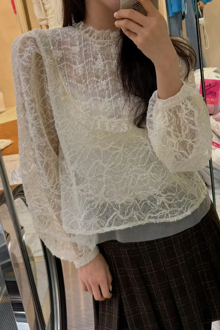 棉+聚酯 薄款透光 細緻紋理 網紗立體小花 細閃珍珠亮片