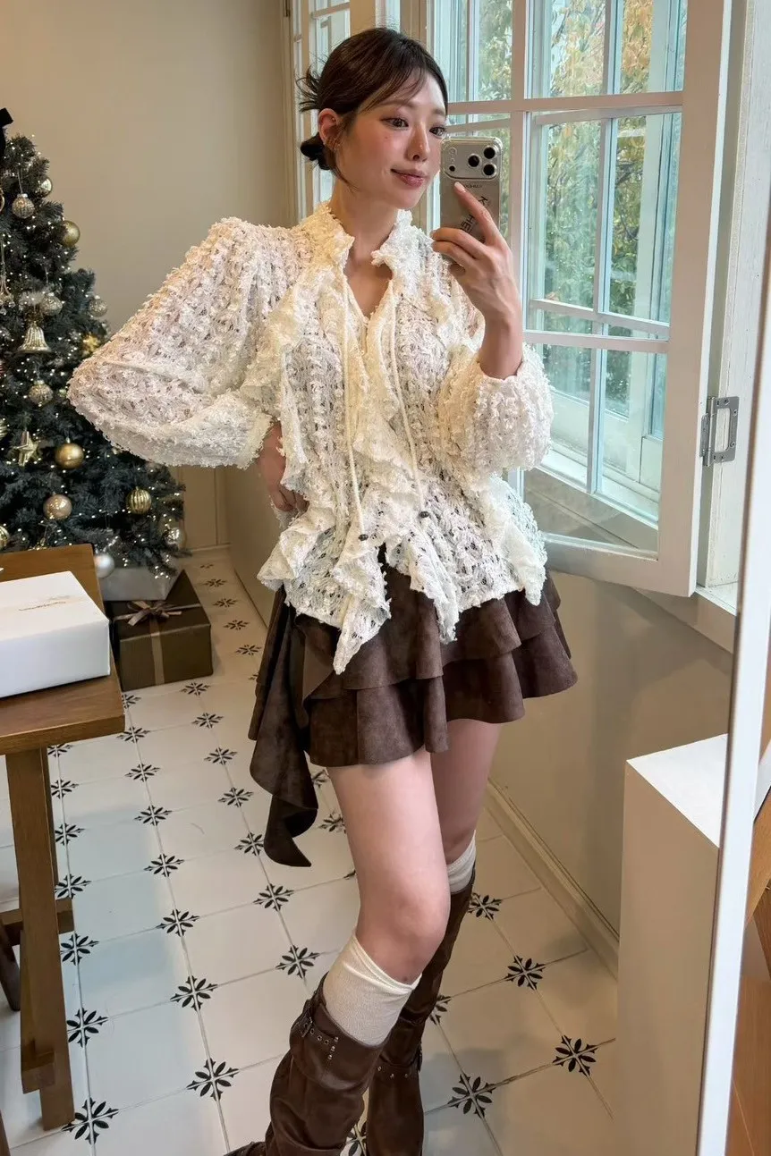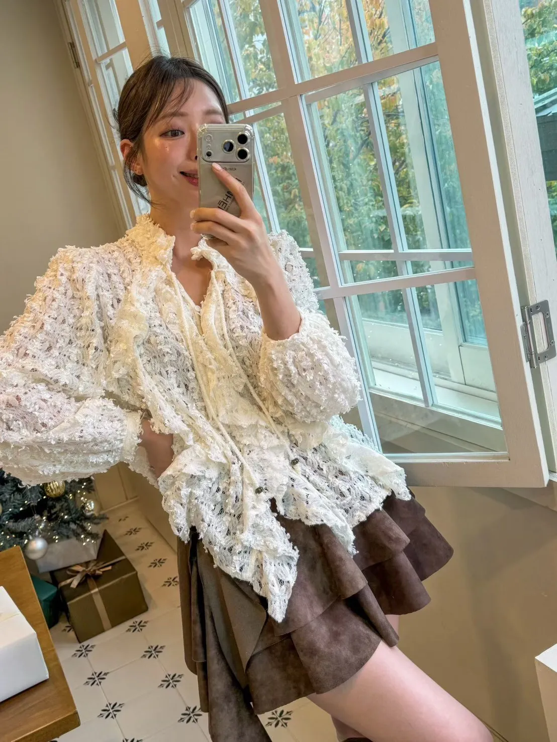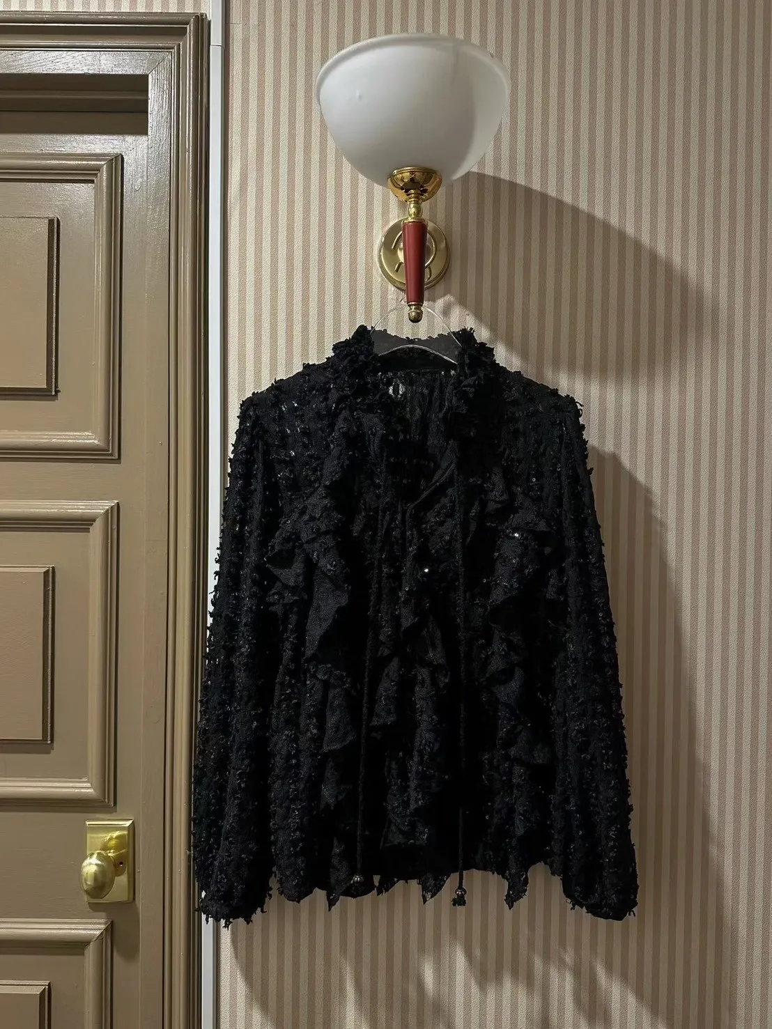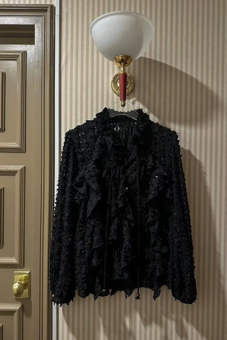 聚酯 柔軟不刺癢 胸前綁帶 垂墜美荷葉 鑲嵌系閃亮片 排釦穿脫