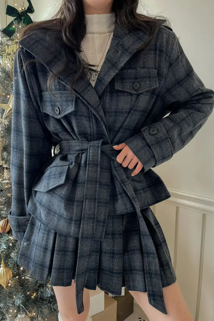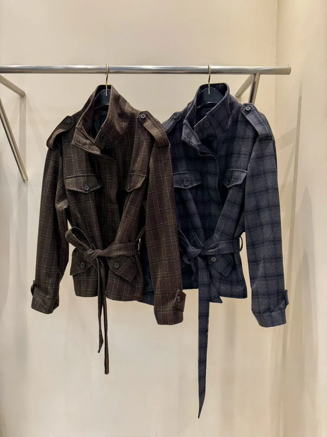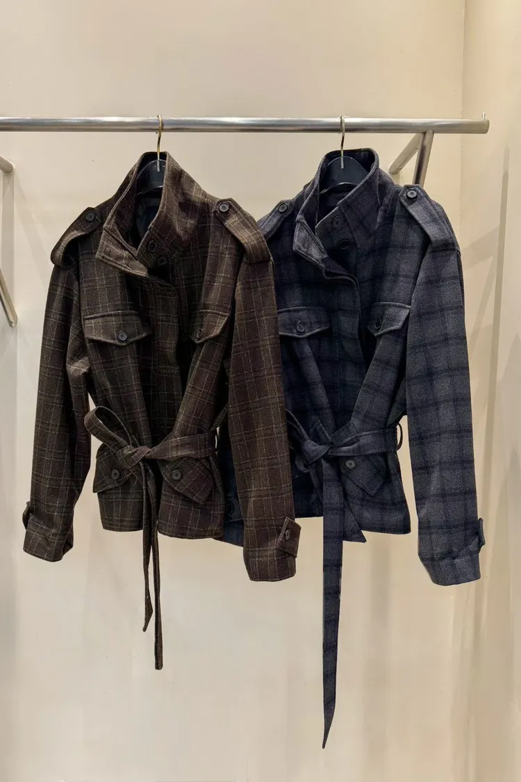 羊毛50% 附腰帶 立領雙釦 舒適度佳 有口袋 有內裡