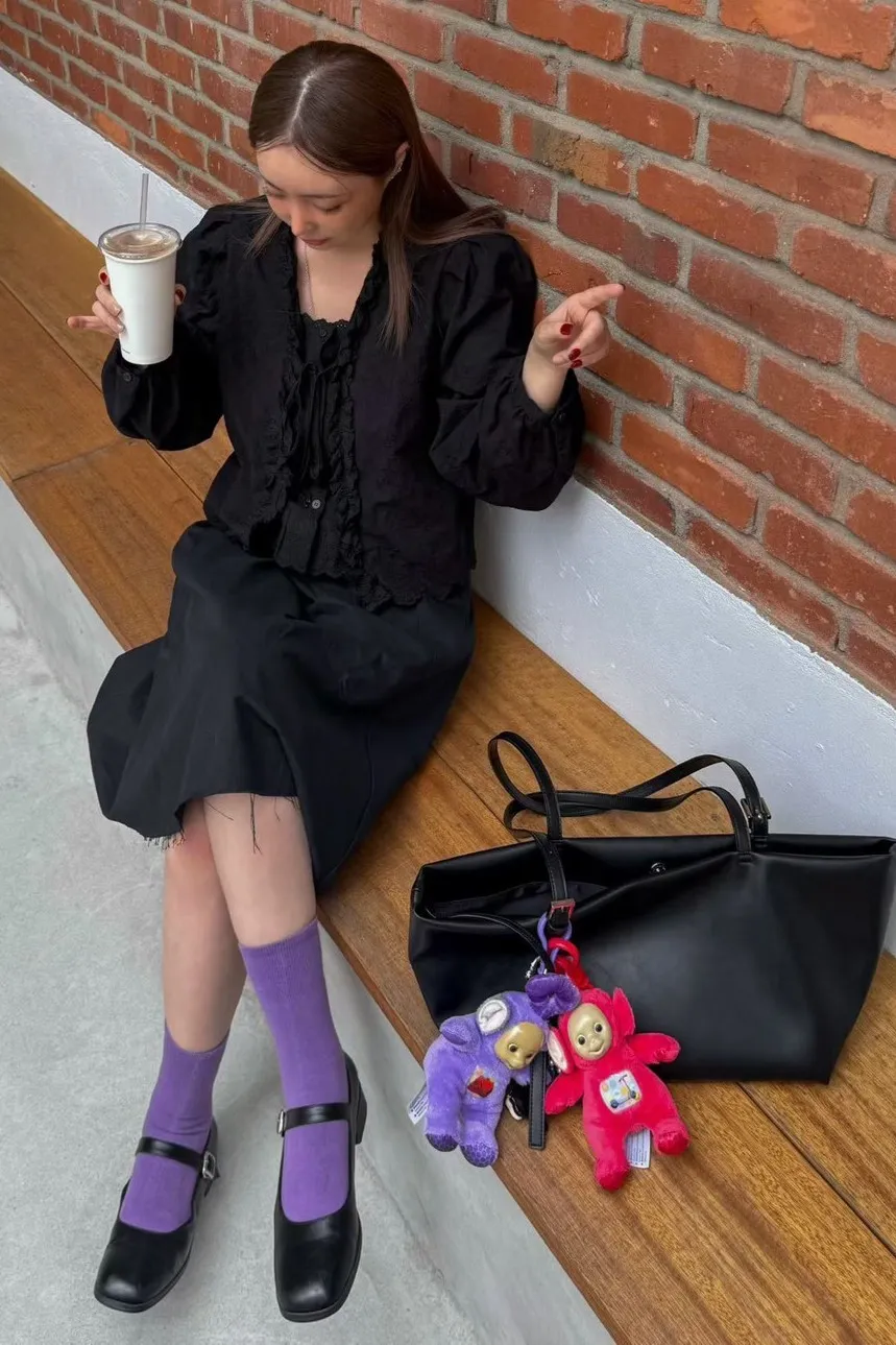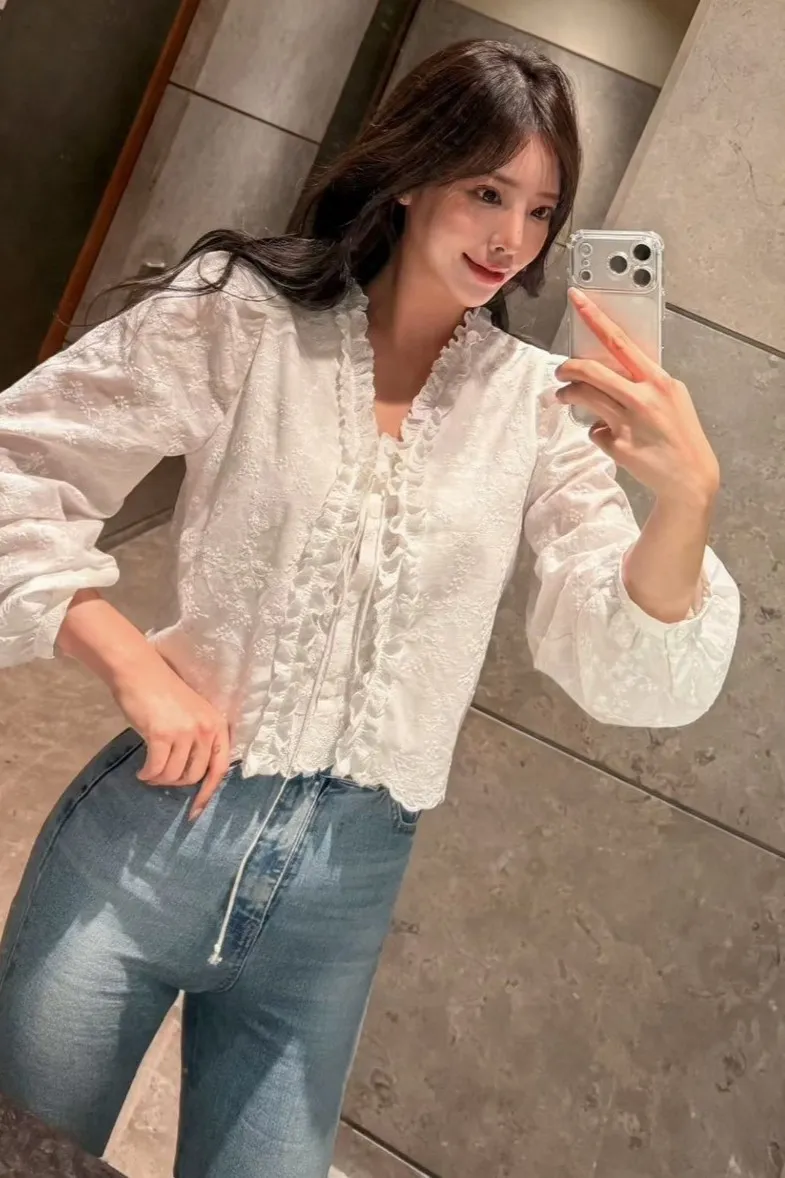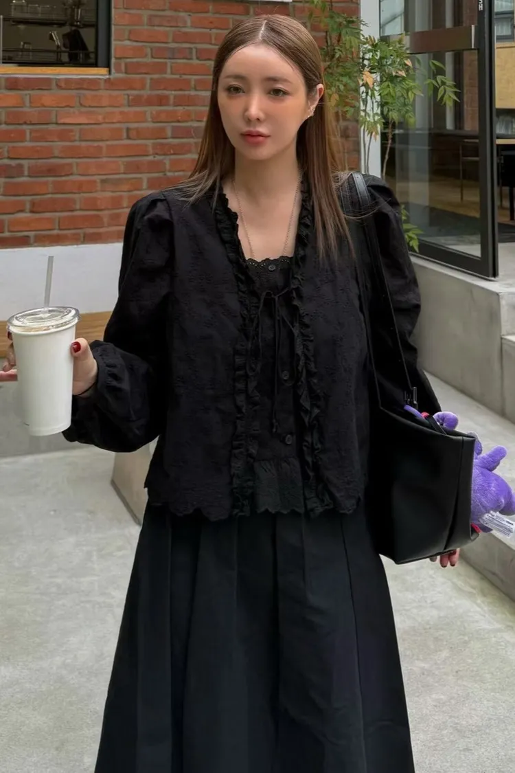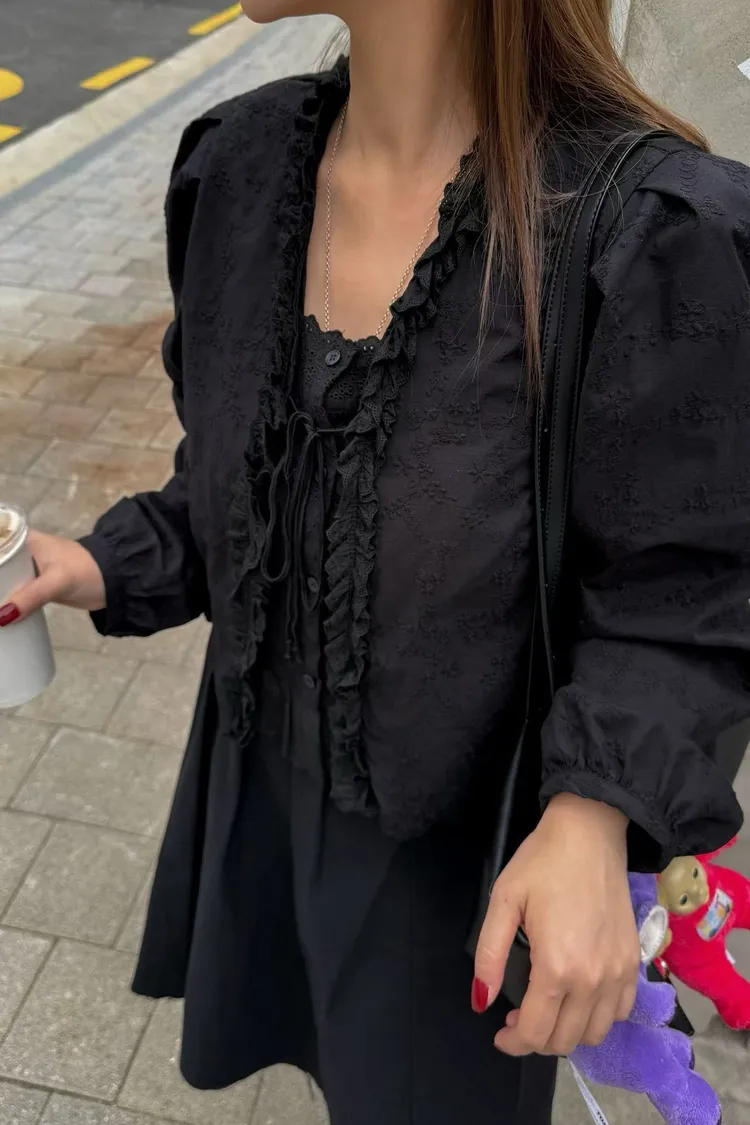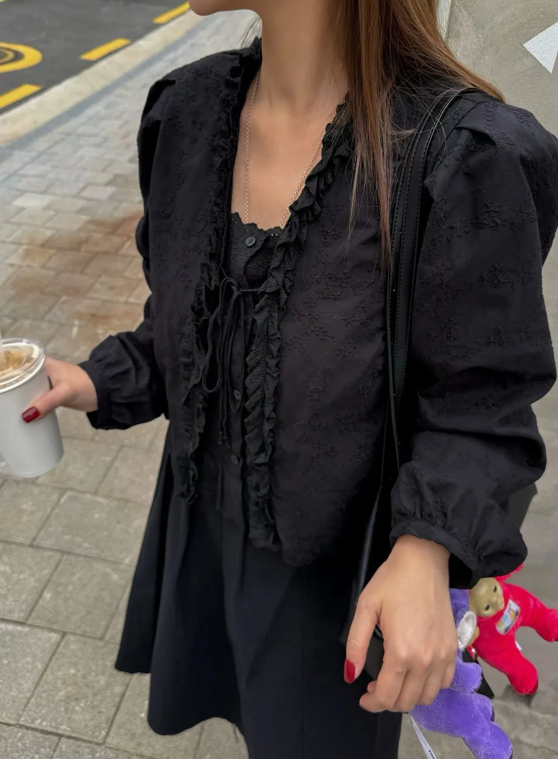 棉 微墊肩 雙層面料 胸綁帶 罩衫款外套上衣