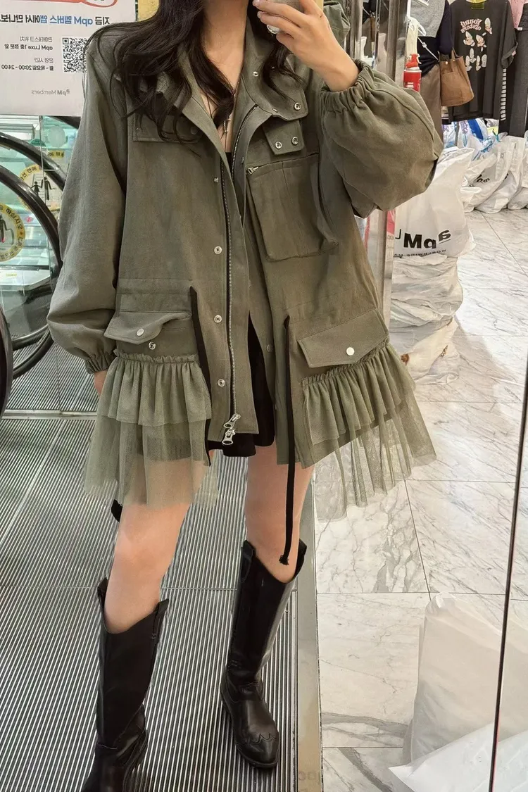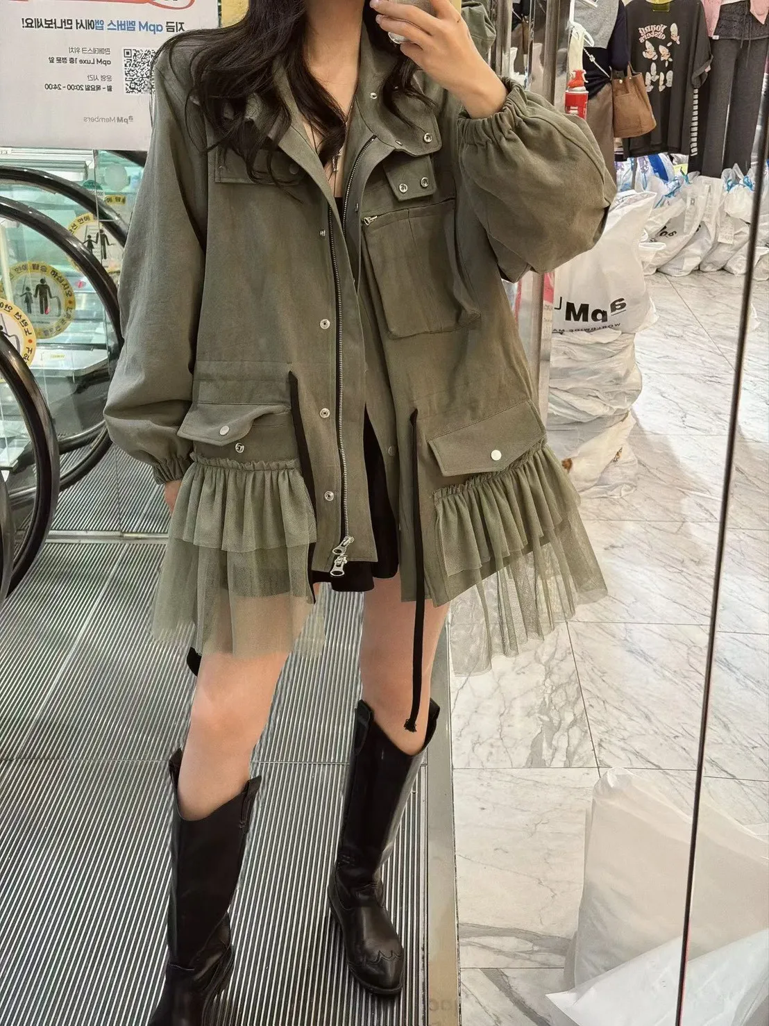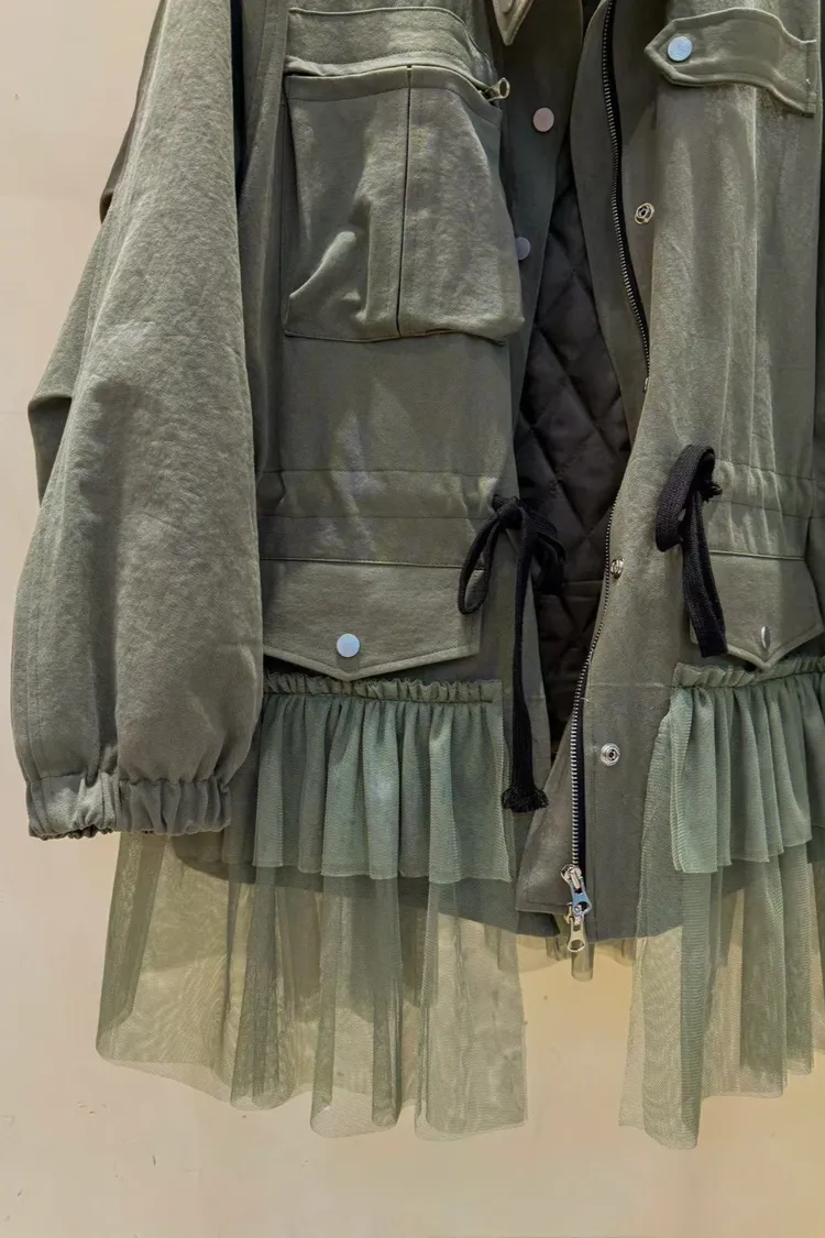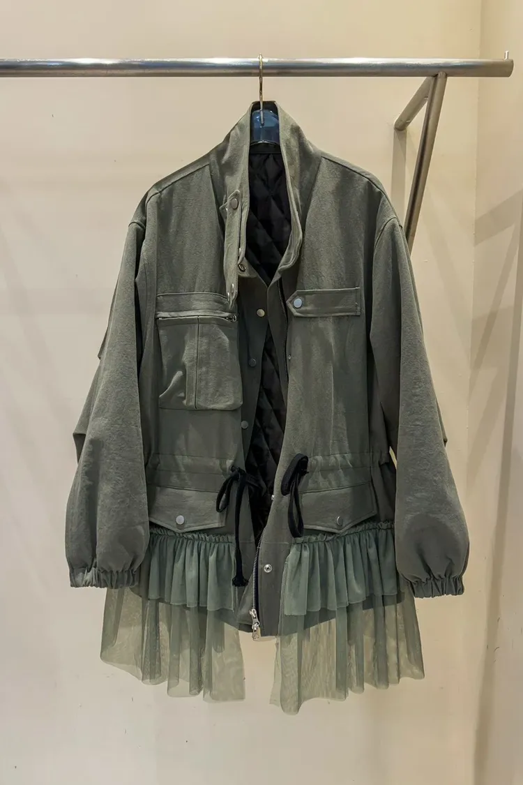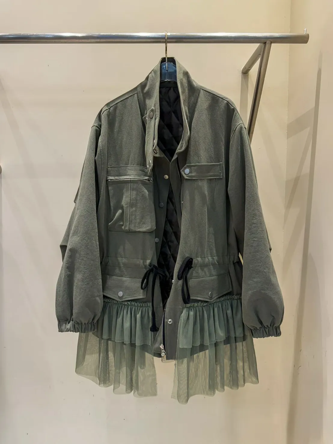棉+蕾絲,拉鍊穿脫 下擺網紗 內裡鋪棉 挺度棉 雙釦立領 XL友善