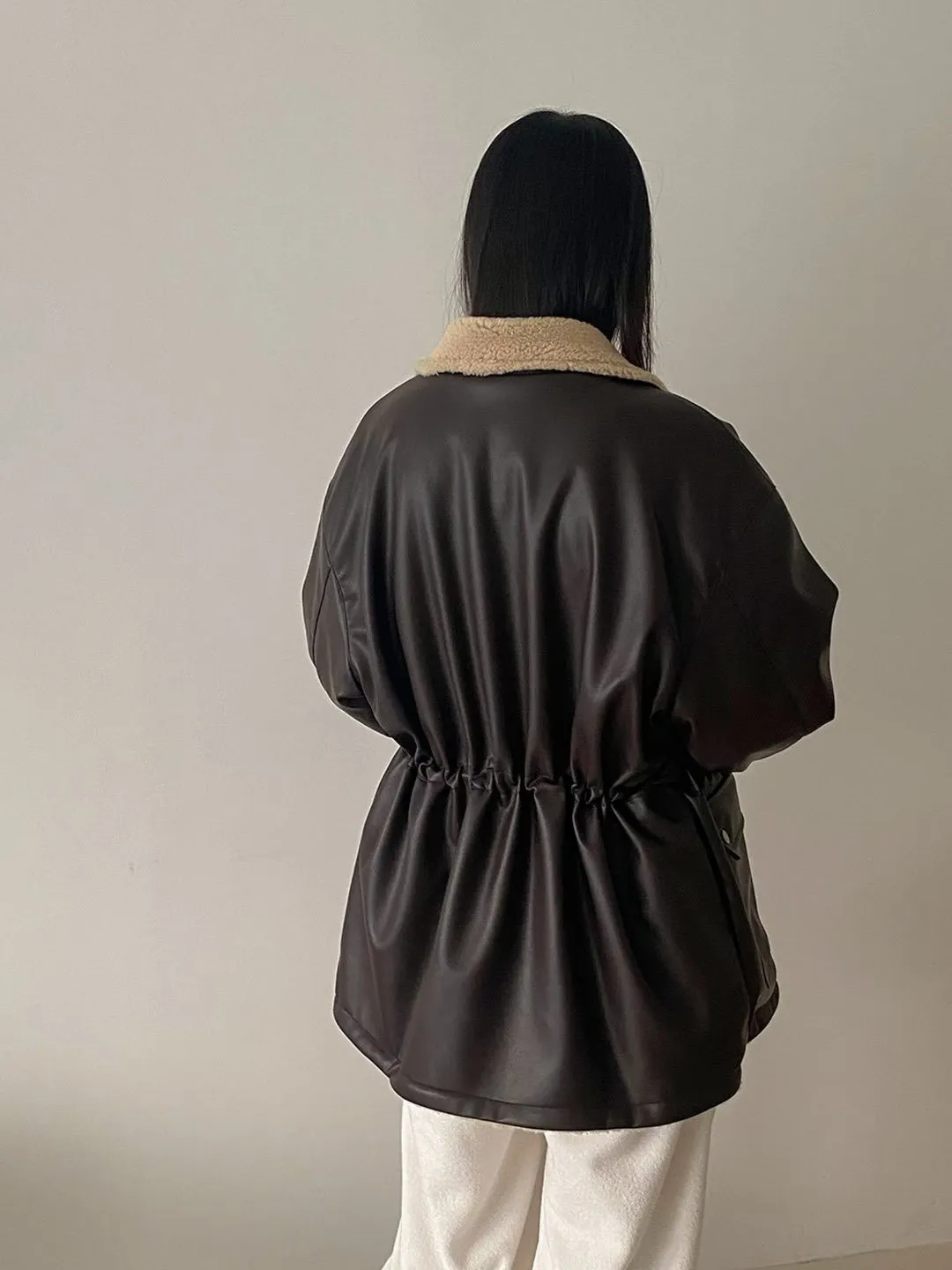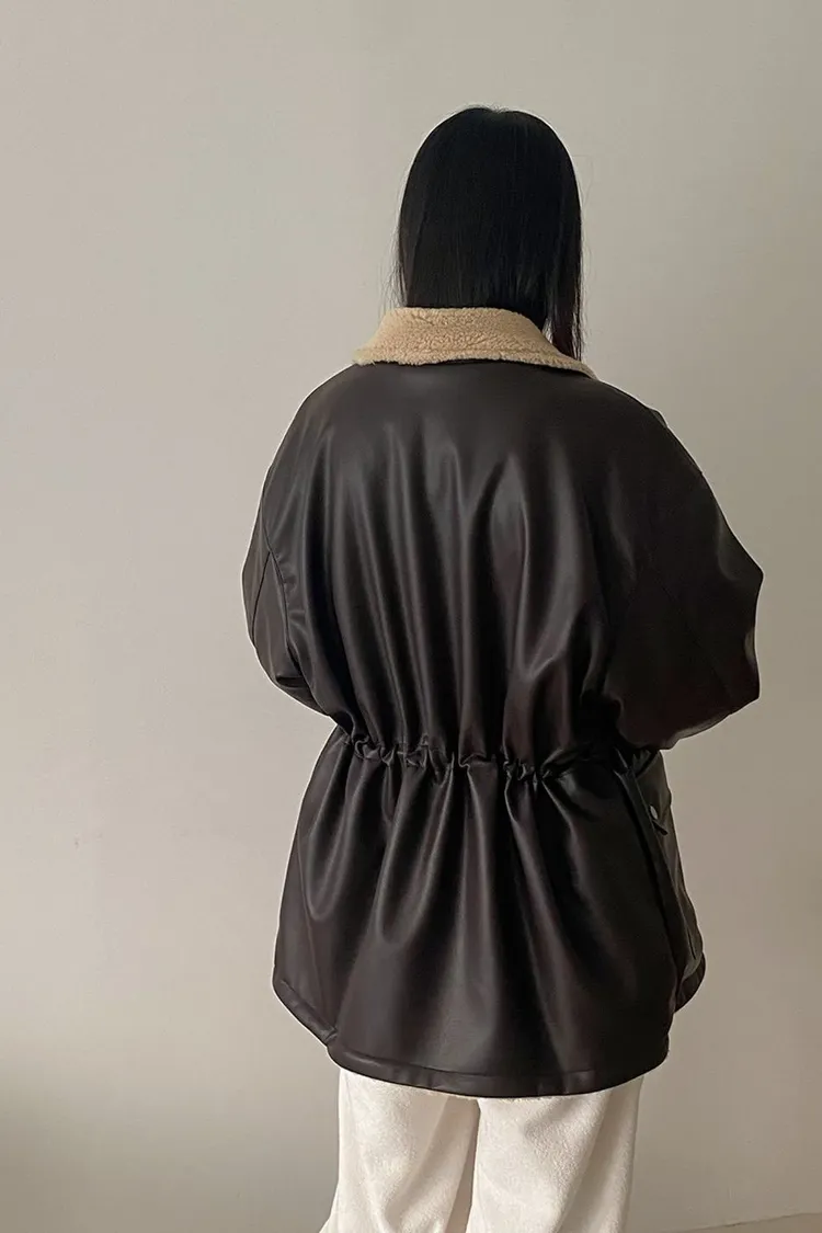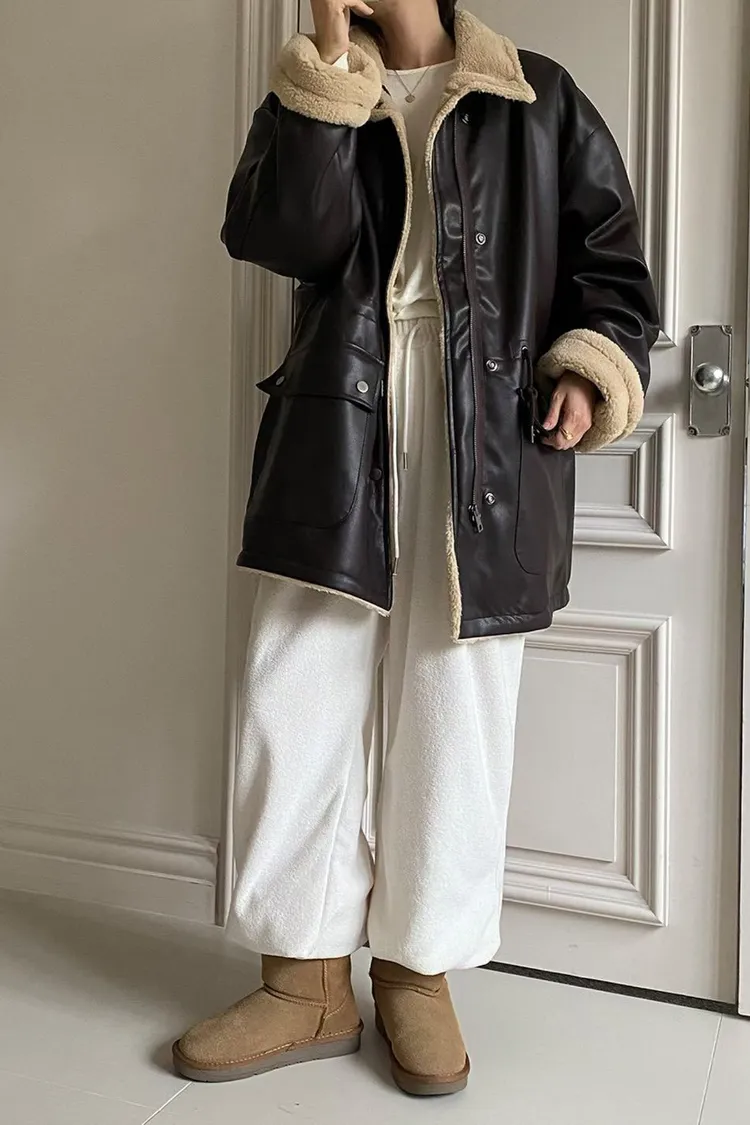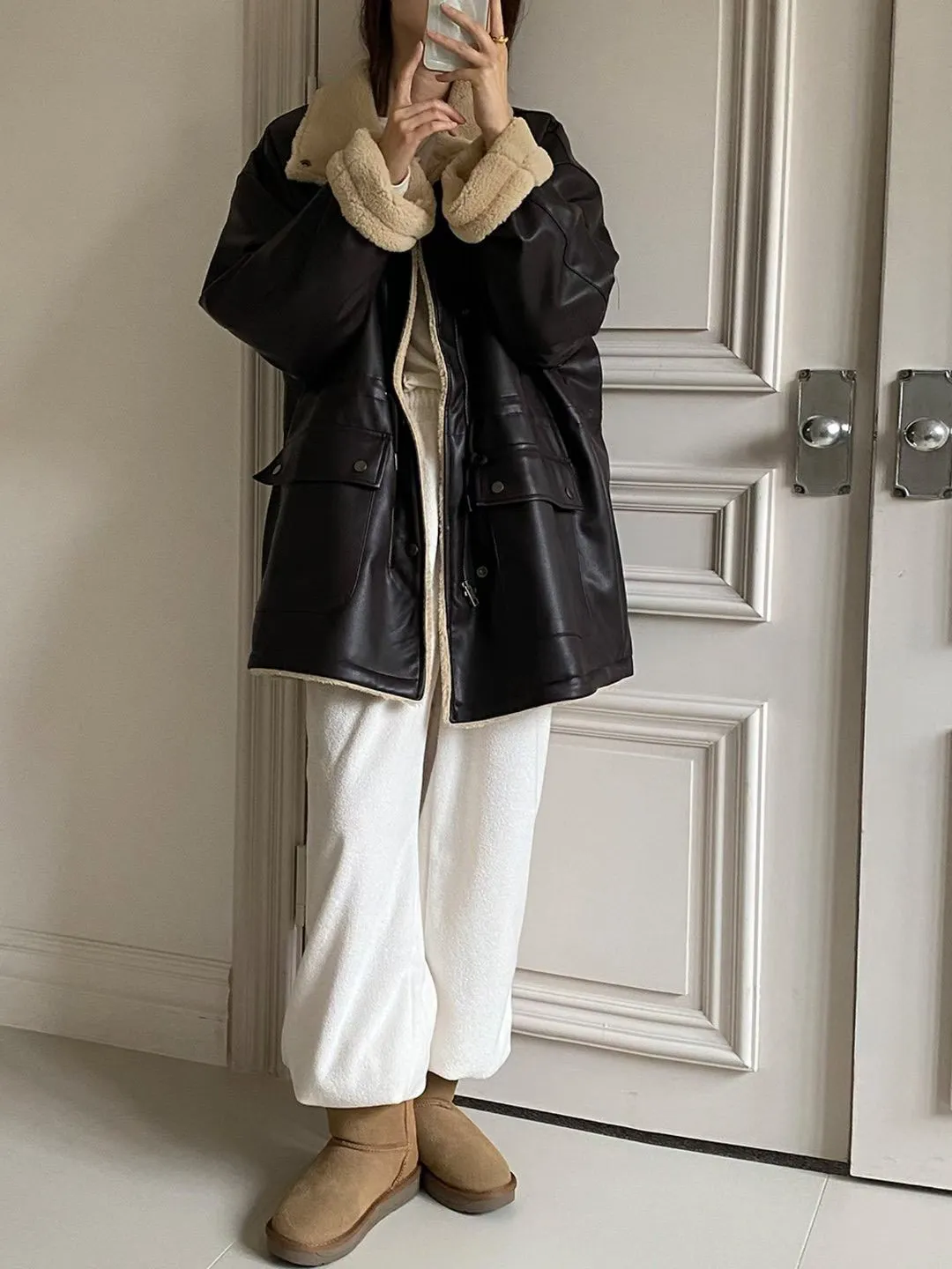 合成皮革 柔軟皮革 細腰抽繩 有口袋 內襯羊羔毛 1.5公斤