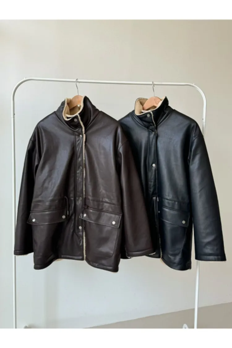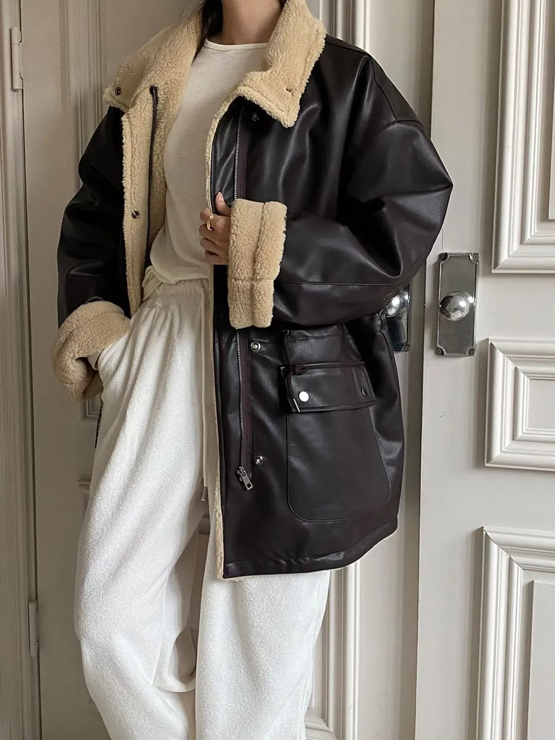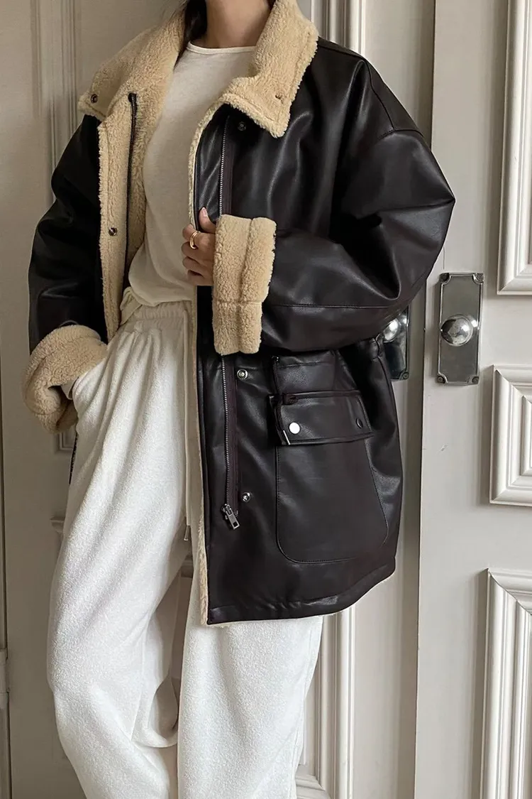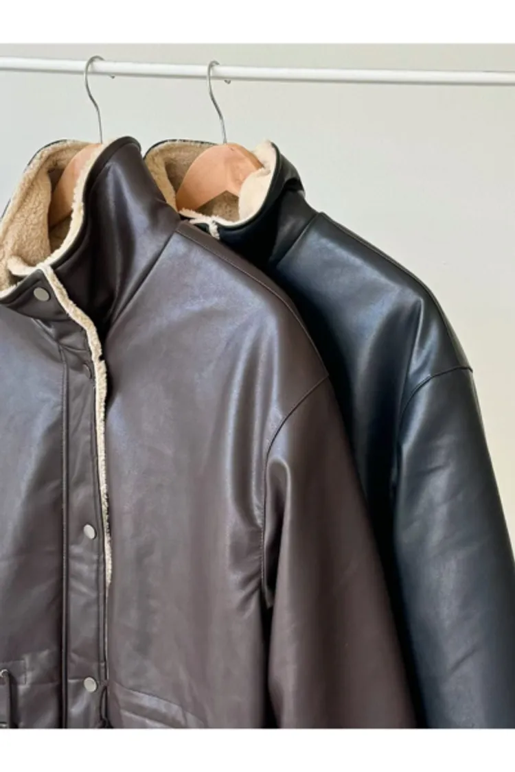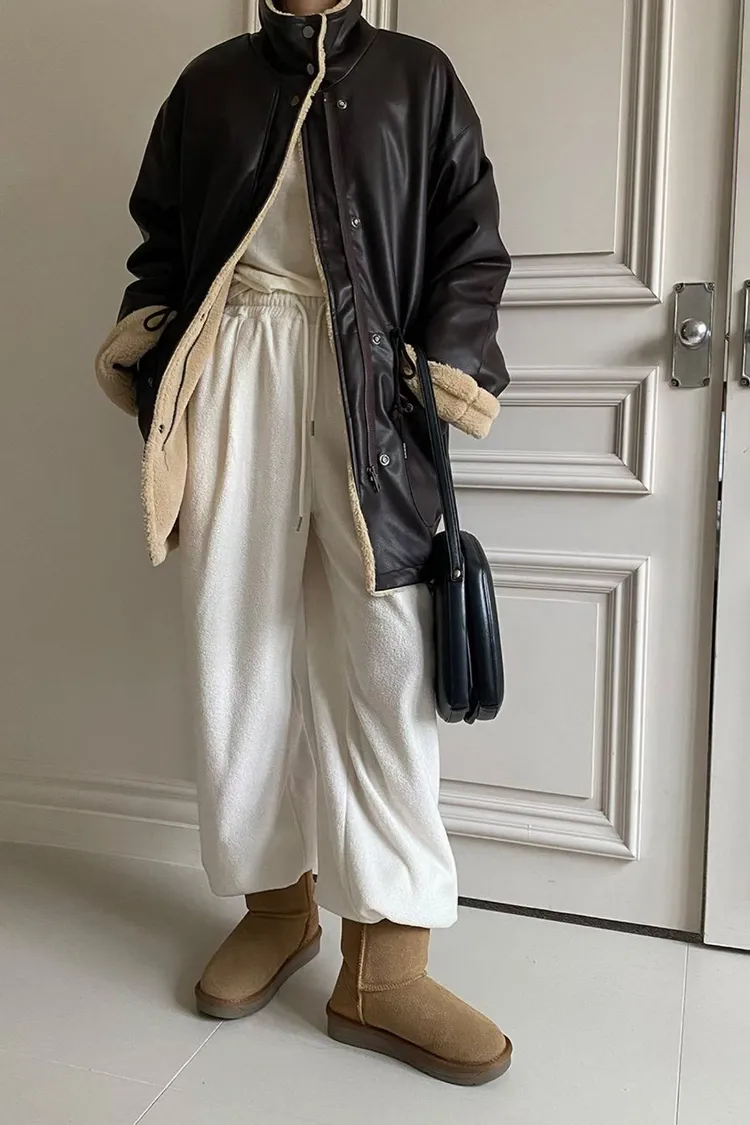 合成皮革 柔軟皮革 細腰抽繩 有口袋 內襯羊羔毛 1.5公斤