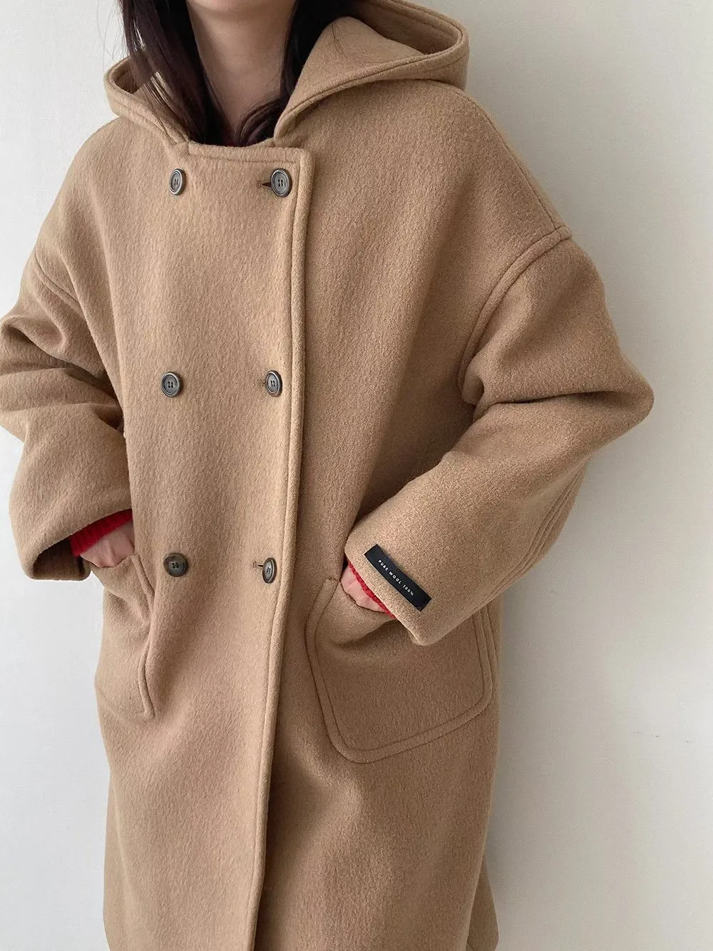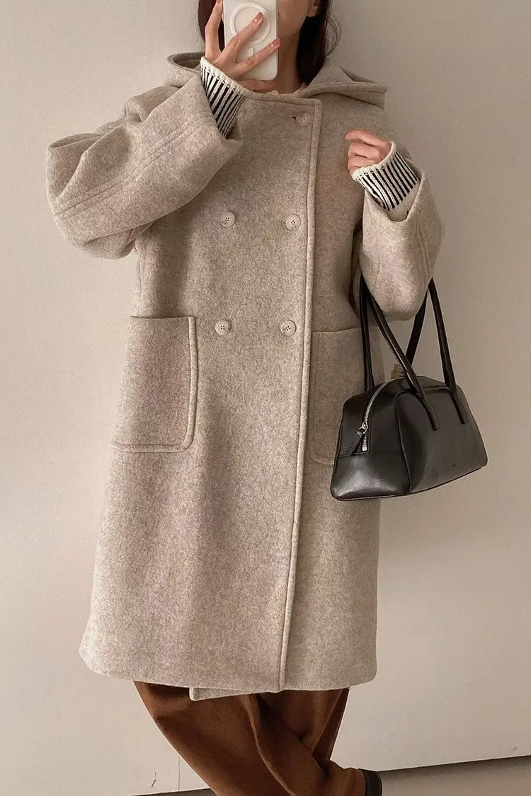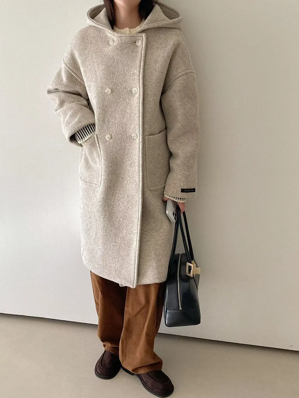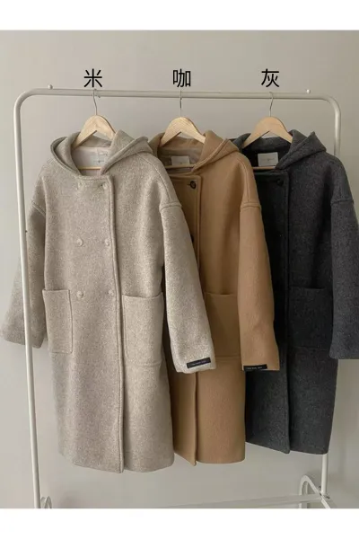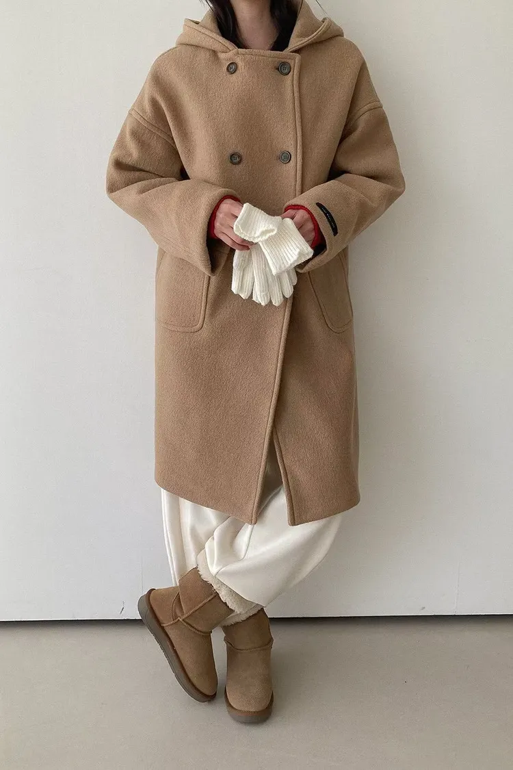 羊毛100% 雙排釦 大口袋 連帽設計 有內裡 微乾觸感 XL友善 1.6公斤