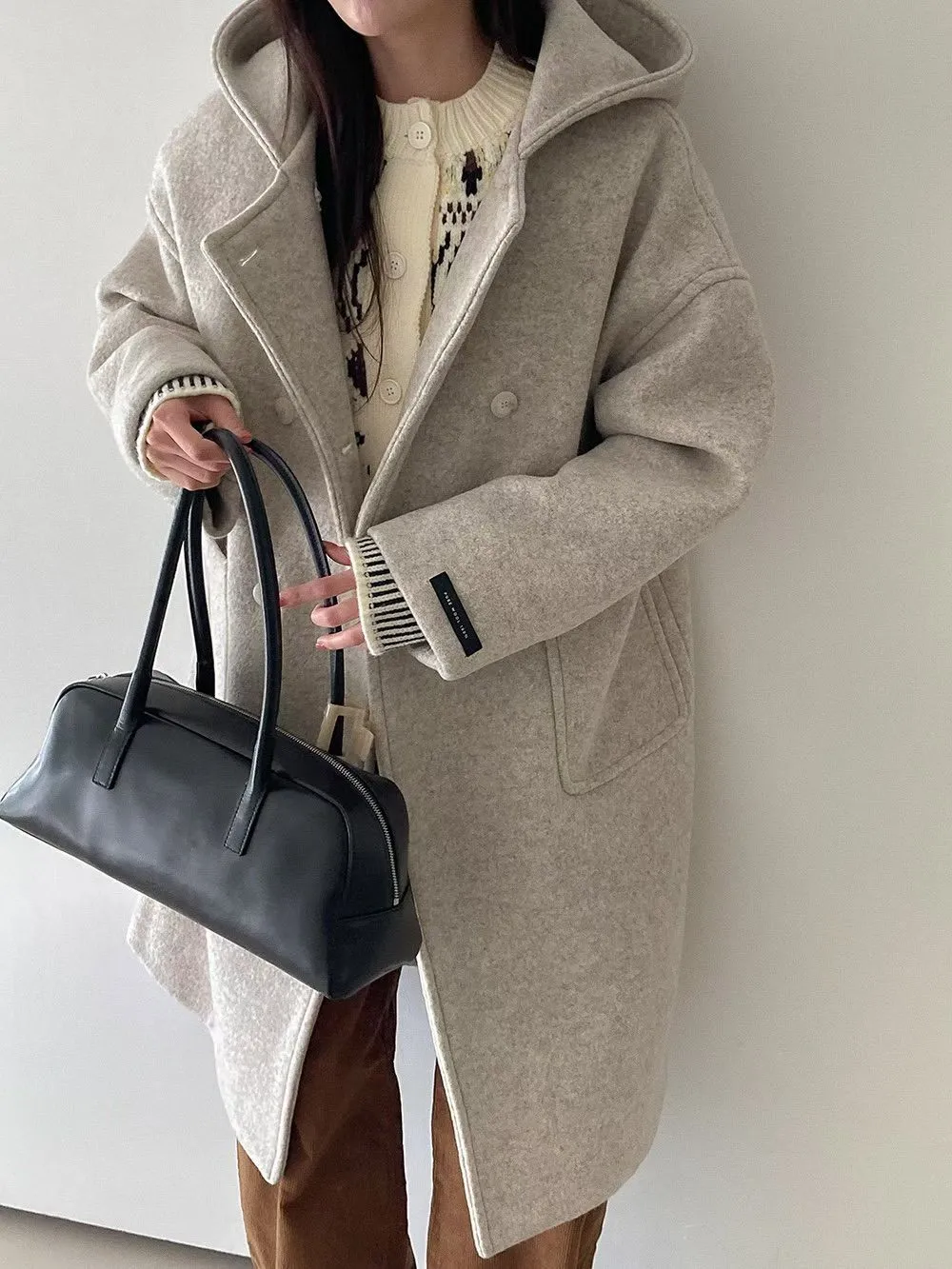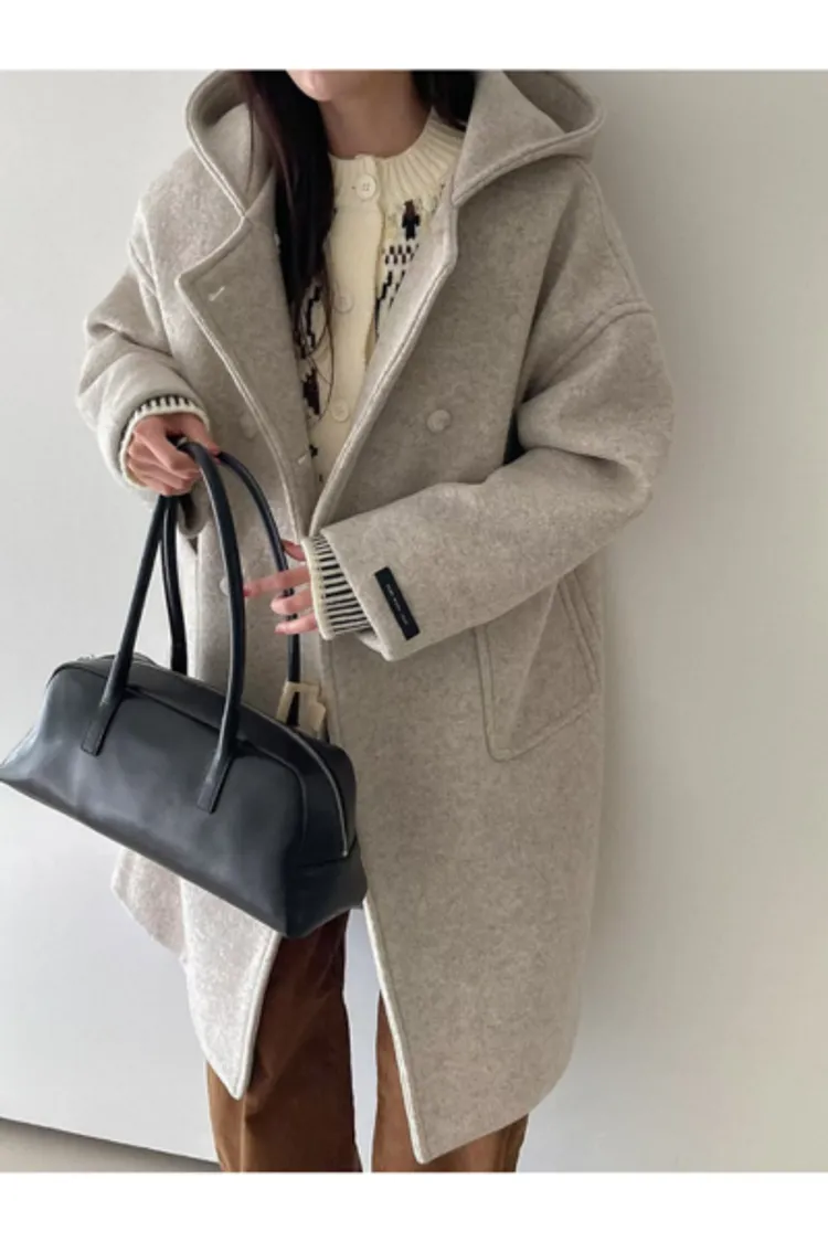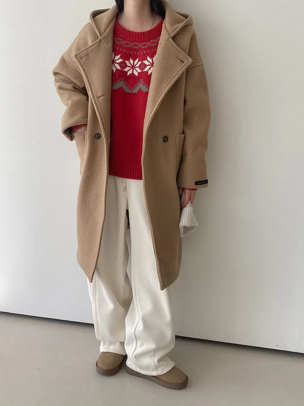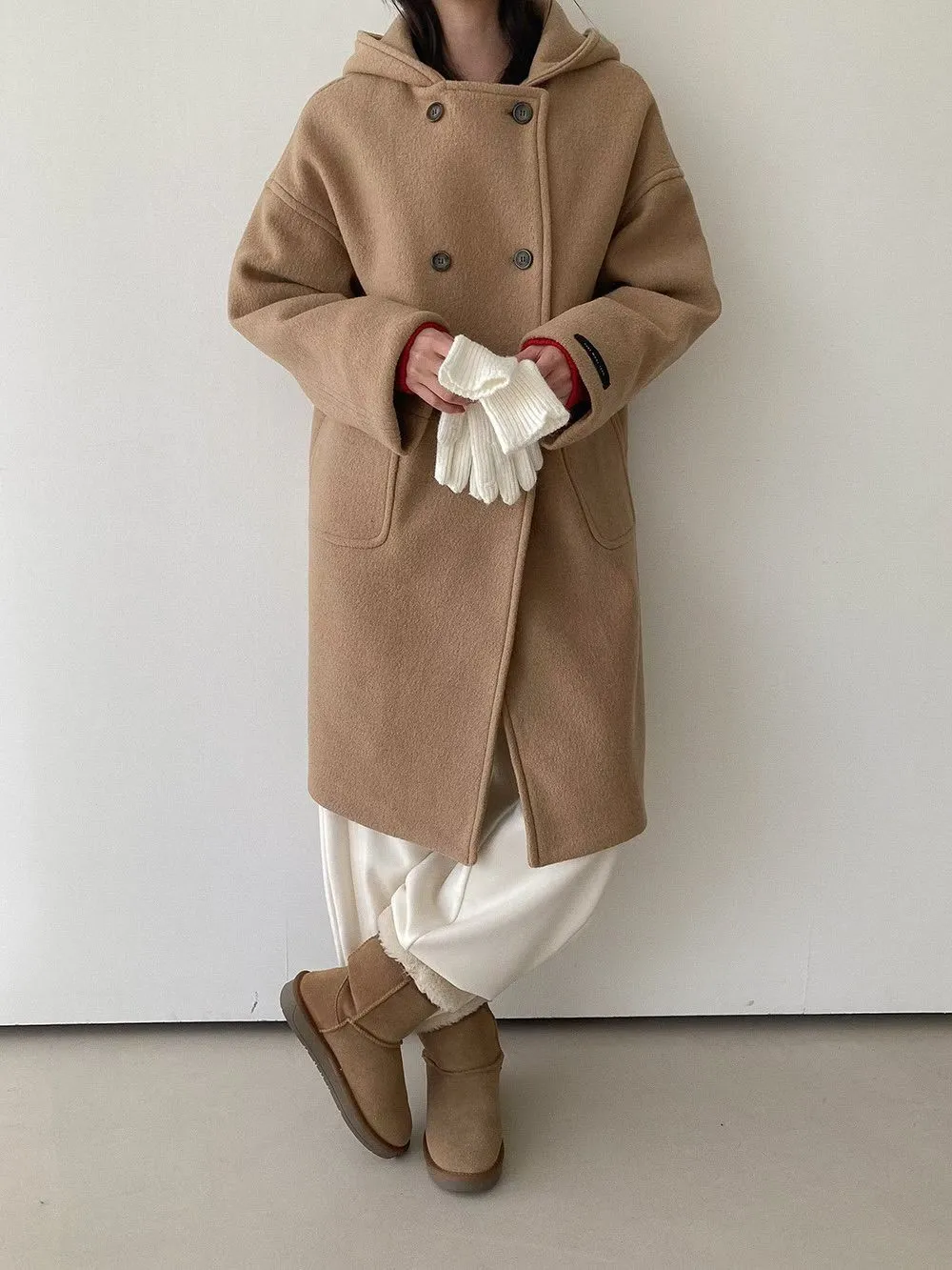 羊毛100% 雙排釦 大口袋 連帽設計 有內裡 微乾觸感 XL友善 1.6公斤