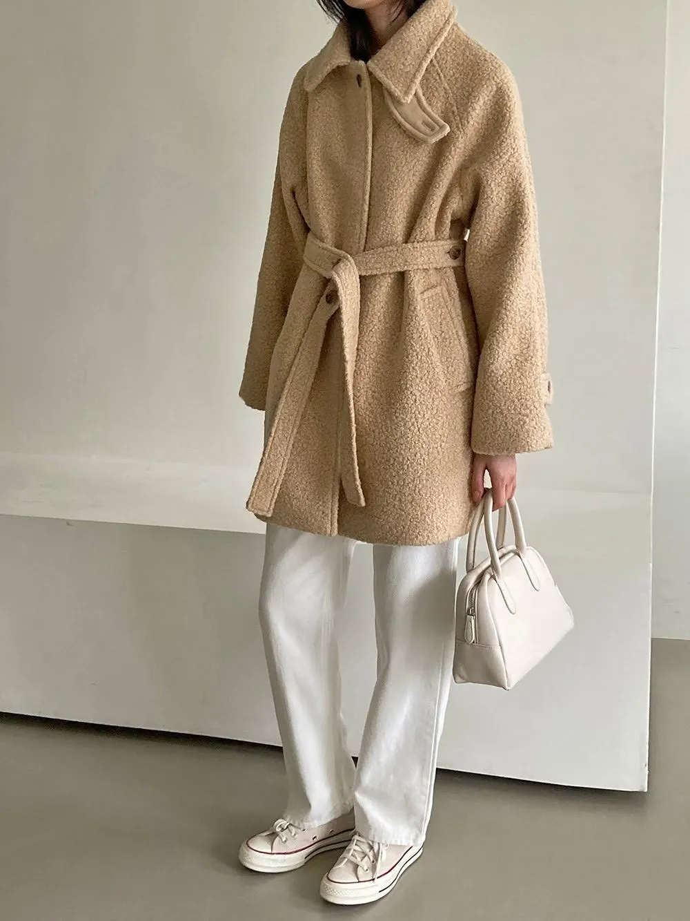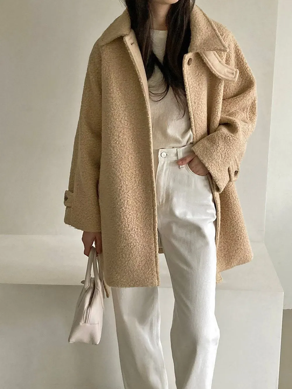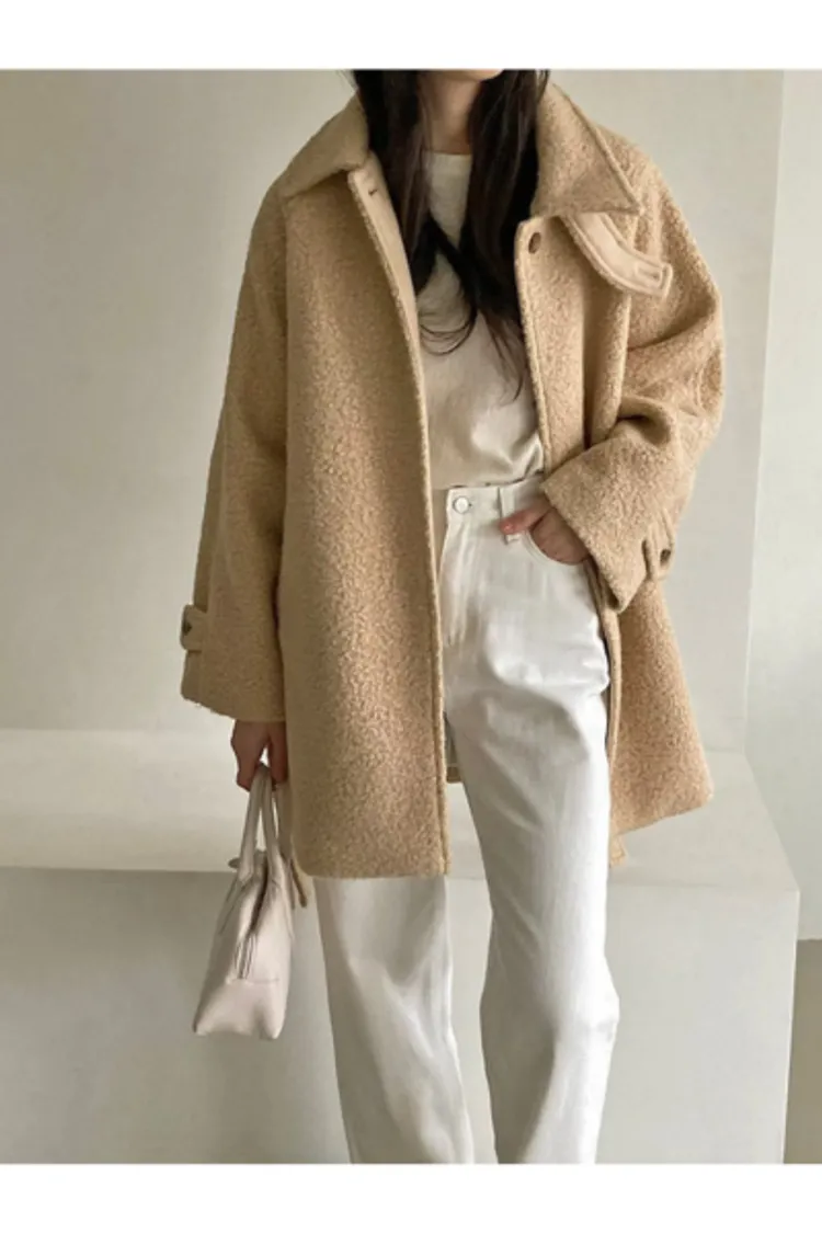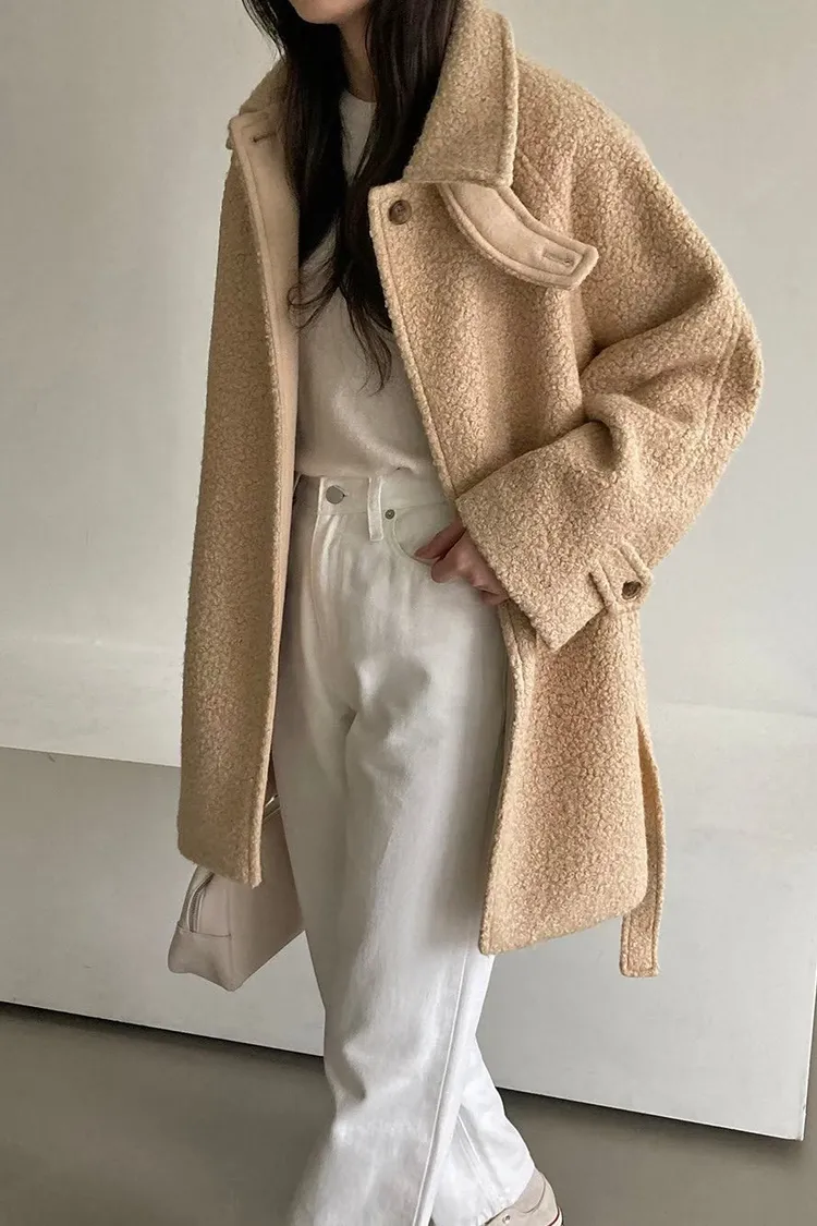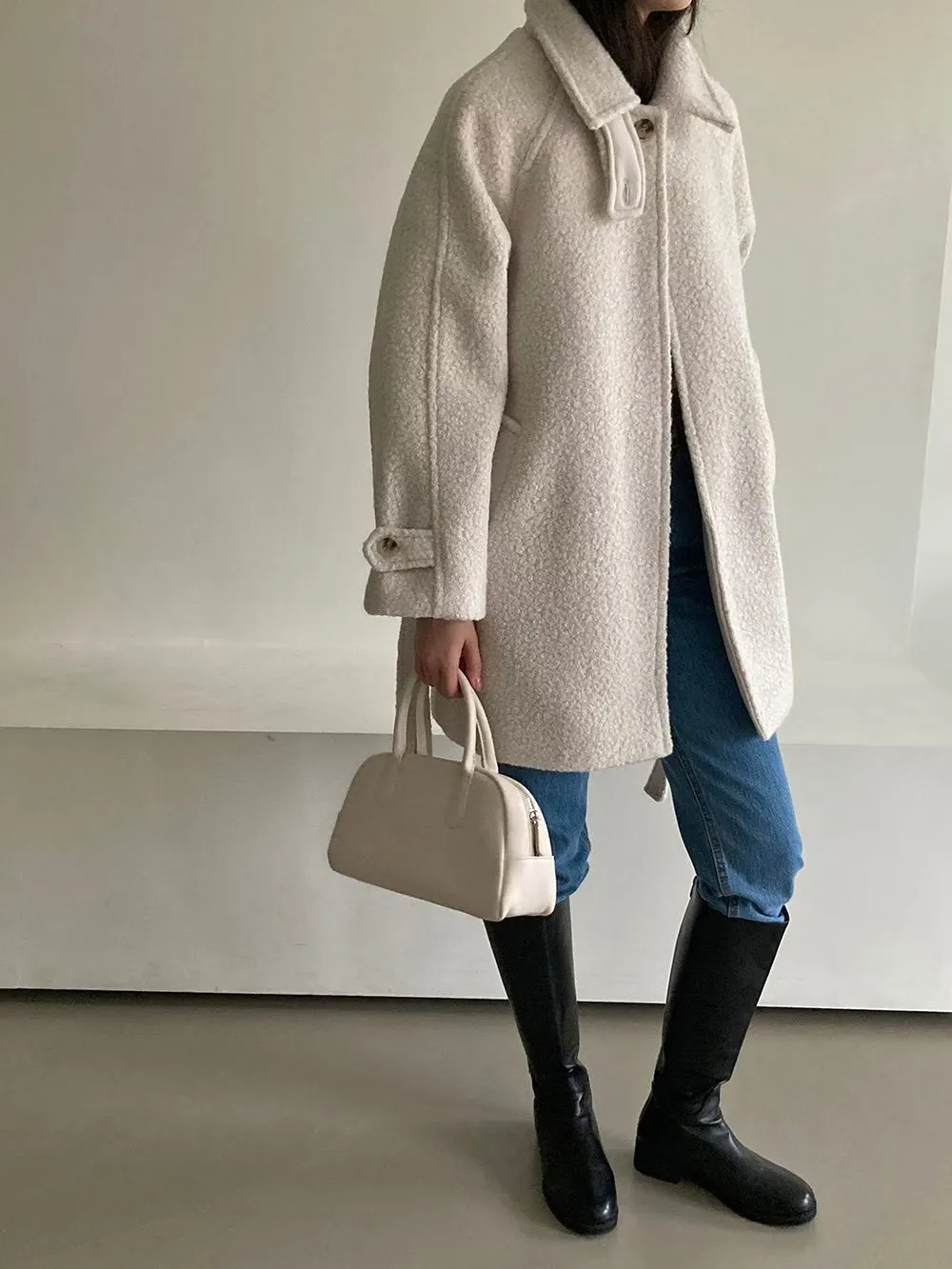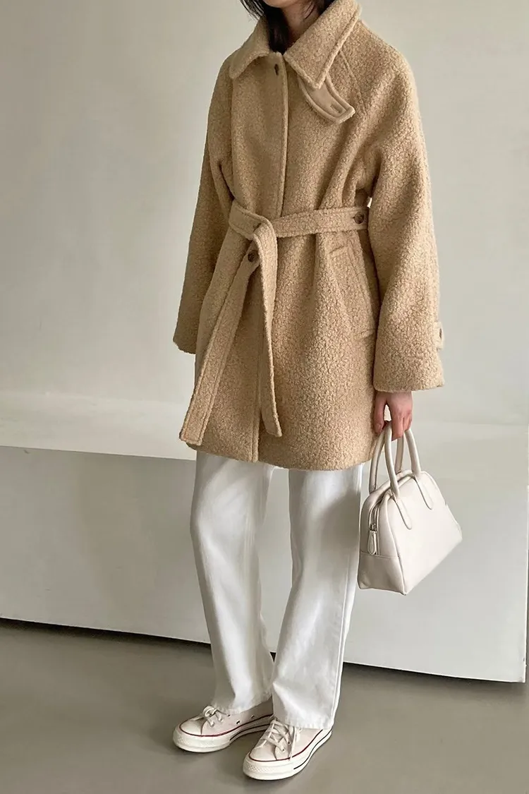 羊毛20%+鋪棉 潤髮羊羔毛 可立領 有口袋 尺寸友善 穿到M號 1.2公斤
