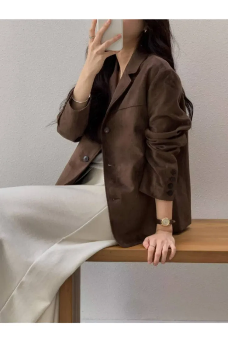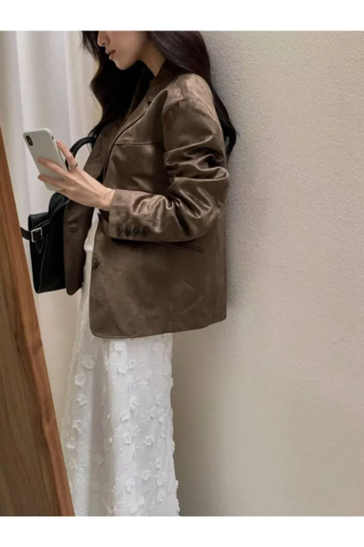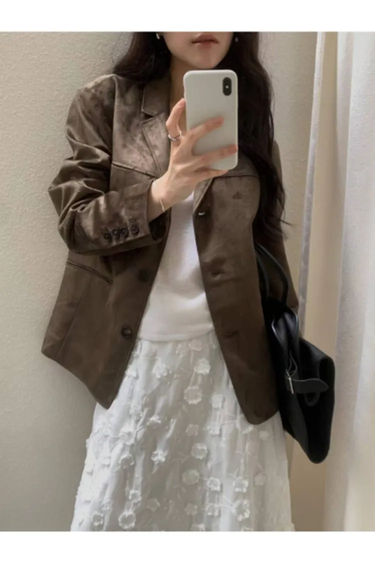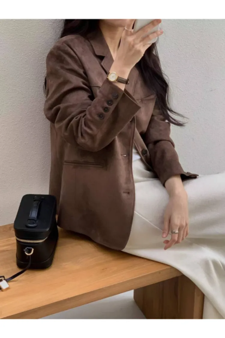 細軟仿麂皮 薄款面料 輕盈質地 有口袋有內裡有內袋
