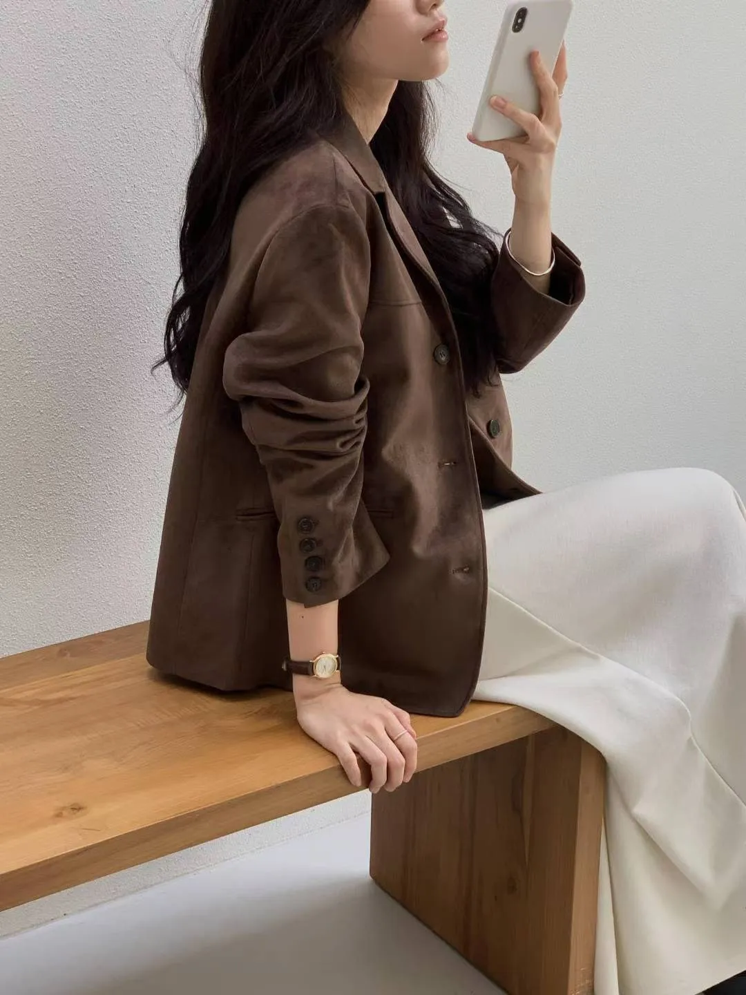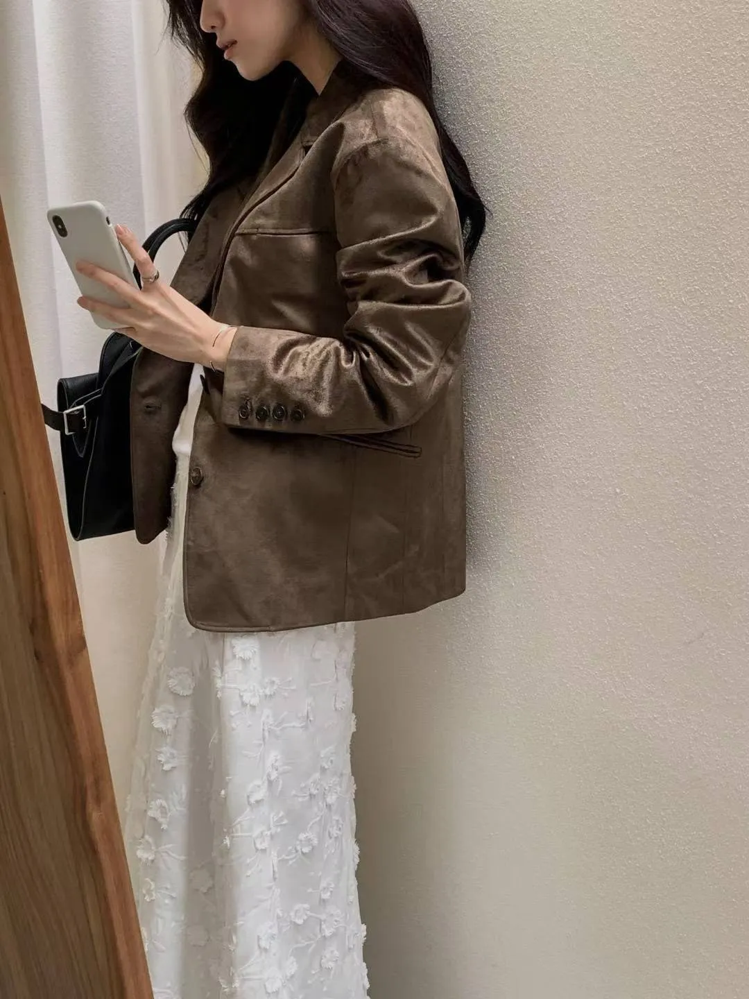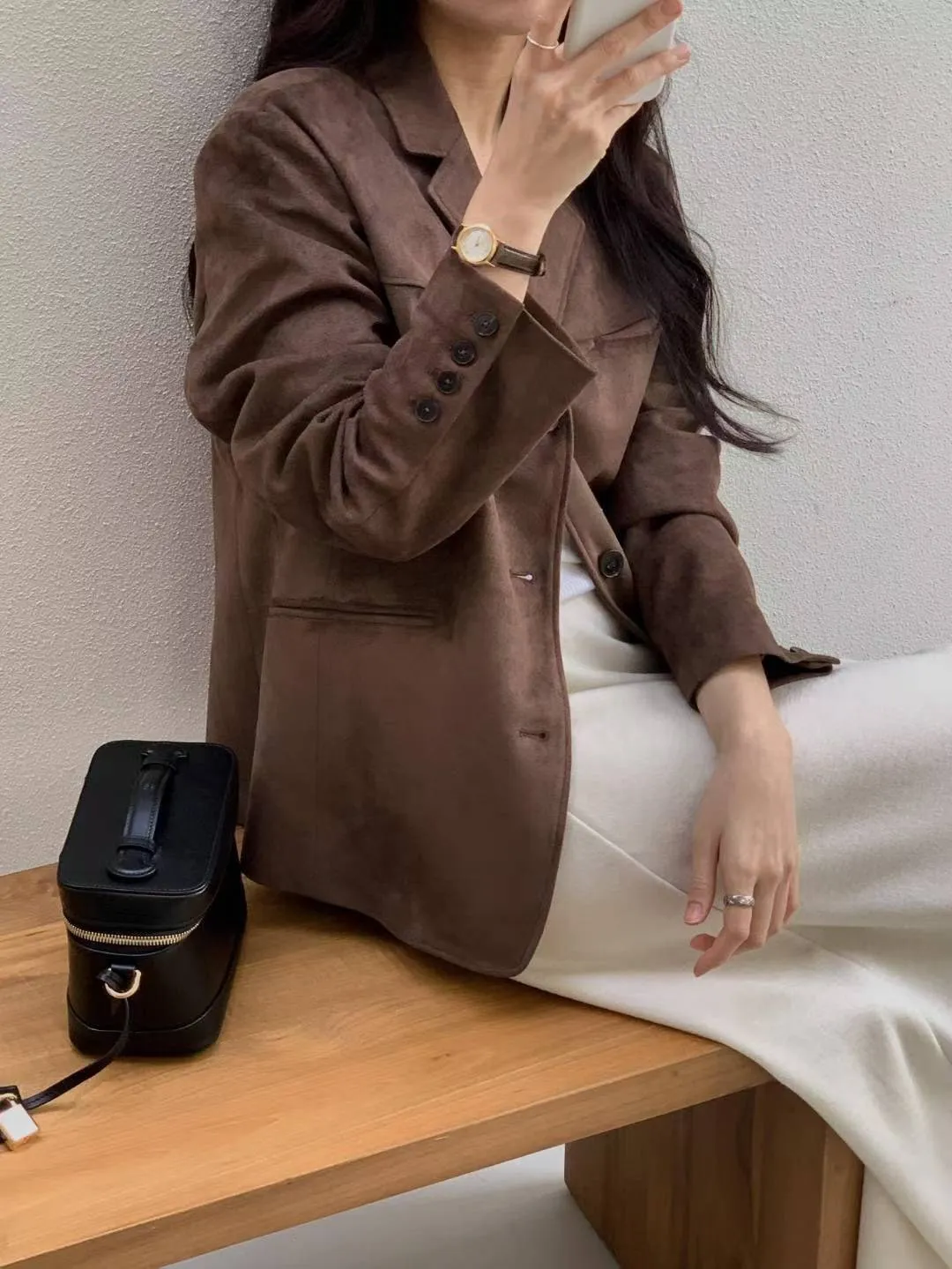 細軟仿麂皮 薄款面料 輕盈質地 有口袋有內裡有內袋