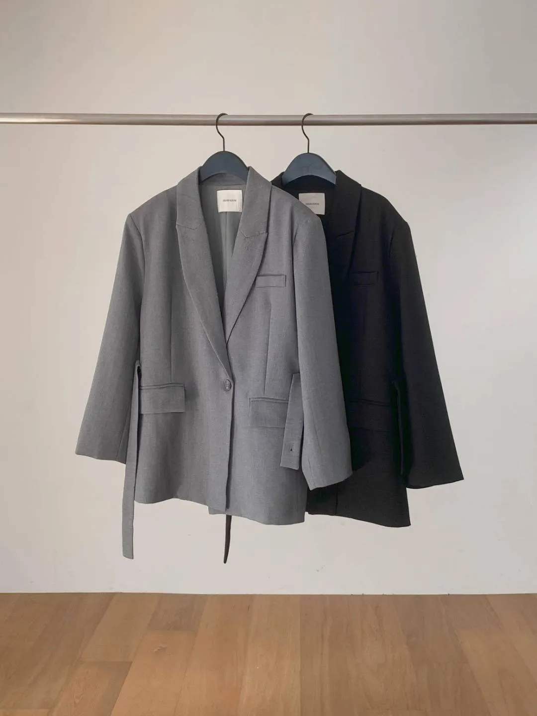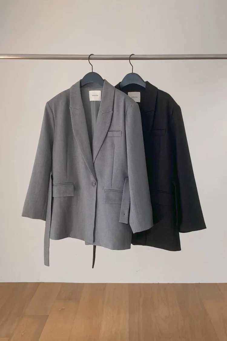 聚酯+縲縈+彈力 寬鬆舒適 腰帶有釦固定 單釦穿脫 有內裡 無墊肩