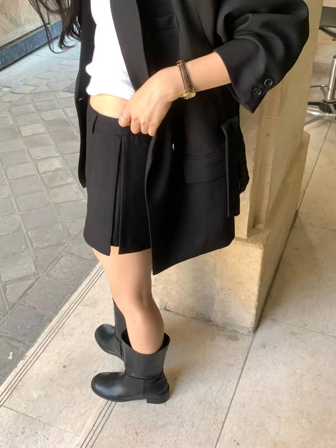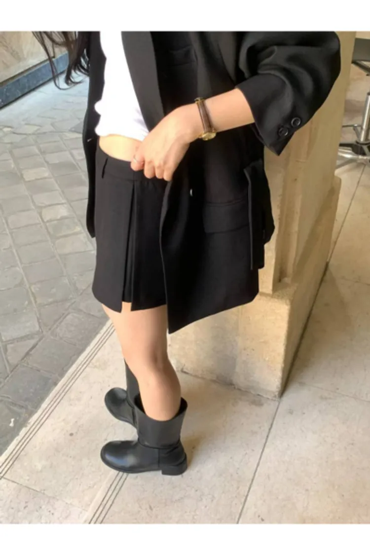 聚酯+縲縈+彈力 側開叉 正反看都是裙子 是褲裙