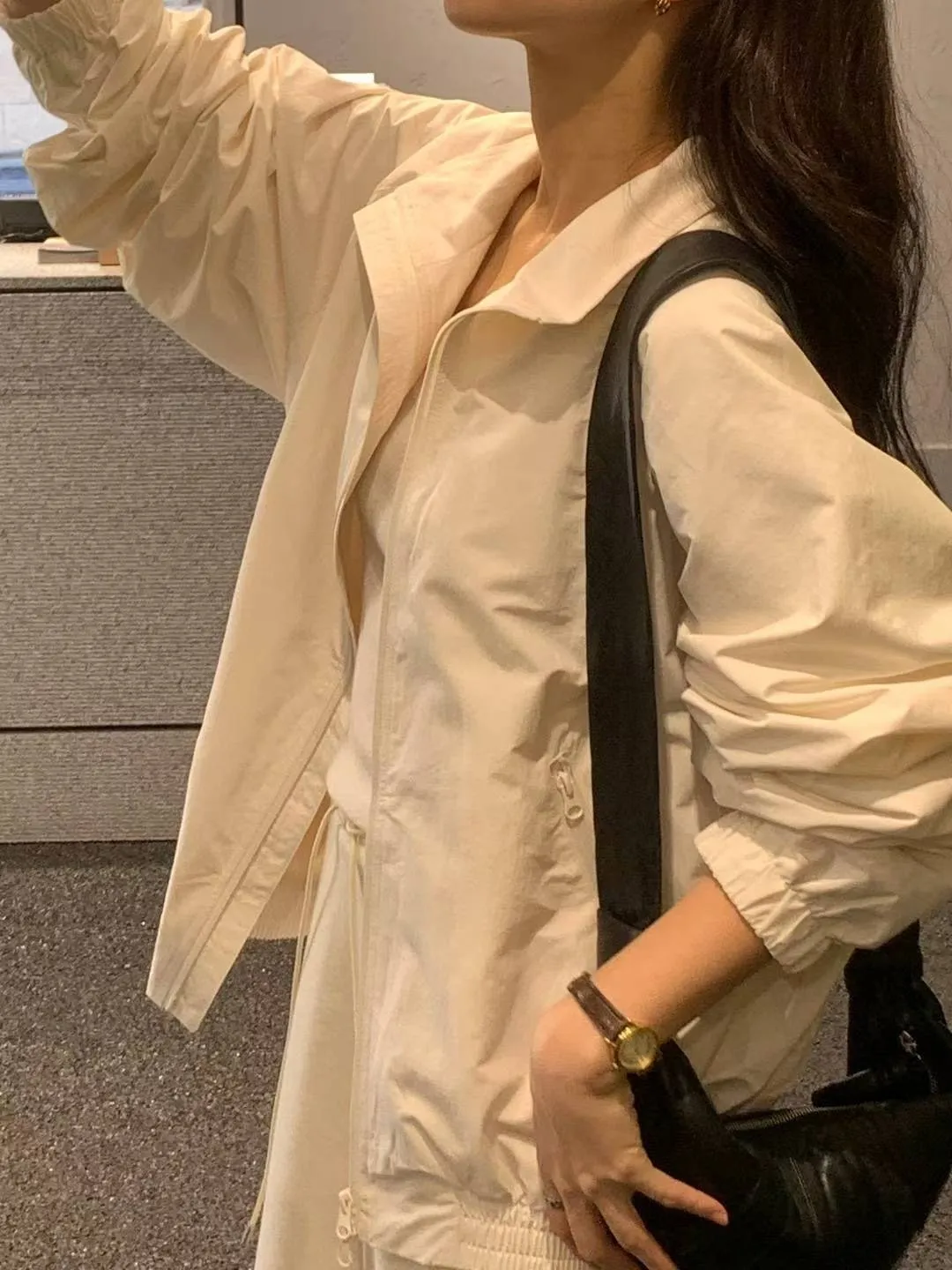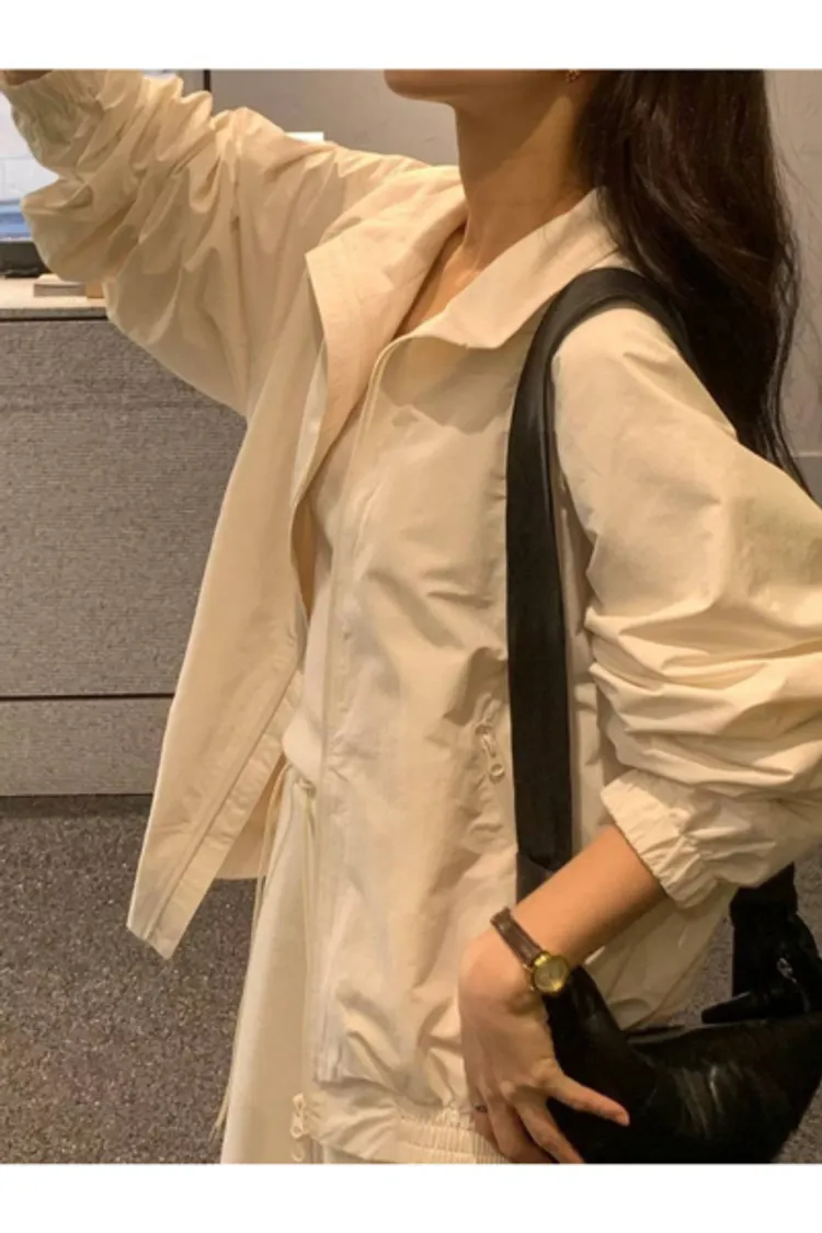 聚酯 內襯磨毛 下擺鬆緊 拉鍊穿脫 有暖度 外層防風