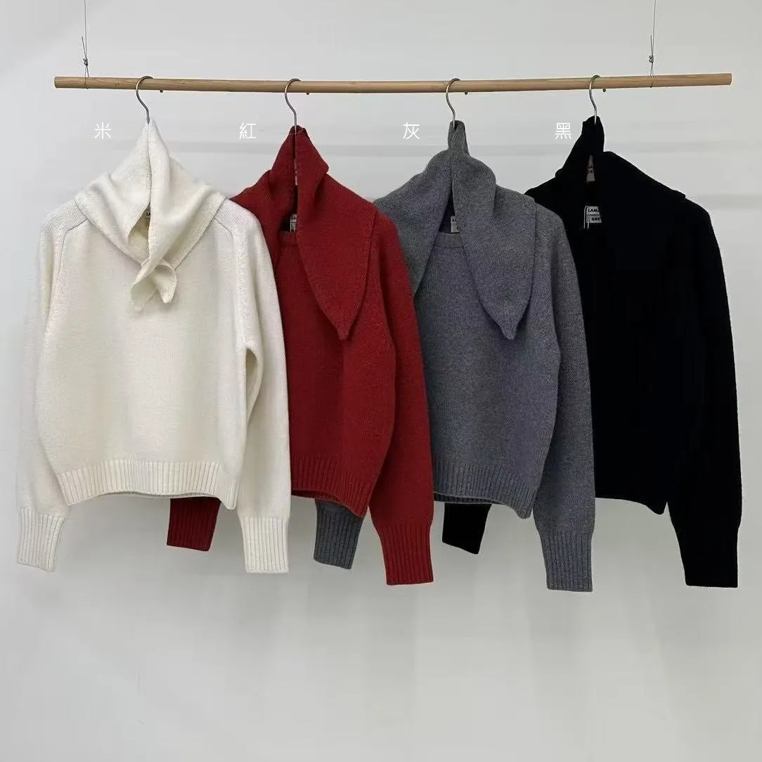 羊毛80% 高級針織感 附贈領巾 手袖寬鬆緊 單穿就有暖度