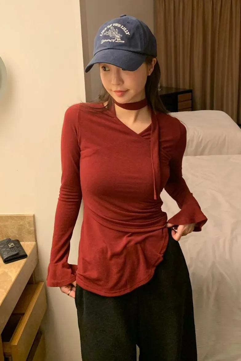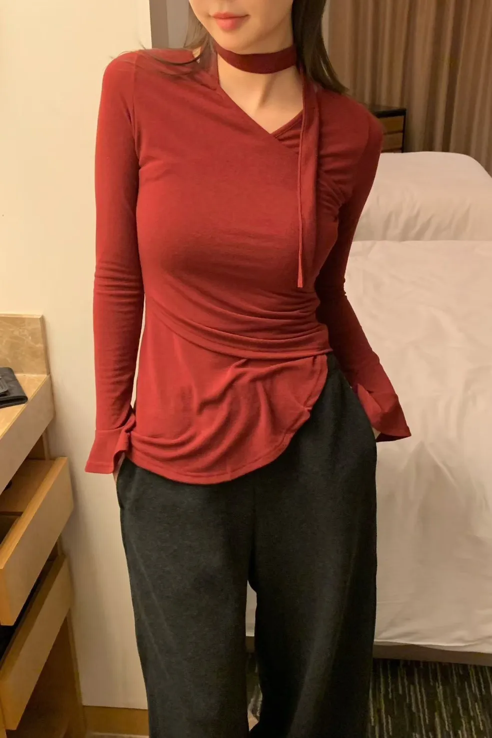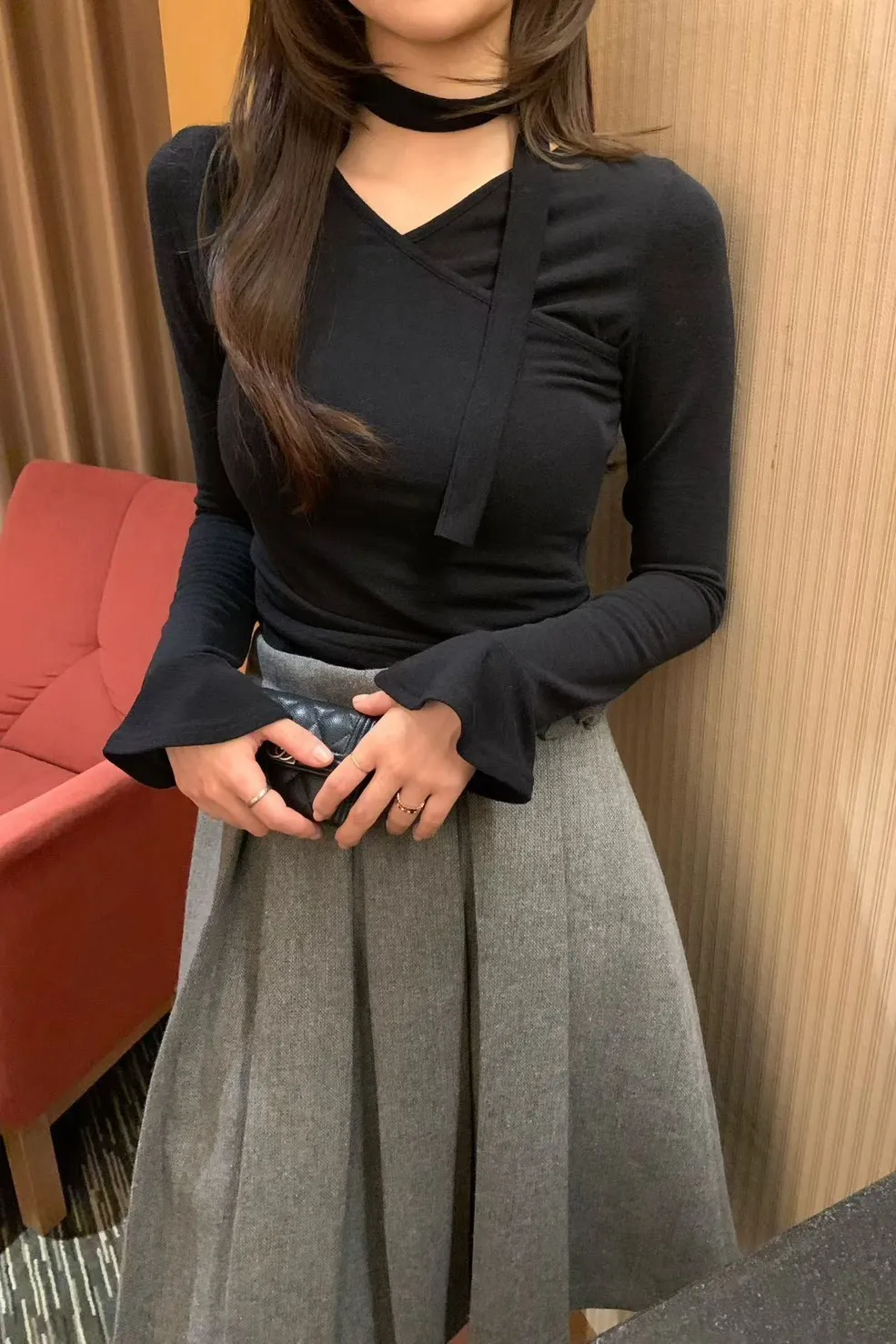 聚酯+縲縈+彈力 親膚舒適有彈力 立體下擺 綁帶不可拆 溫柔荷葉袖
