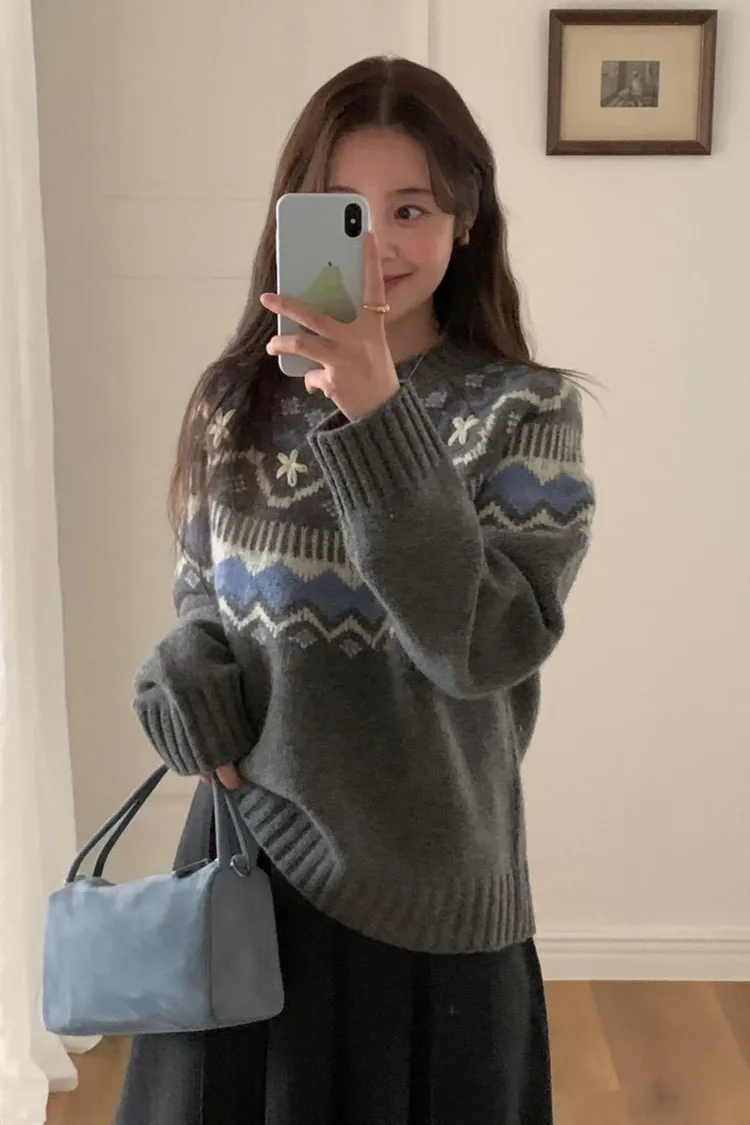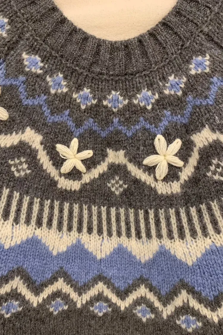 馬海毛50%+羊毛50% 立體的小花鉤織 冬季節慶配色