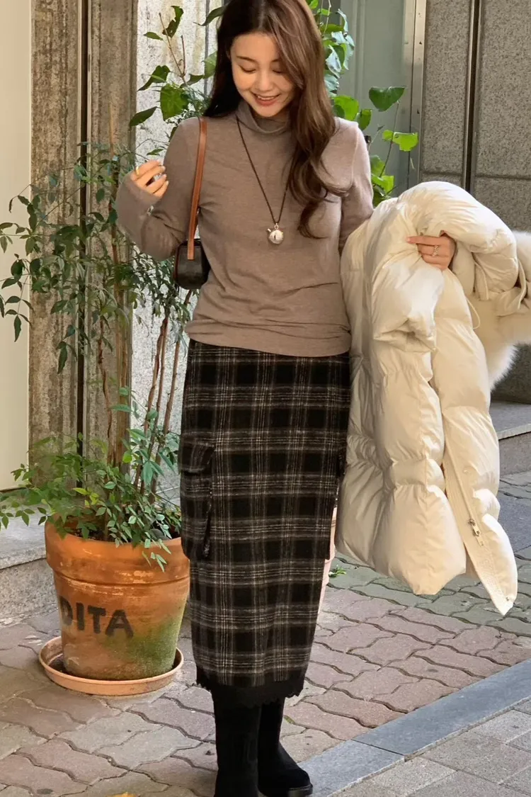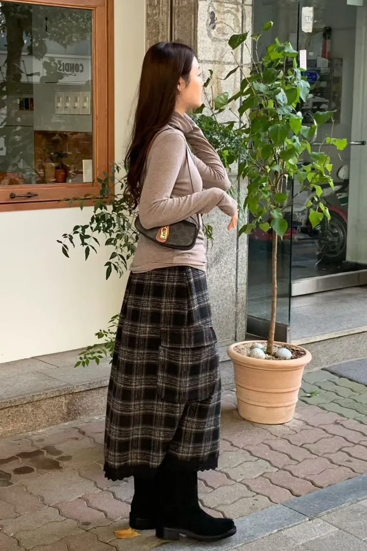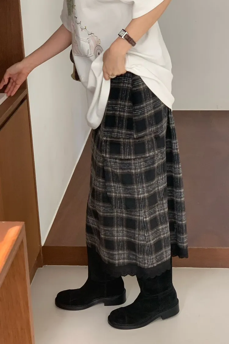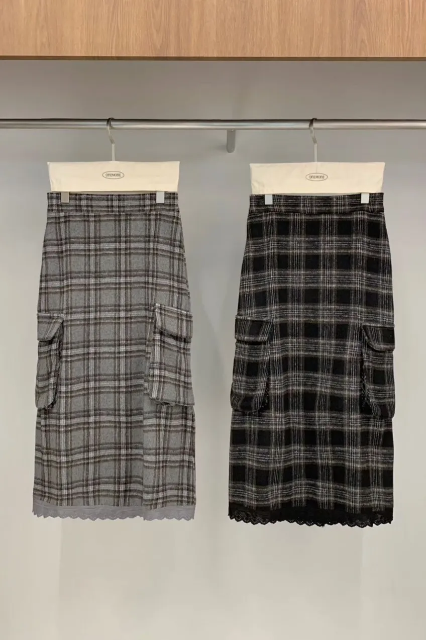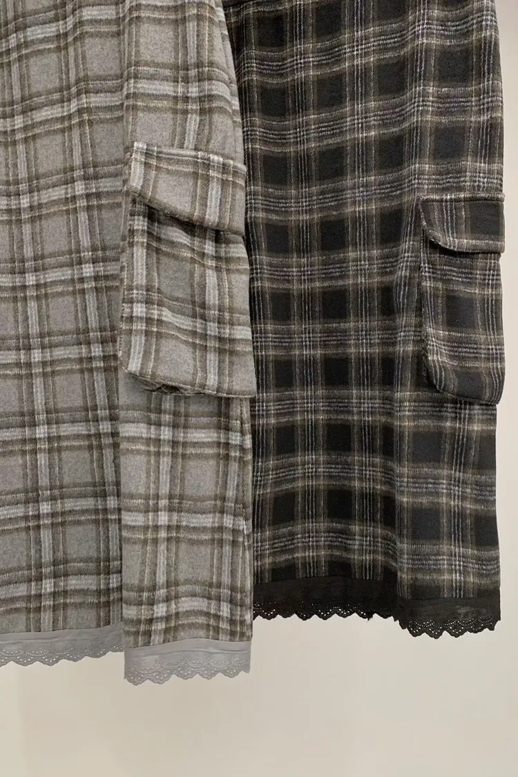 羊毛30% 下擺拼接棉蕾絲 有內裡 雙側口袋