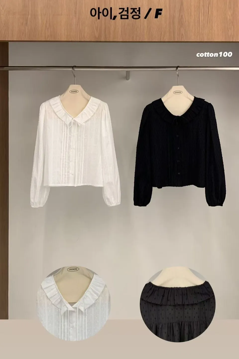 棉 細緻隱約點點 可愛荷葉翻領 胸前綁帶 四季可穿
