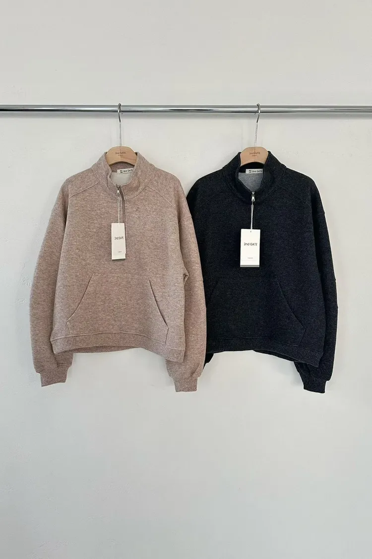 羊毛50%+棉+聚酯 胸前拉鍊 腹前口袋 尺寸寬鬆