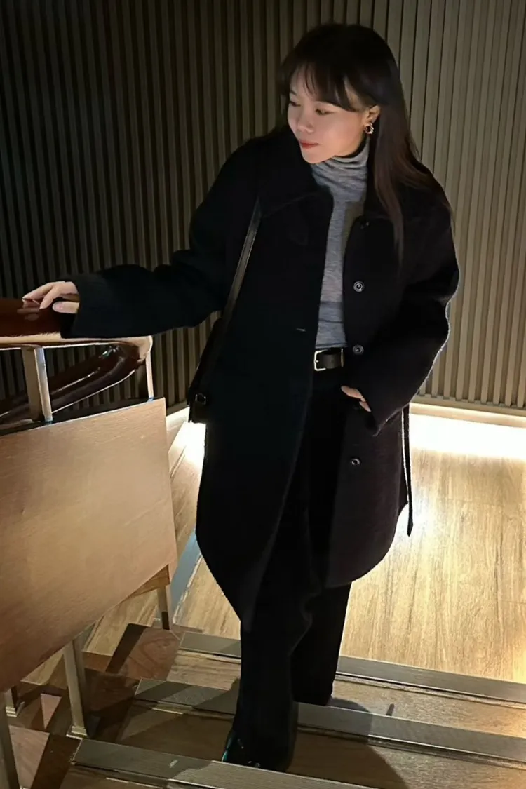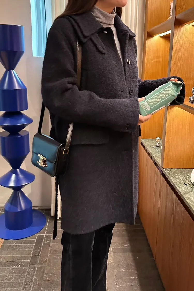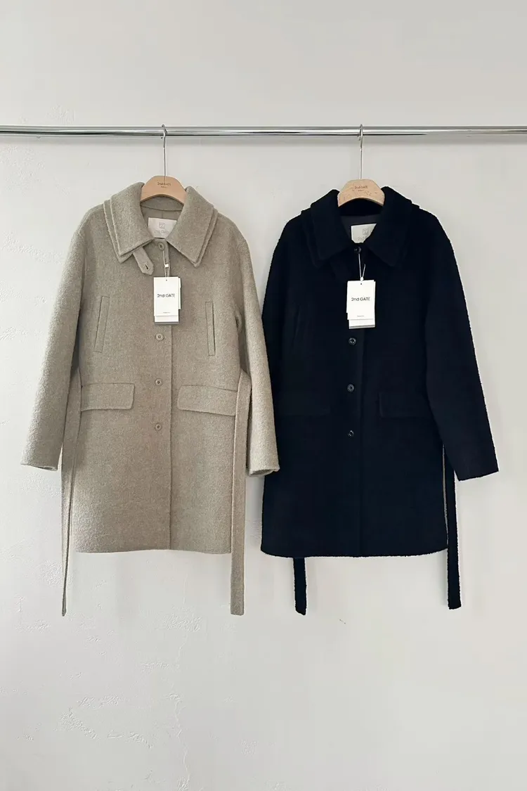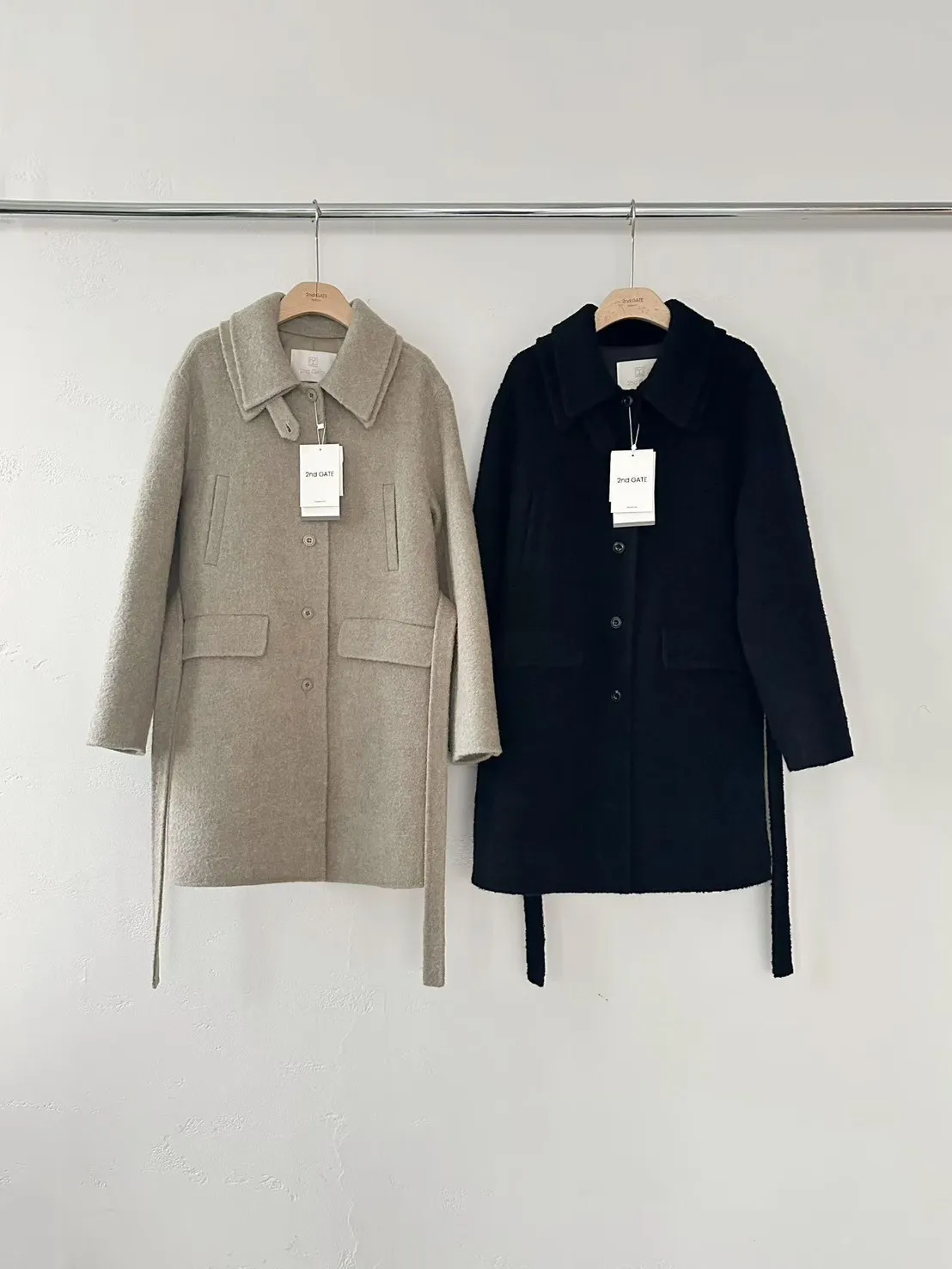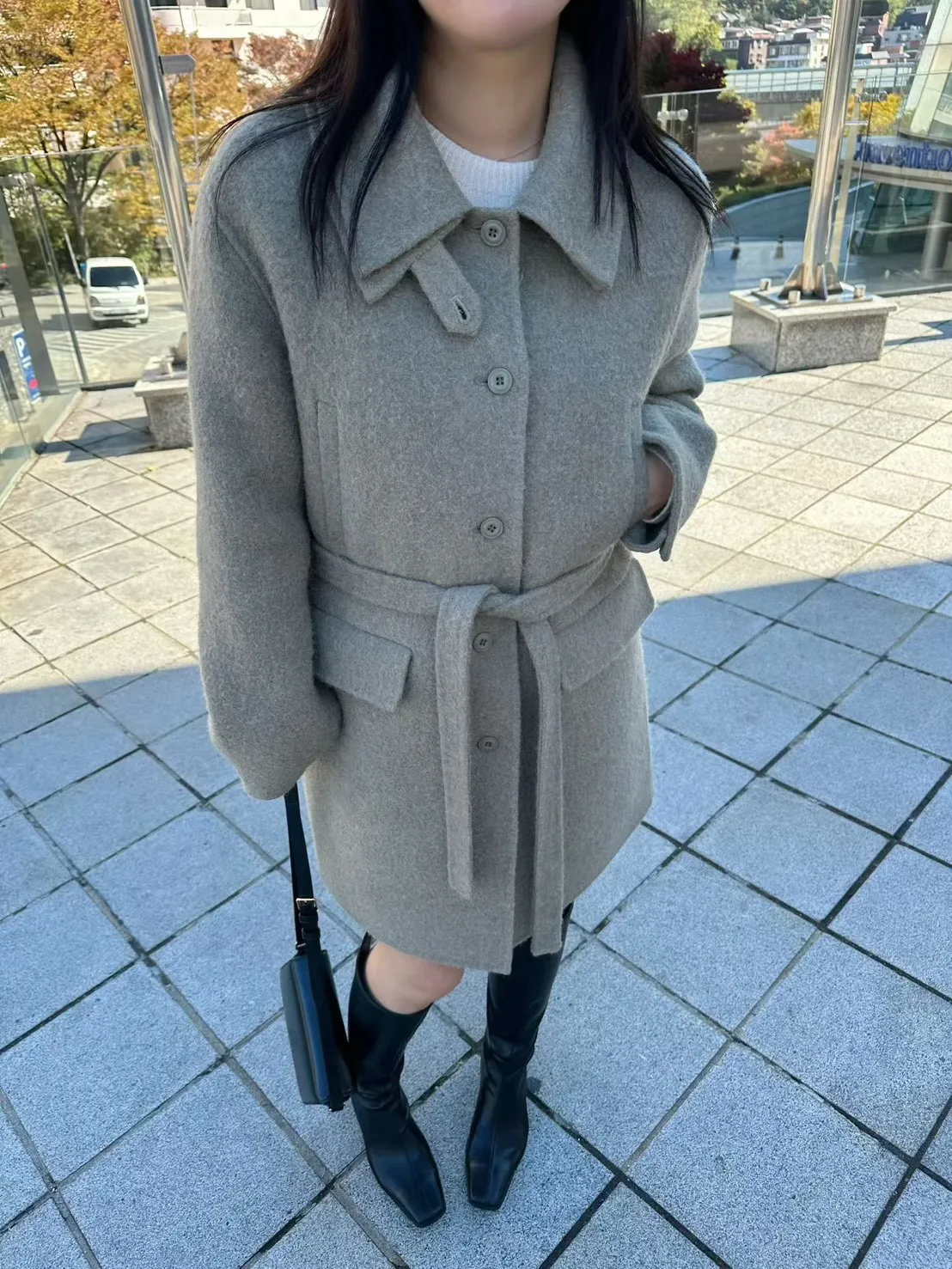 安哥拉8%+羊駝10%+羊毛70%+聚酯 排釦穿脫 兩層領 腰綁帶 有口袋有內裡 1.3公斤